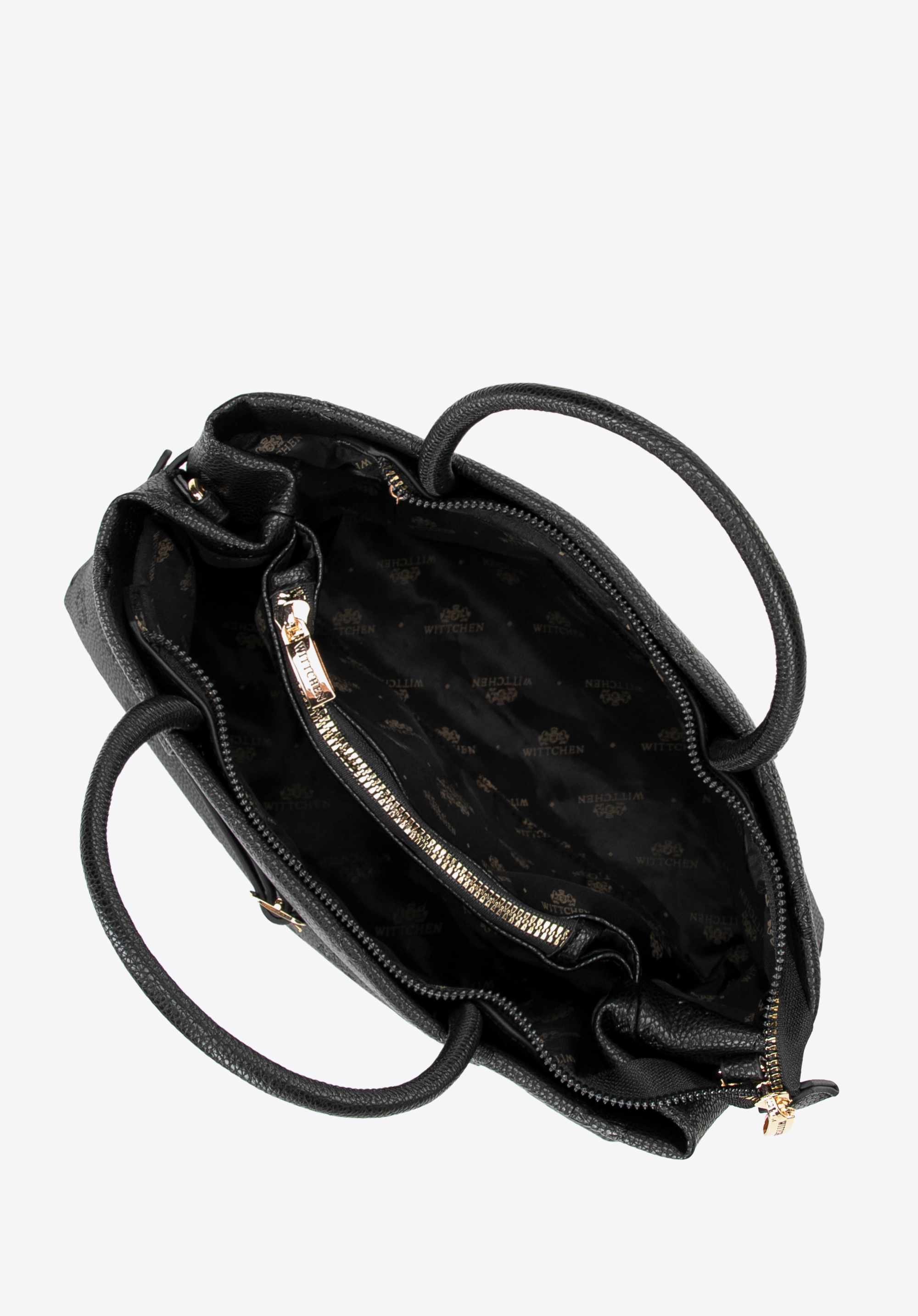 Cauți o geantă de mână care combină eleganța cu funcționalitatea de zi cu zi? Această geantă tote pentru femei, confecționată din piele ecologică, este alegerea perfectă. Silueta sa clasică este evidențiată de o curea decorativă cu cataramă și logo-ul mărcii în relief, adăugând o notă subtilă de lux oricărei ținute. Închiderea cu fermoar îți păstrează lucrurile esențiale în siguranță, în timp ce interiorul cu două compartimente și două buzunare suplimentare (inclusiv unul cu fermoar) te ajută să rămâi perfect organizată. Pentru o versatilitate sporită, cureaua reglabilă și detașabilă îți permite să o porți oricum dorești.