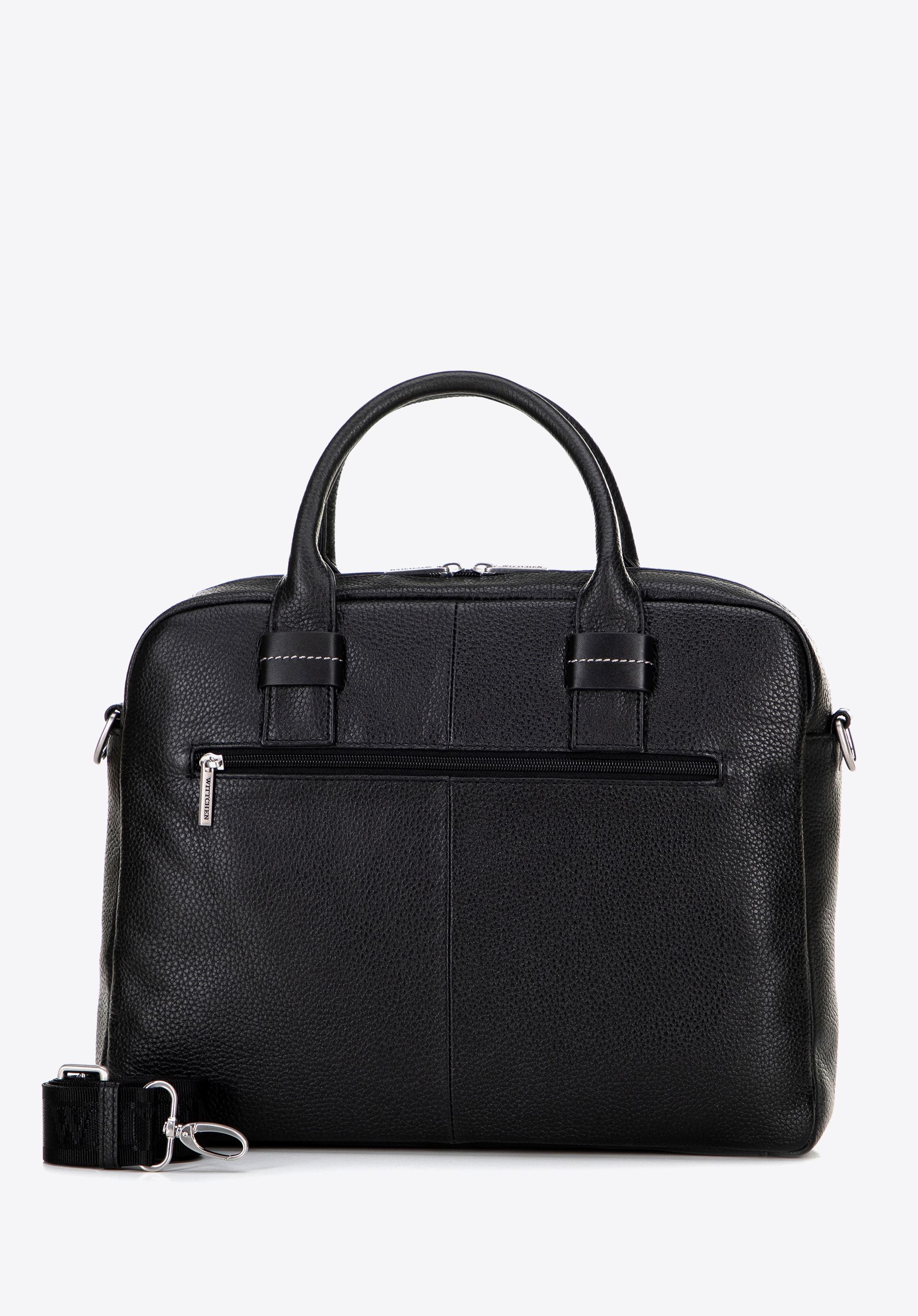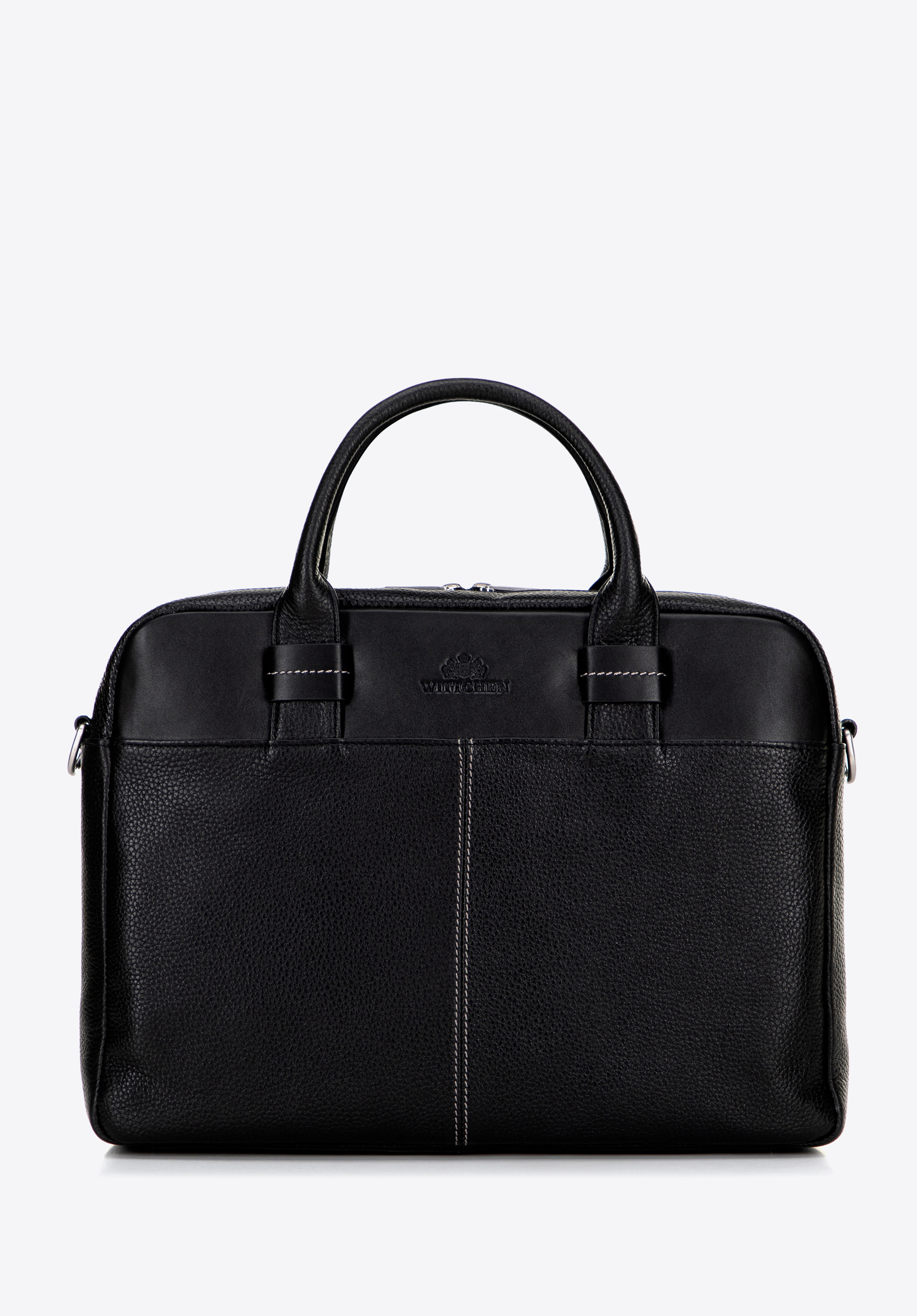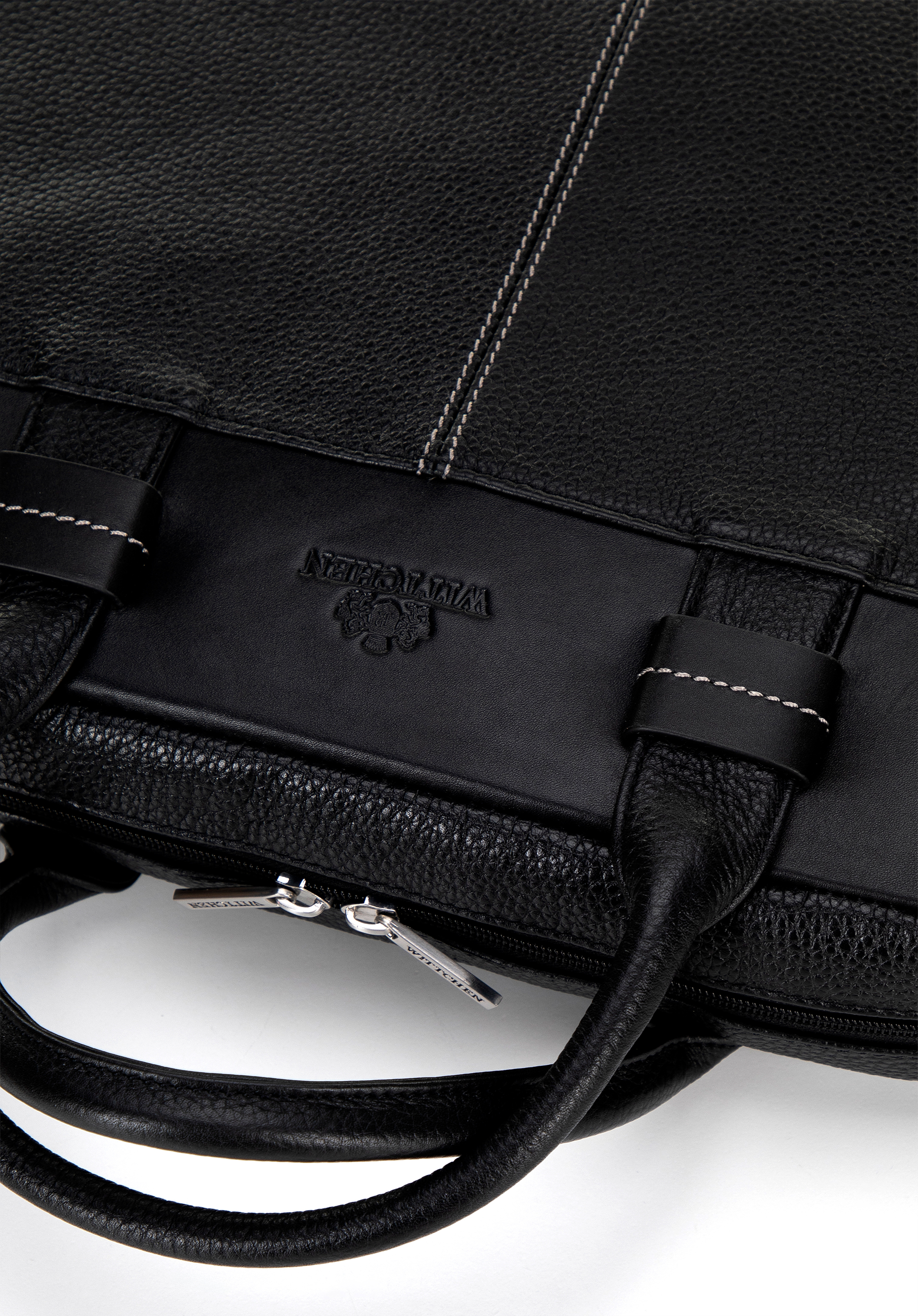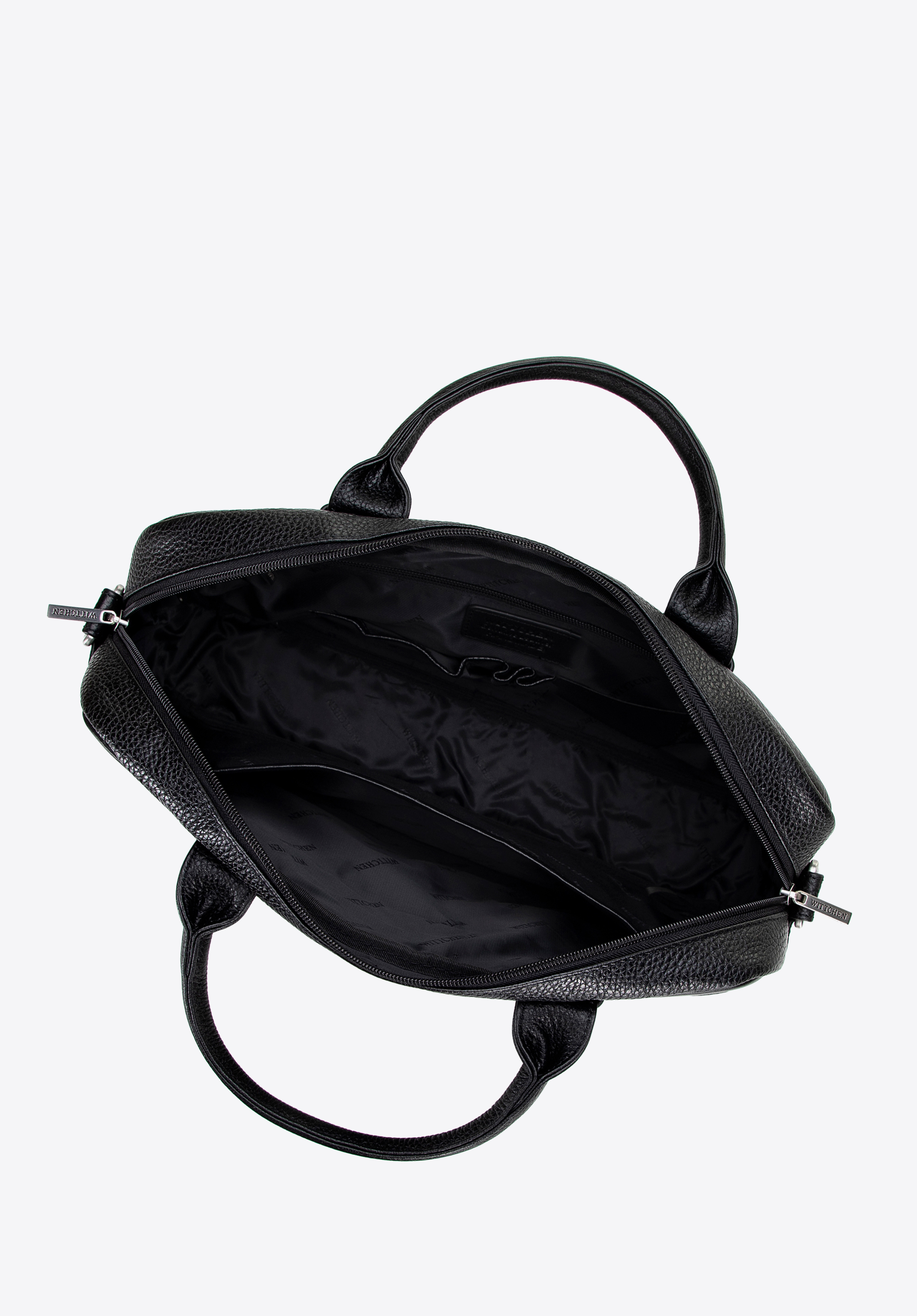 O geantă elegantă și funcțională pentru bărbatul modern, care combină stilul și confortul. Fabricată din piele naturală, încântă cu o combinație de texturi: granulată și mată. Mânerele rezistente și cureaua detașabilă și reglabilă cu logo-ul producătorului permit purtarea acesteia atât în mână, cât și pe umăr. Buzunarul special pentru un laptop (dimensiune maximă 23 × 33 cm, 13") o face o alegere ideală pentru viața de zi cu zi, muncă și călătorii.