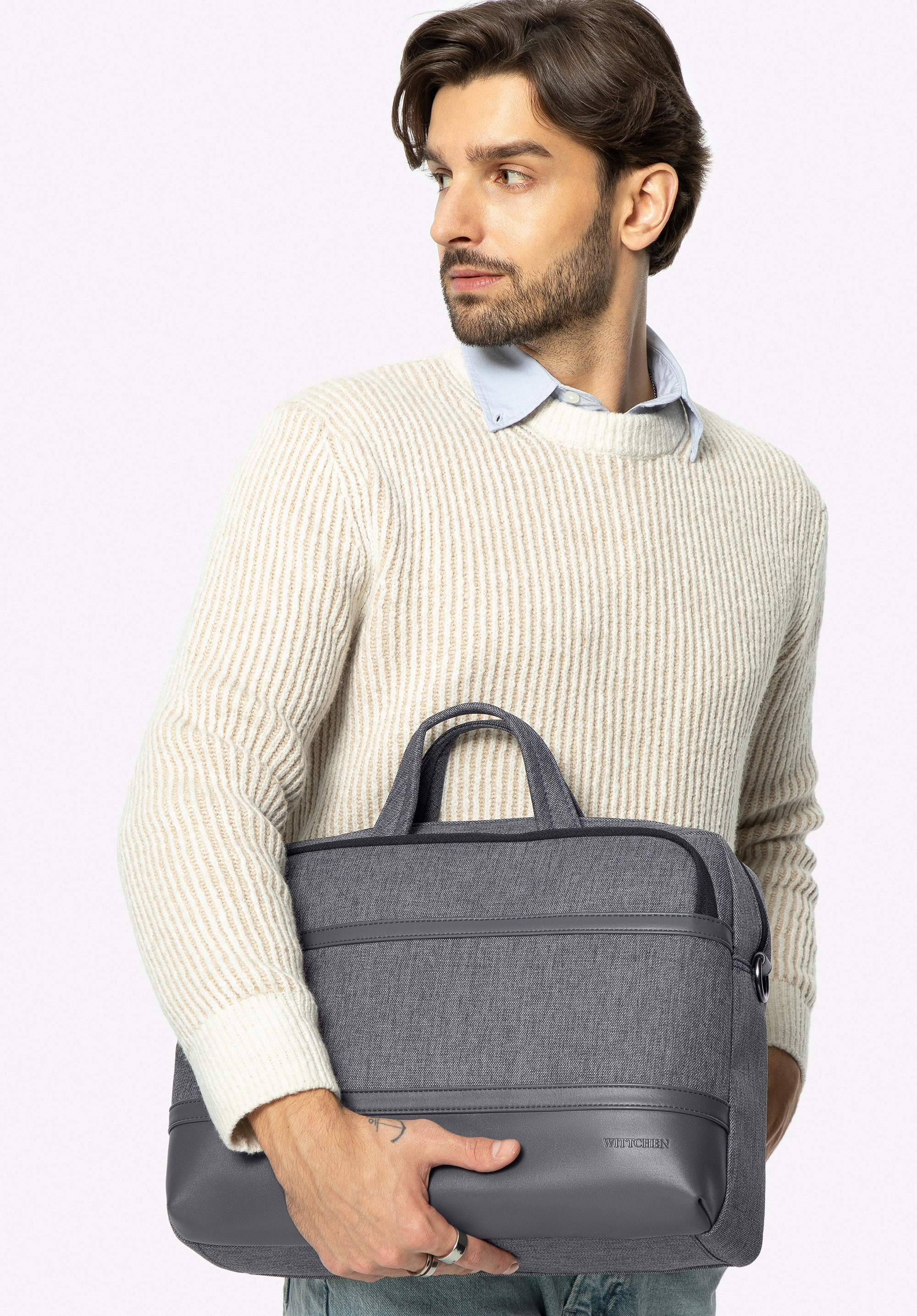 Geanta pentru laptop de 15 6” pentru barbati din piele ecologica gri
