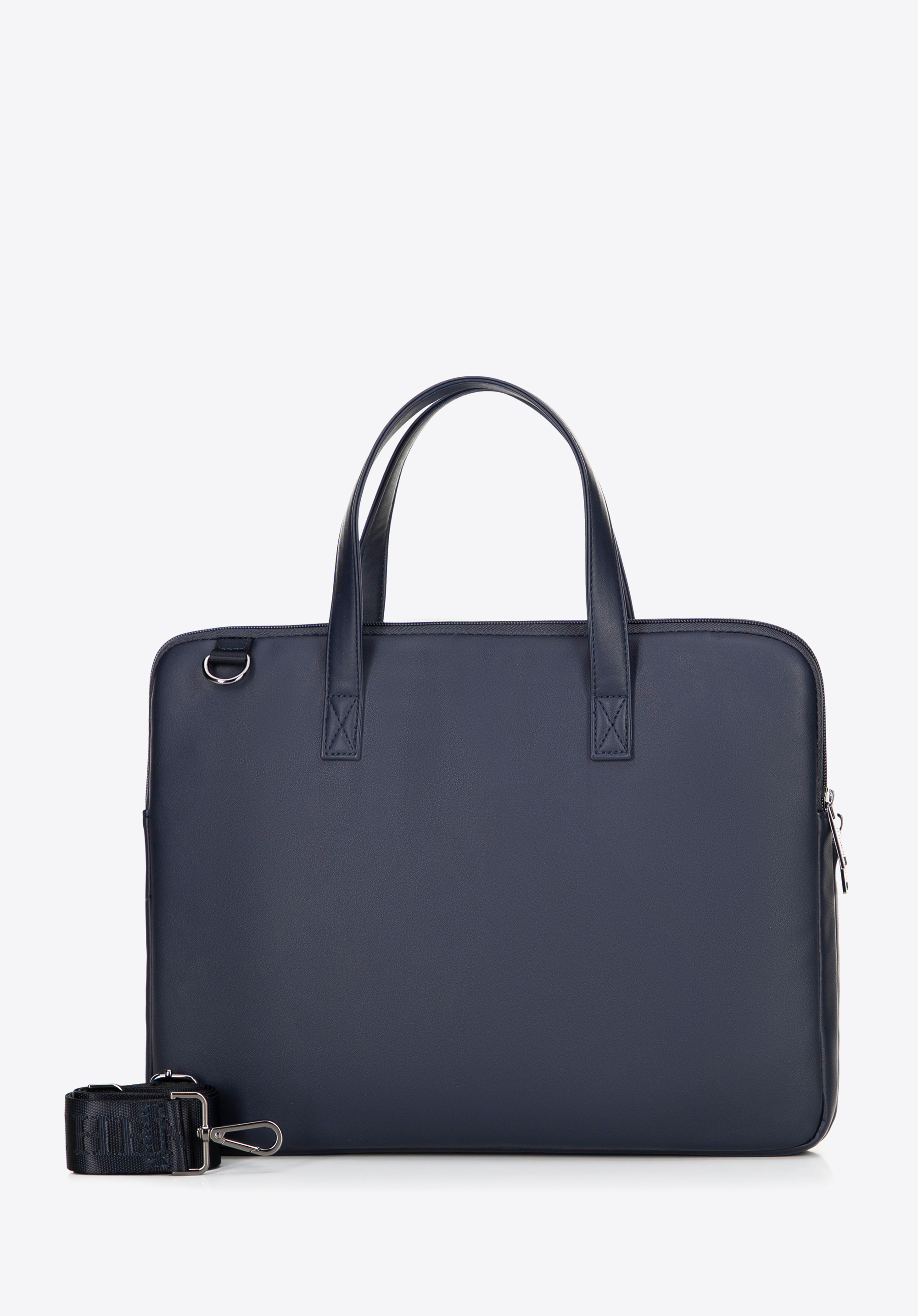 Această geantă stilată pentru laptop de 16" îmbină perfect funcționalitatea cu un design modern, fiind alegerea ideală pentru birou și utilizarea zilnică. Fabricată din piele ecologică și prevăzută cu închidere cu fermoar, asigură protecția și siguranța echipamentului tău. Geanta este dotată cu două mânere confortabile și o curea reglabilă și detașabilă, permițând purtarea în mână sau pe umăr, în funcție de preferințe. Pe partea din față se află un buzunar practic cu fermoar, iar în interior există un compartiment dedicat pentru laptop de până la 26 × 35 cm, care oferă stabilitate și protecție în timpul transportului.