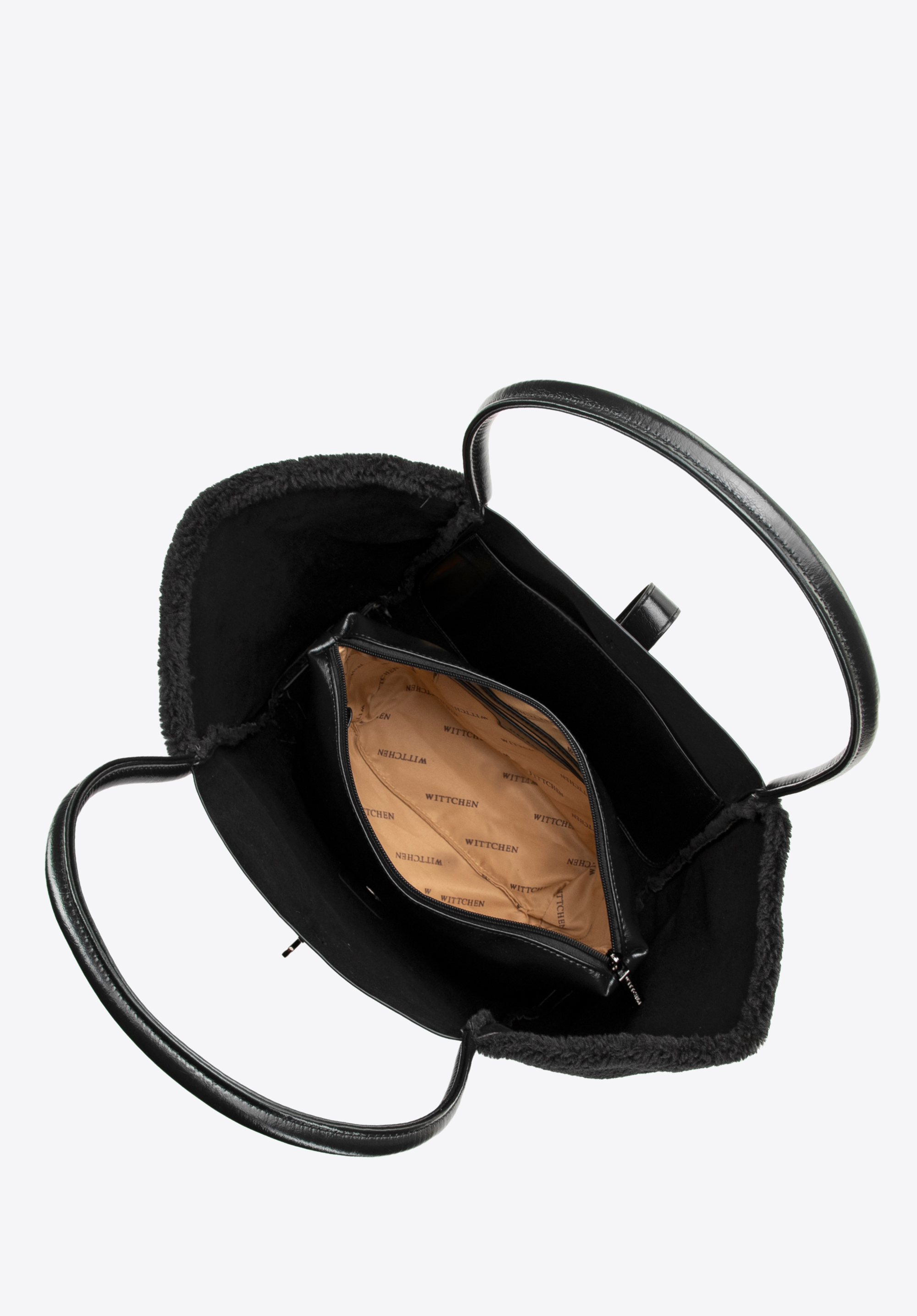 - Interior : Geanta de mână include o husă separată pentru cosmetice cu un buzunar cu fermoar , ideală pentru obiecte de valoare, și două buzunare deschise pentru acces rapid la obiectele mici.