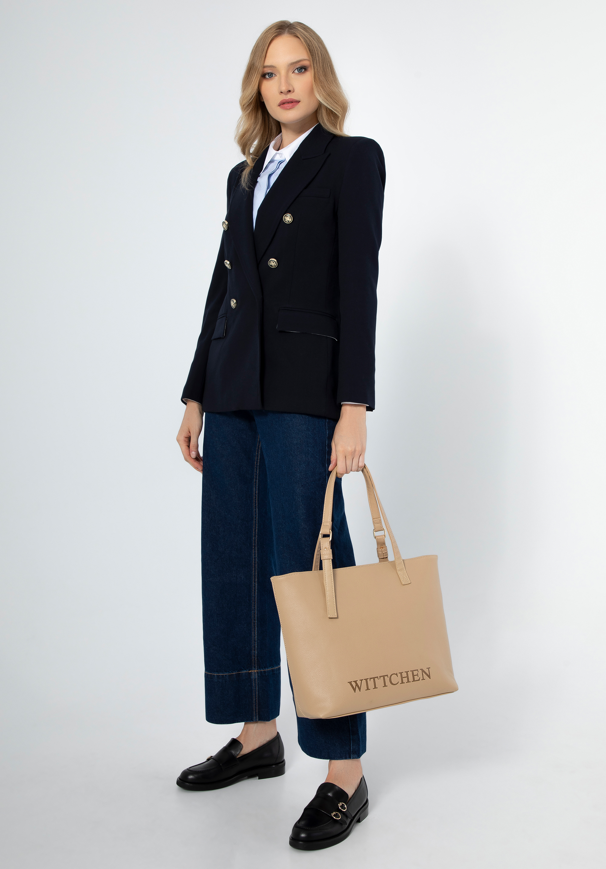 Sfatul nostru: Creați un aspect profesional asociind geanta shopper cu un costum clasic sau cu o fustă și o cămașă elegantă. Adăugați tocuri sau pantofi eleganți pentru a completa ansamblul.
