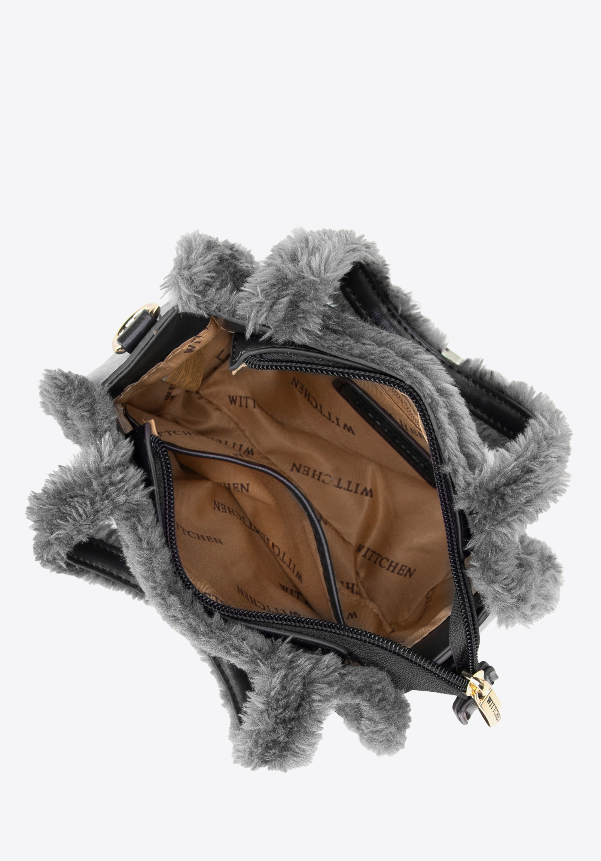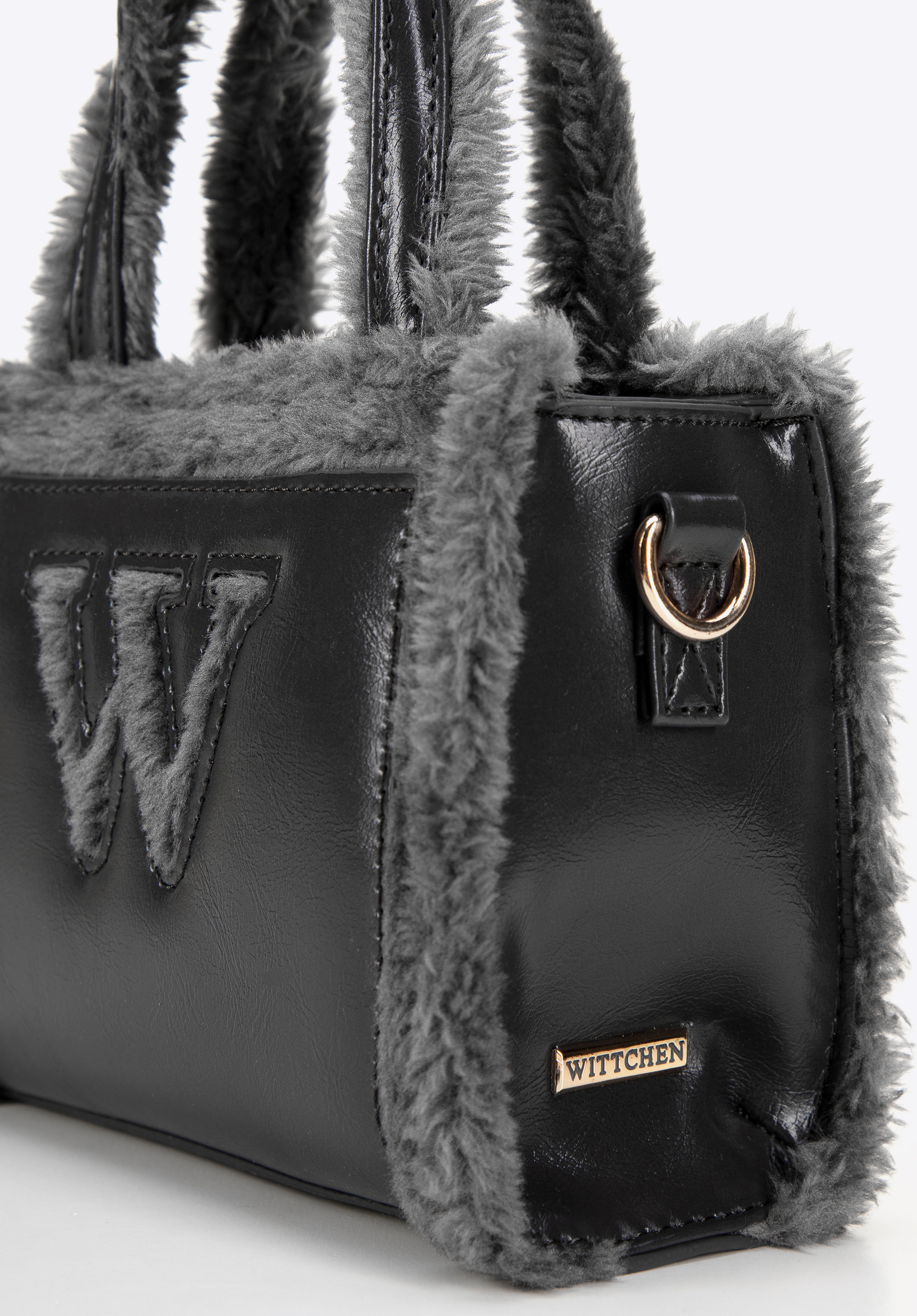 Detalii: „W” din blană de pe partea din față și logo-ul producătorului de pe laterală subliniază prestigiul și originalitatea accesoriului.