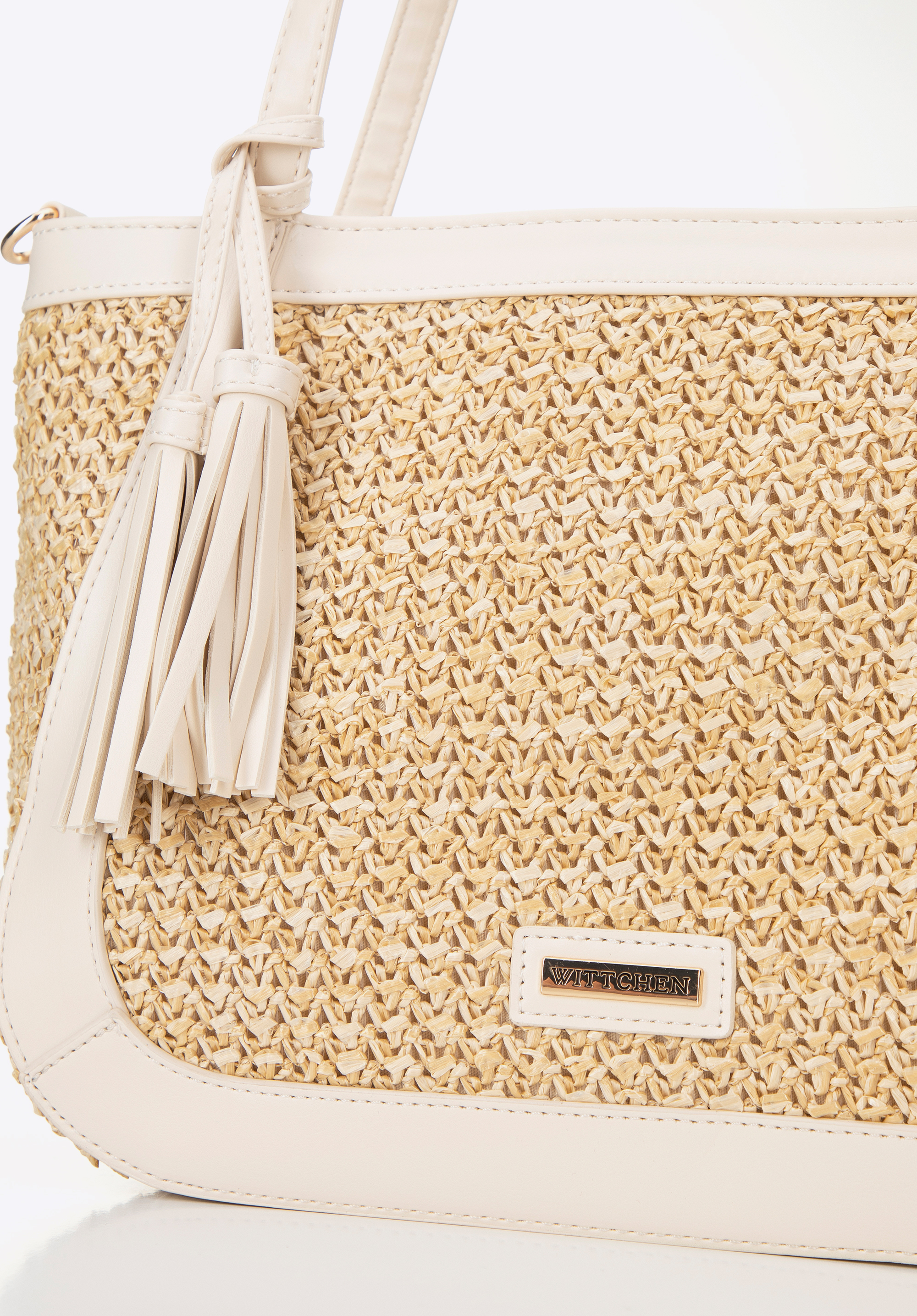 - Impletitura decorativă: un detaliu unic care conferă genţii de mână o senzaţie de vară, făcându-l perfect pentru ţinutele de vacanţă.