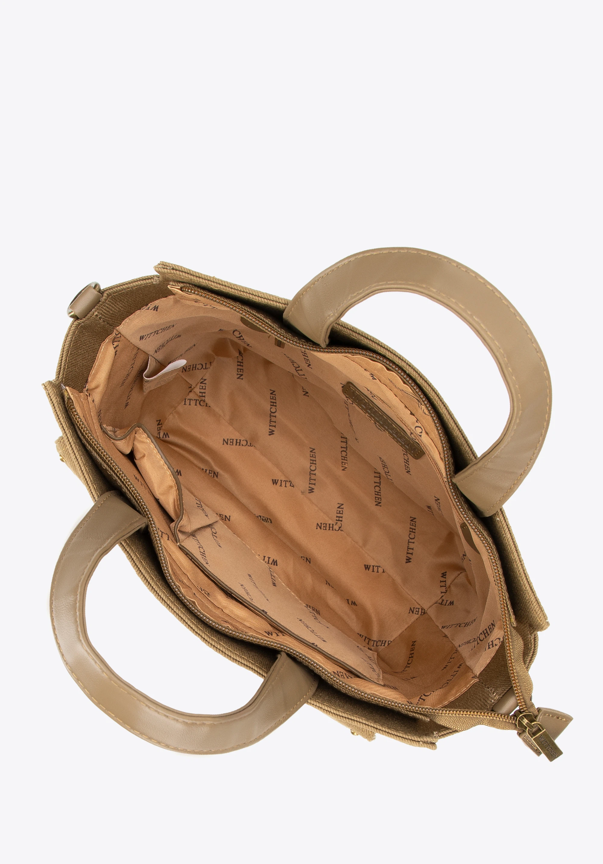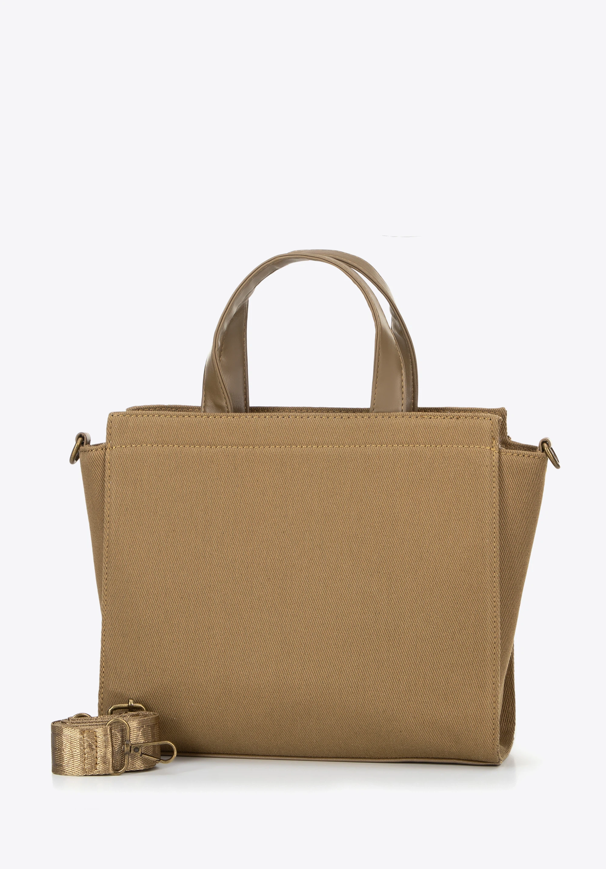 - Două mânere din piele artificială: confortabile pentru purtare de mână, combinate cu o notă elegantă.