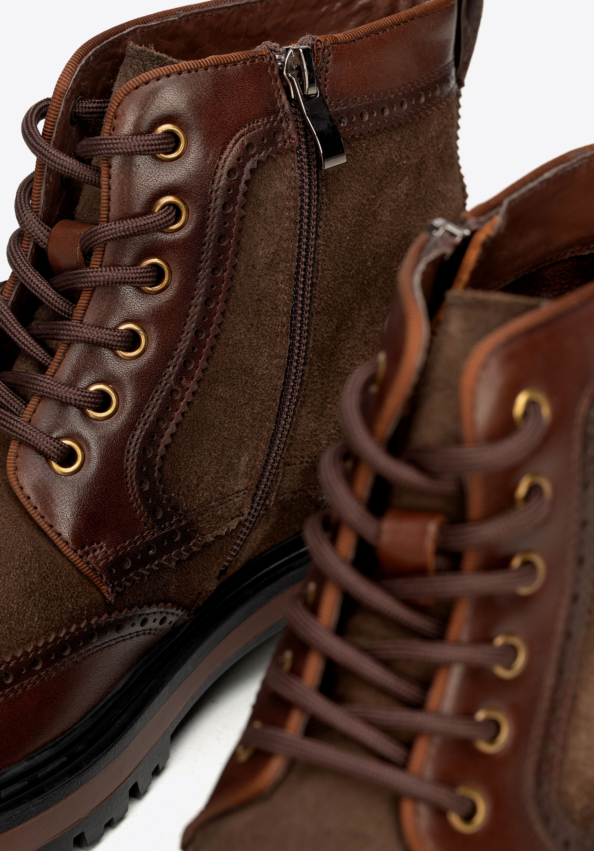 Ghete bărbătești din piele perforată până la gleznă – stil și confort de zi cu zi