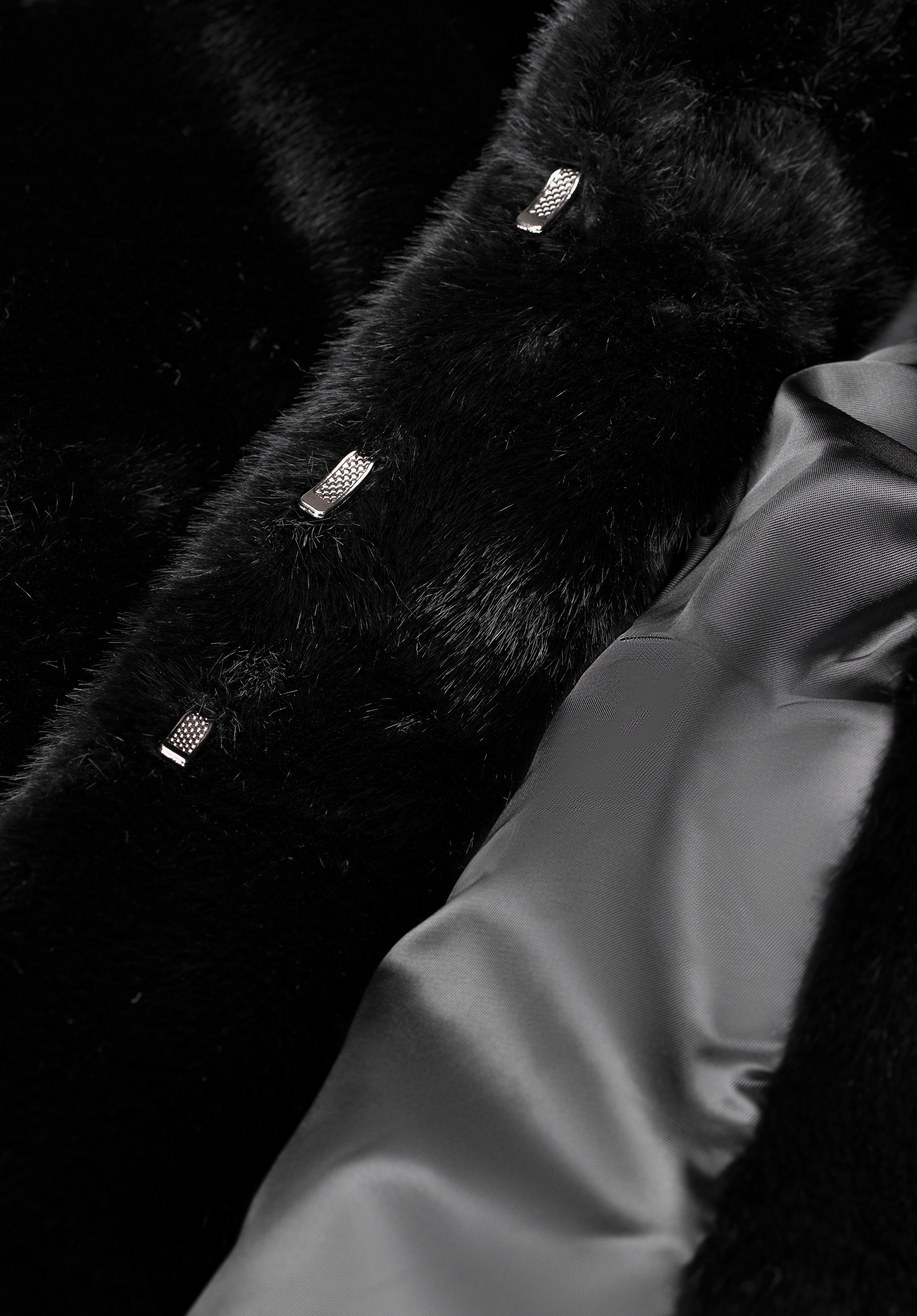 - Compoziție: Blană artificială: 100% poliester; Căptușeală: 100% poliester.