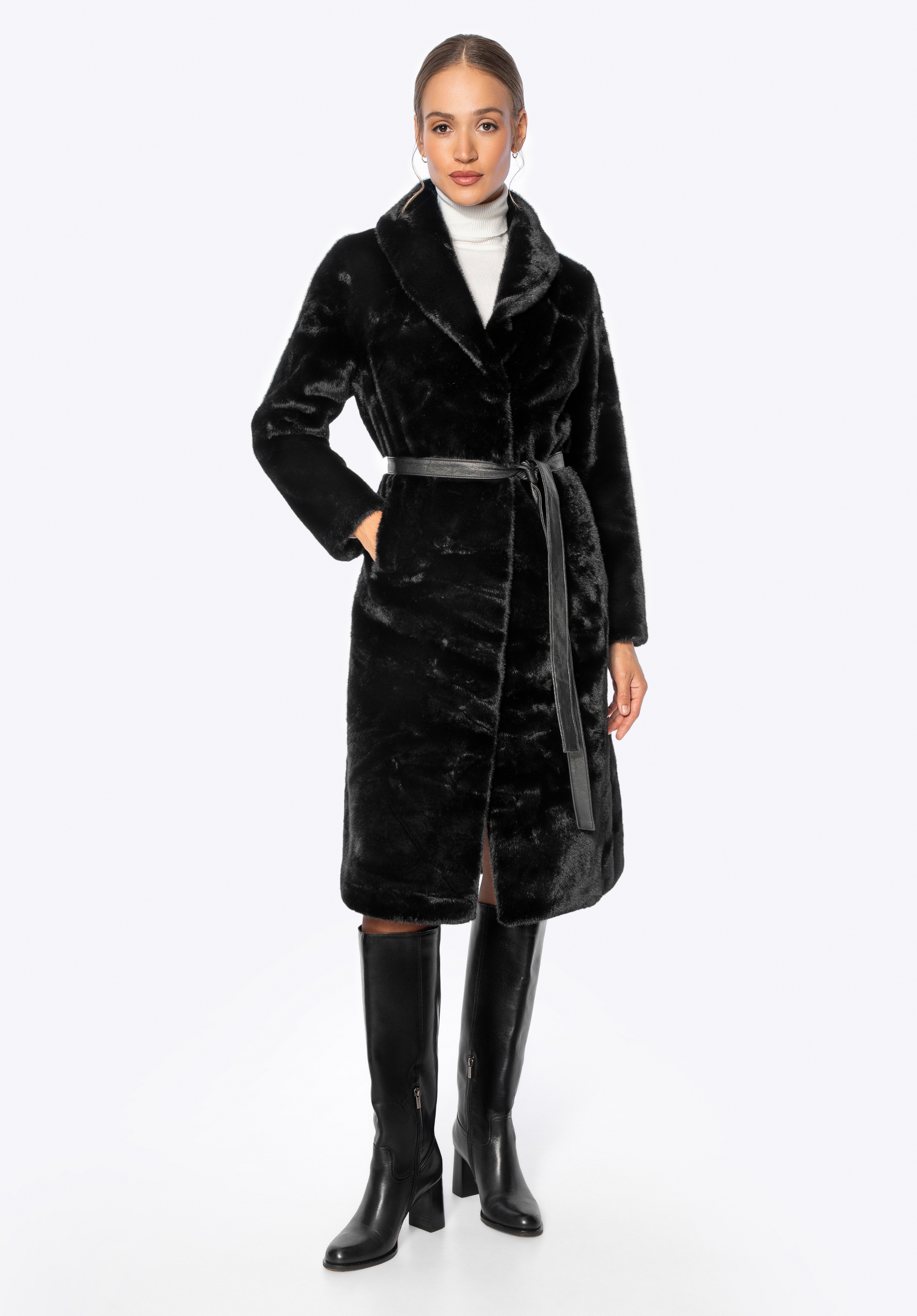 Haină lungă din blană artificială – eleganță feminină și căldură plăcută