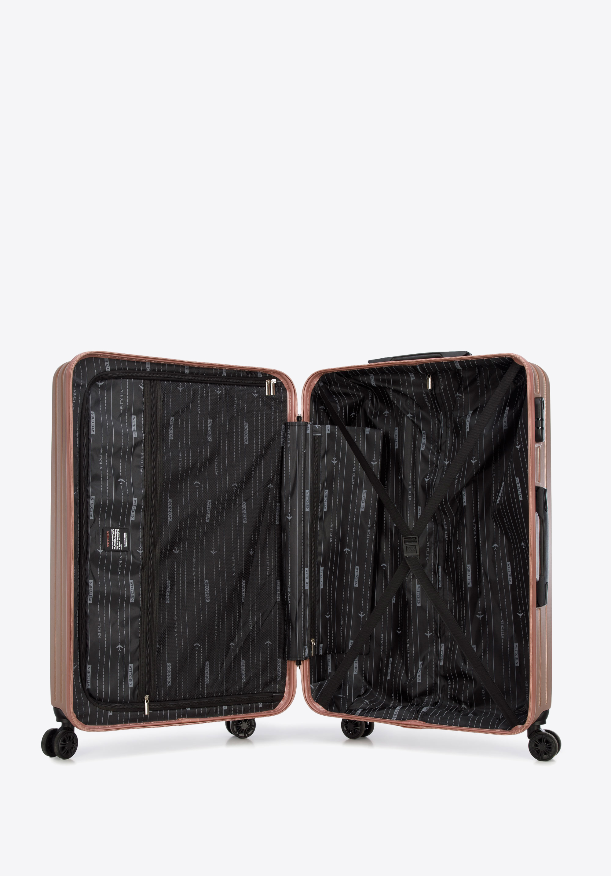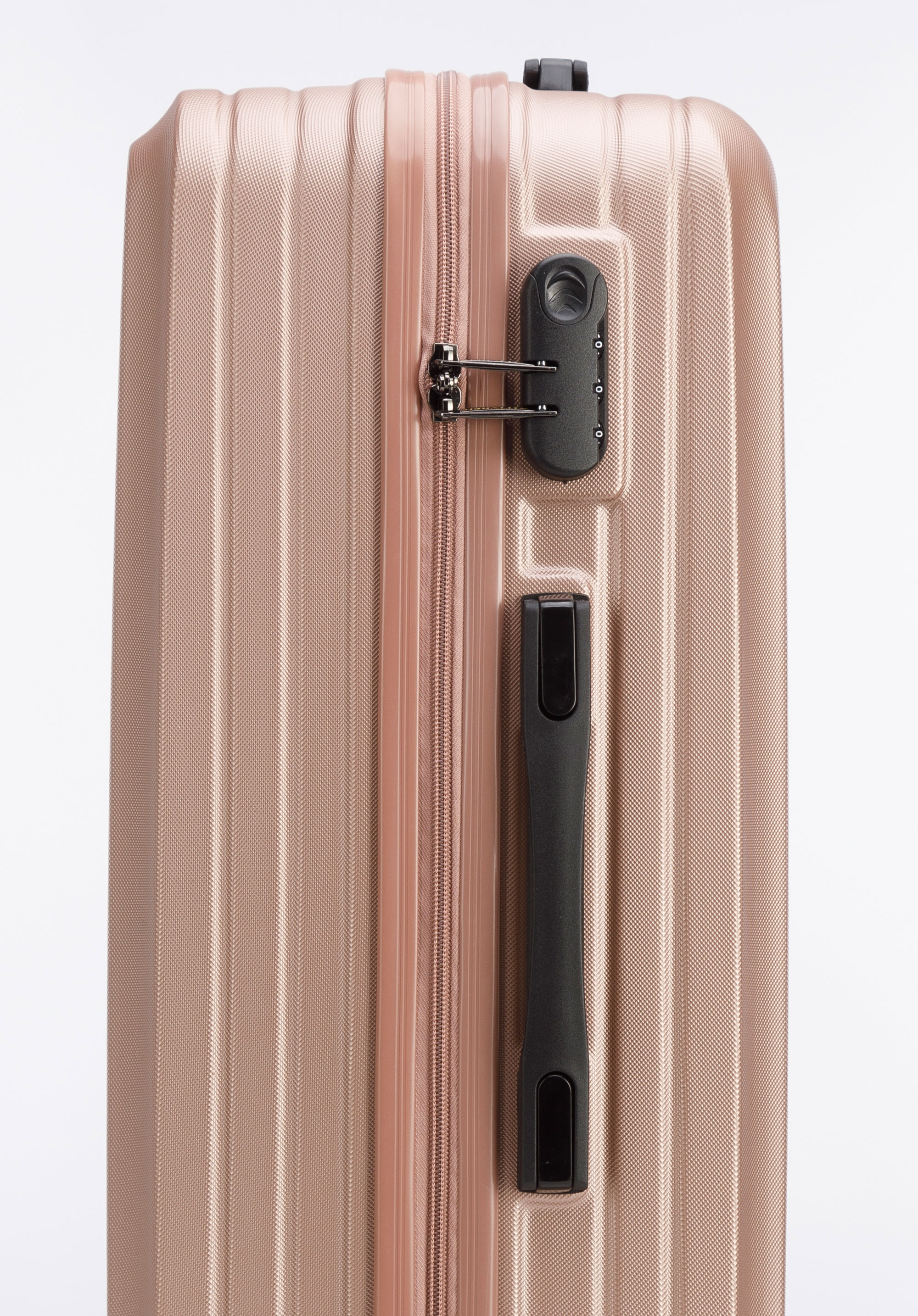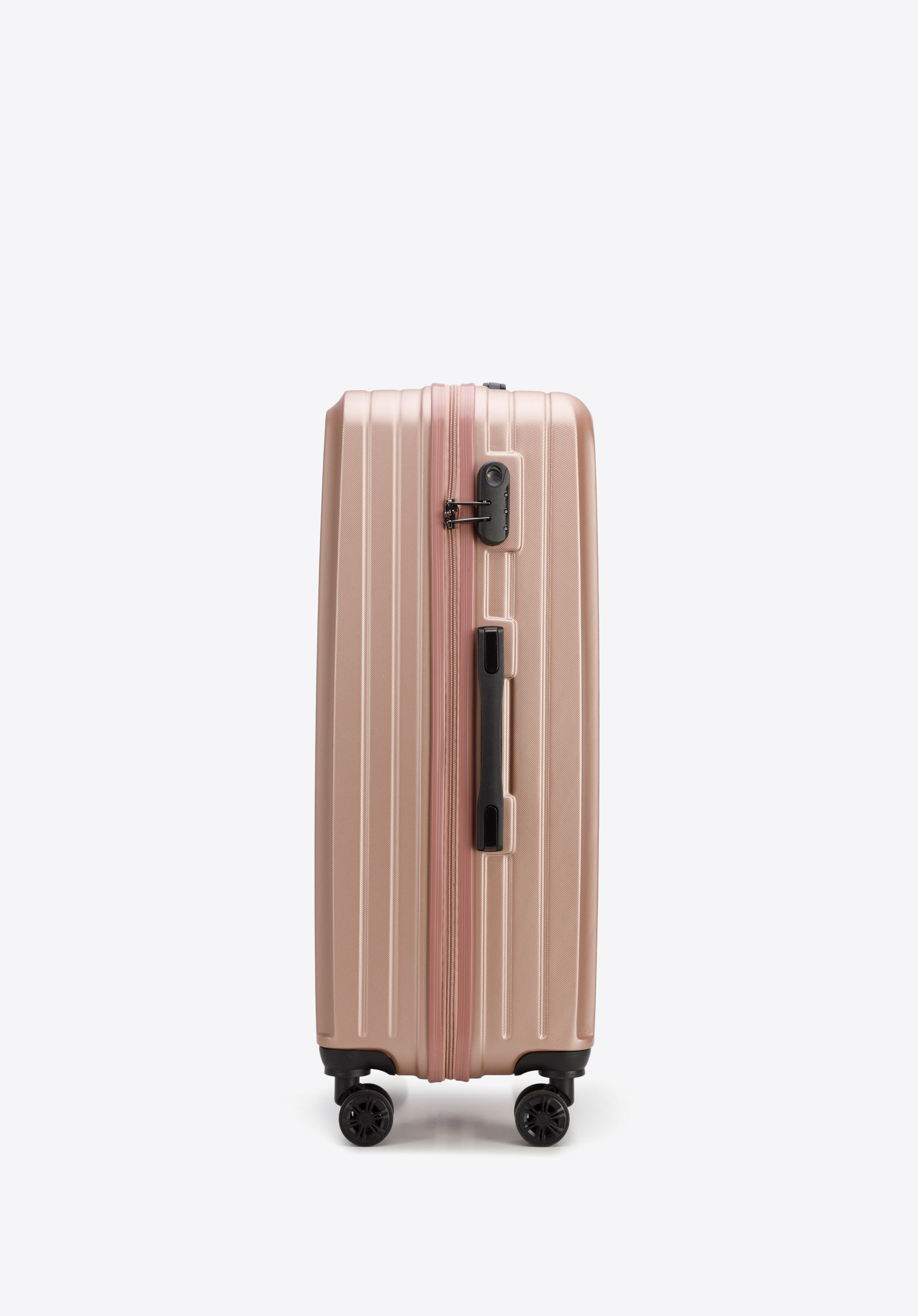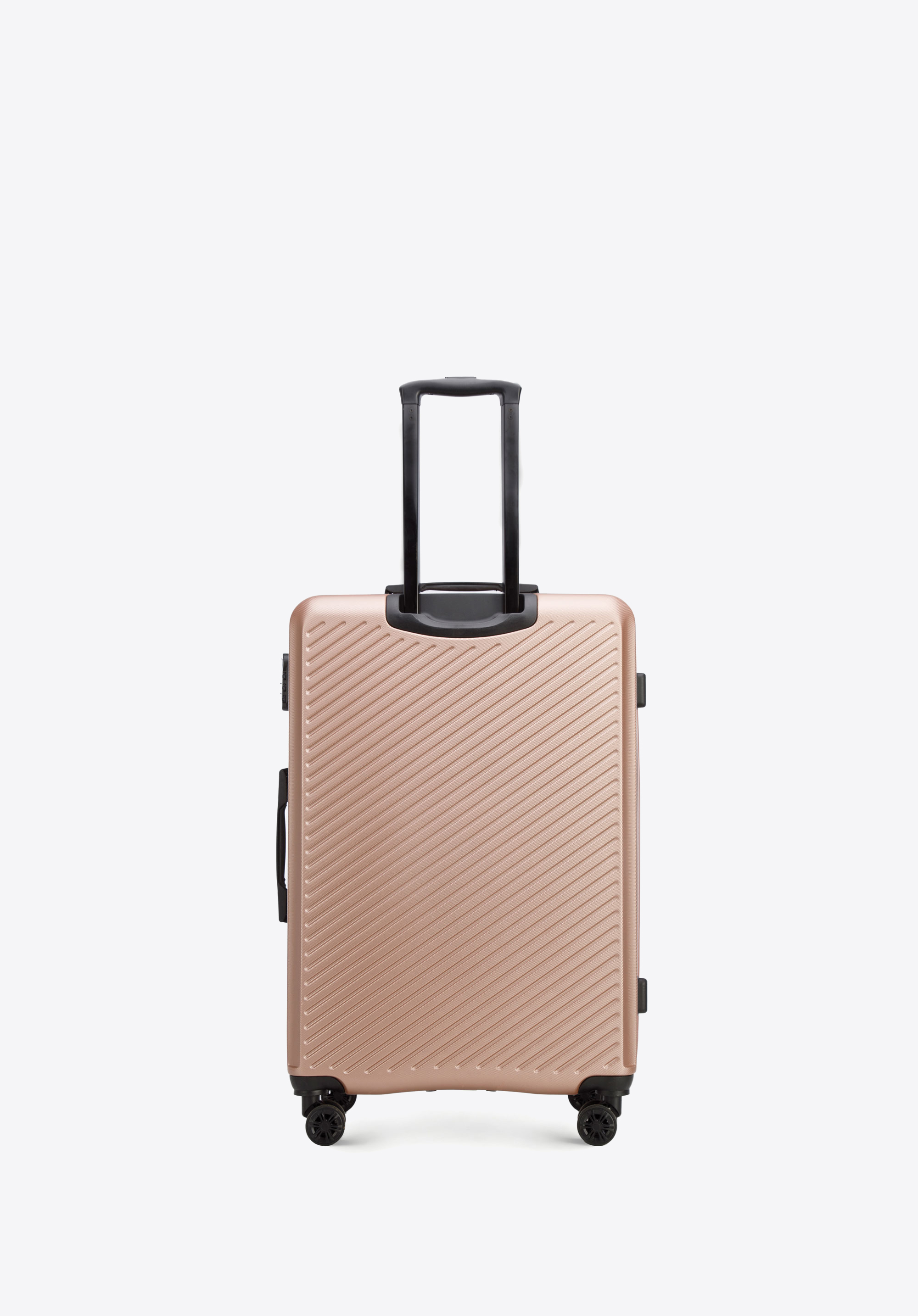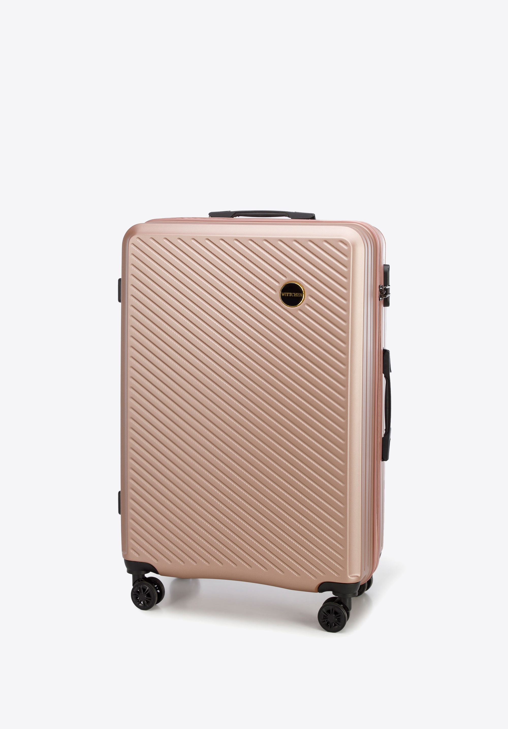 Valiza mare din ABS cu dungi diagonale este o alegere excelentă pentru toată lumea.