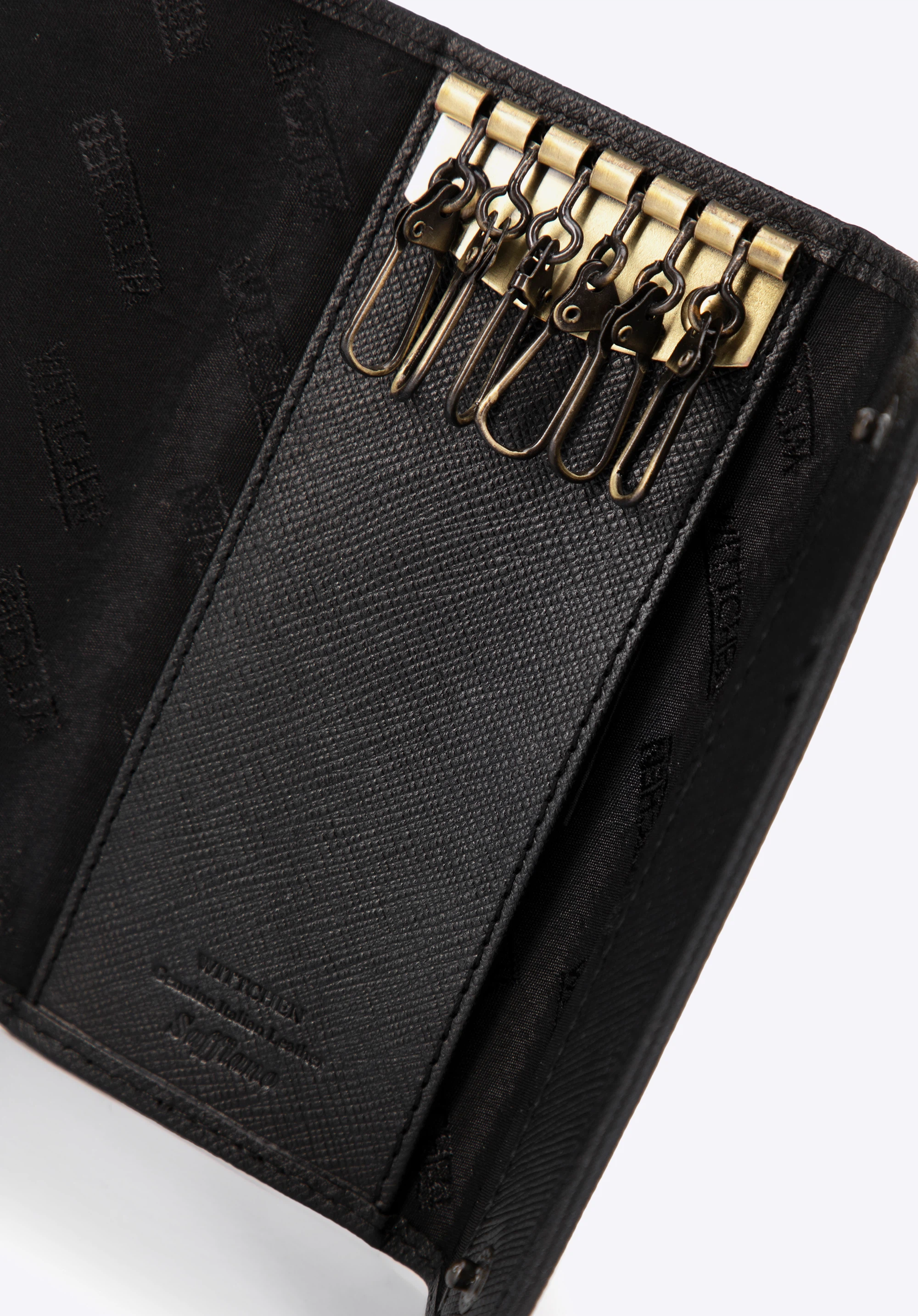 Descoperă eleganța și funcționalitatea cu husa pentru chei din colecția Saffiano. Acest accesoriu fin a fost creat din piele naturală de înaltă calitate cu o textură saffiano distinctivă. Ideal pentru cei care apreciază stilul și caracterul practic în utilizarea zilnică.