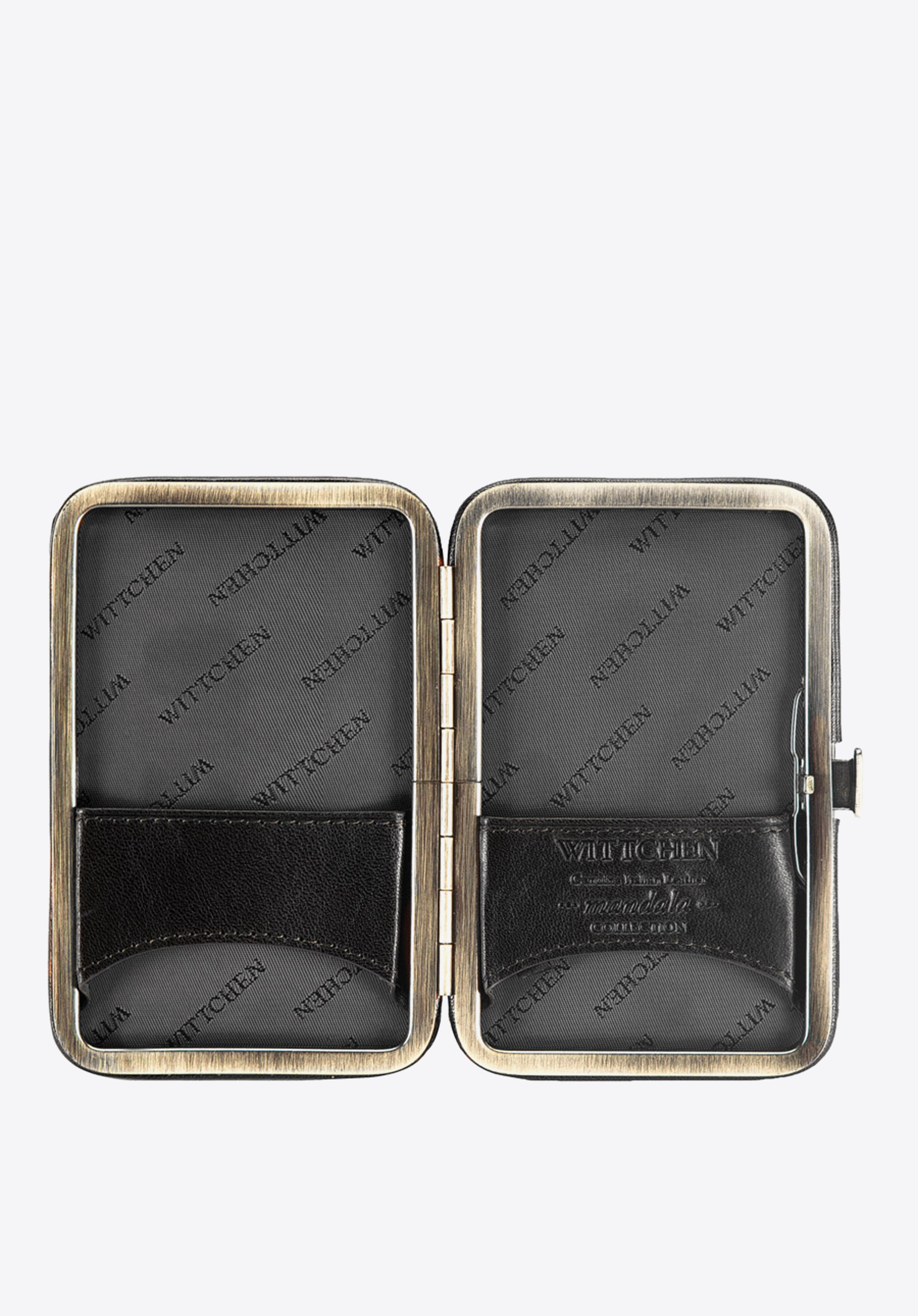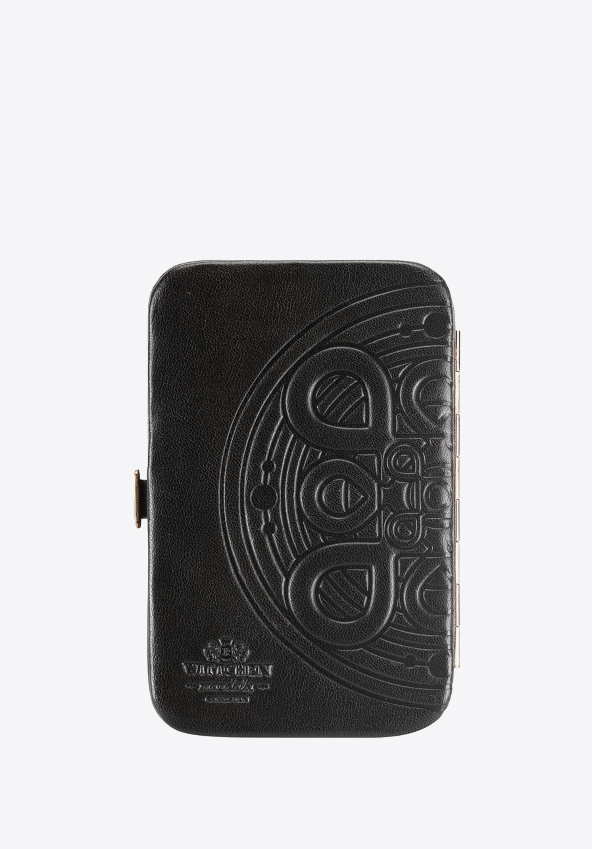 Etuiul business acoperit cu piele granulată, remarcată printr-un simbol în relief al armoniei și perfecțiunii.Practic și la îndemână, vă permite să vă păstrați cărțile de vizită în ordine.