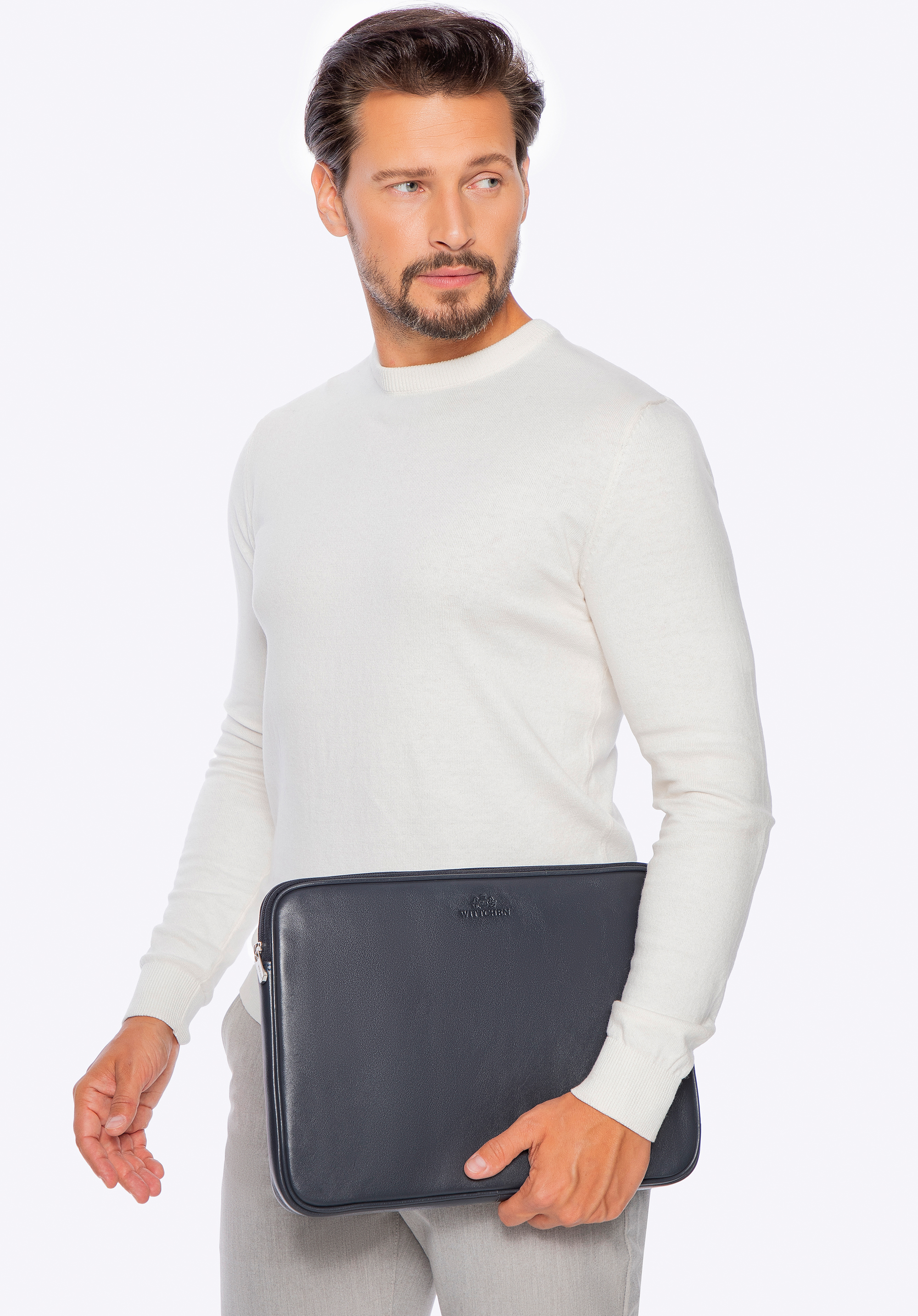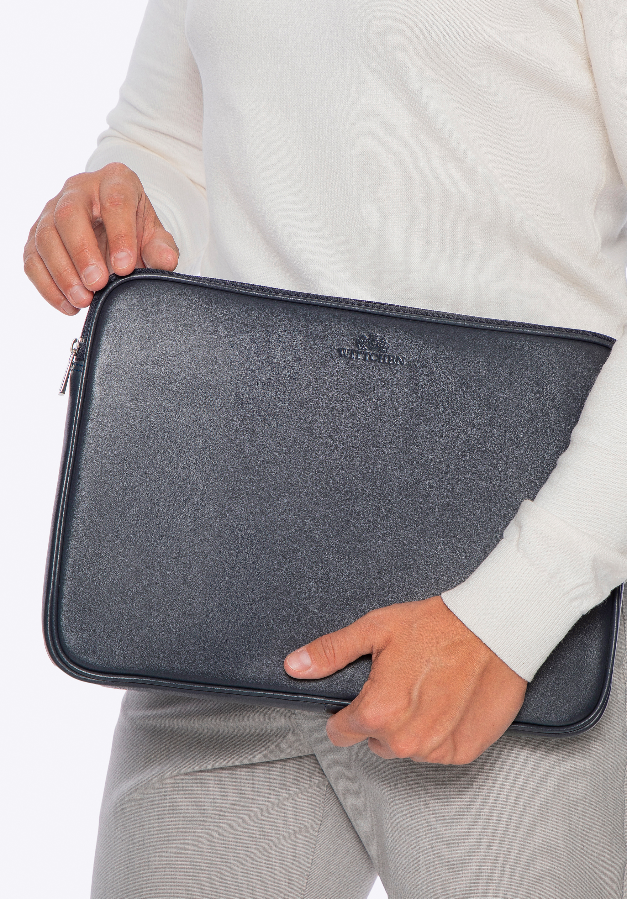 Husă din piele pentru laptop de 15,6” gri-închis