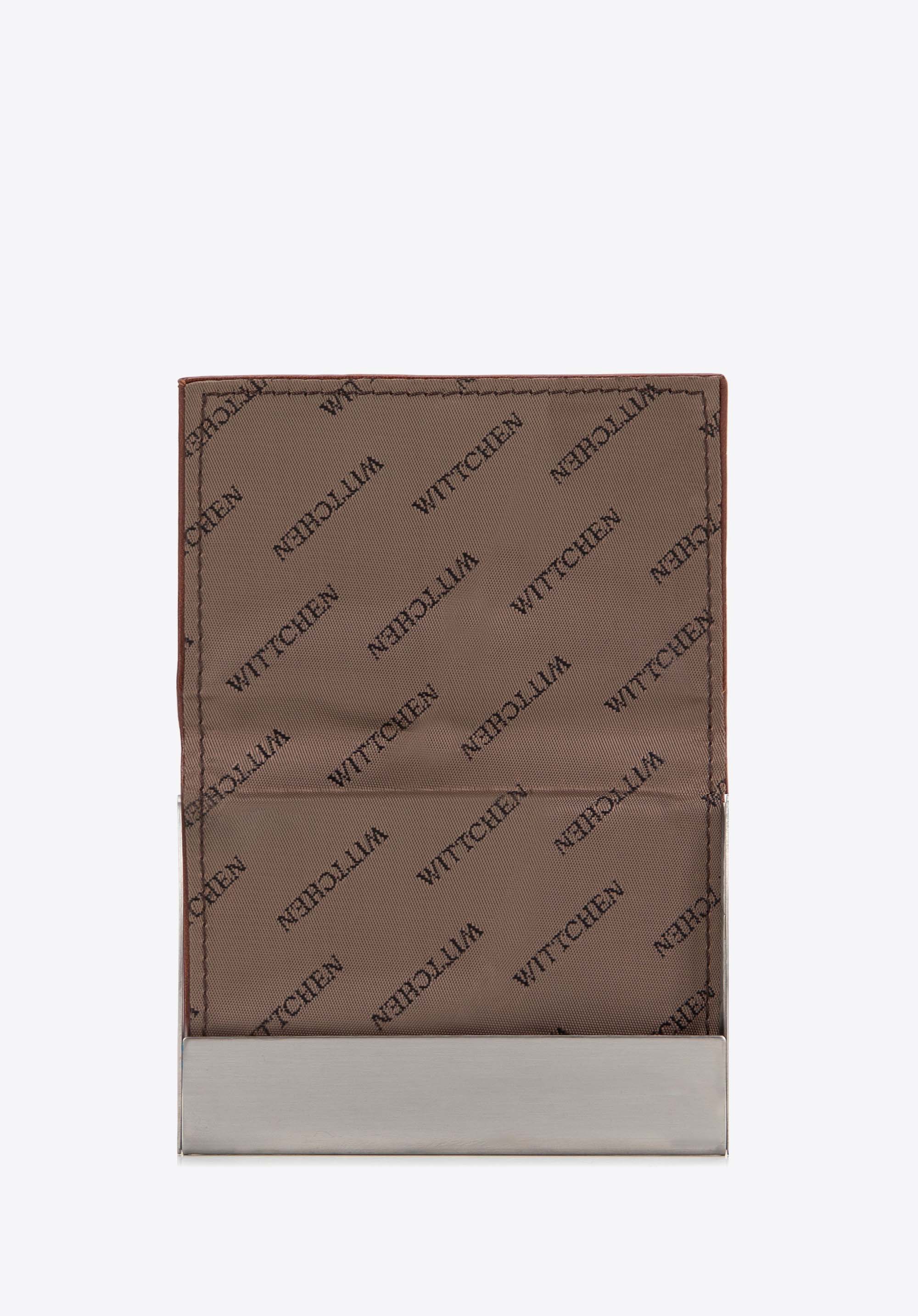 Etui business realizat manual din piele naturală.Logo - o placă cu stema WITTCHEN de culoare aurie. Etui pune accent pe clasă și profesionalism. Este practic, datorită căruia vizitele rămân într-o ordine perfectă.