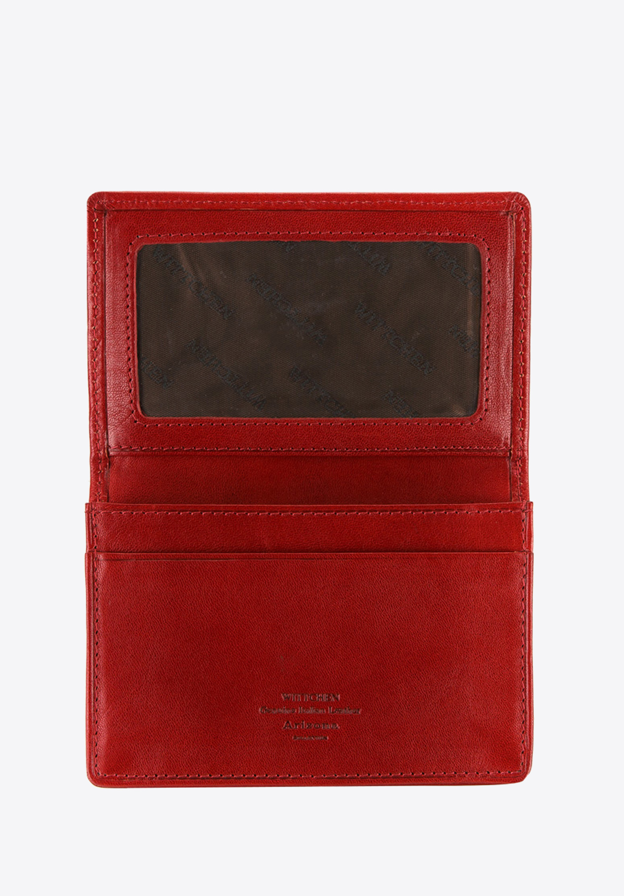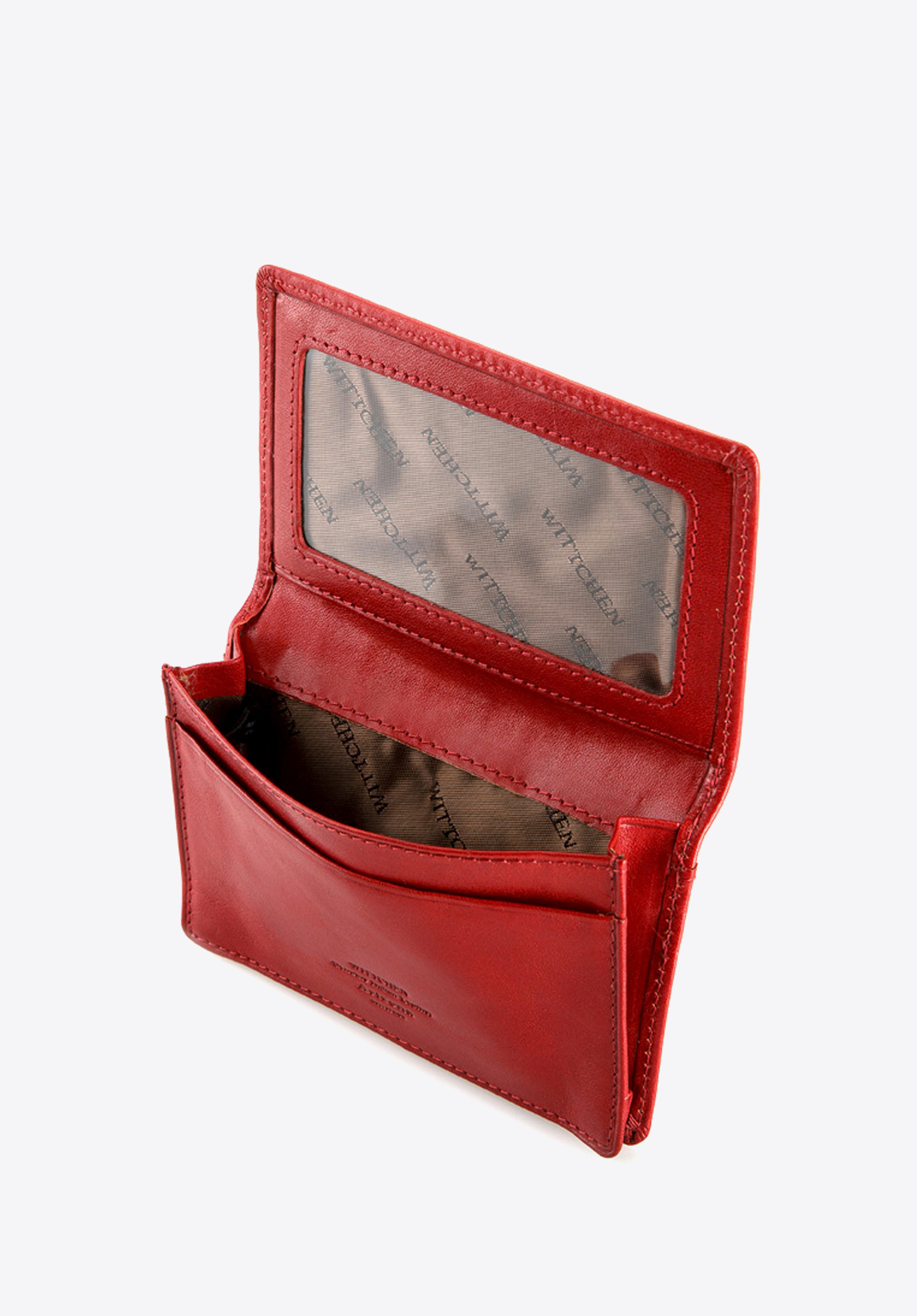 Husă pentru cărți de vizită din piele de culoare rosie cu stemă