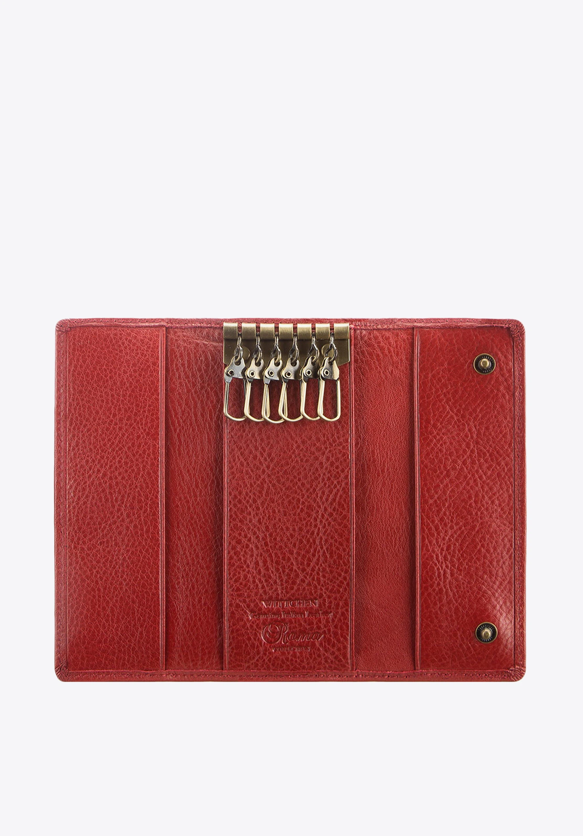 Portofel clasic pentru chei cu forma și design dreptunghiular care se va încadra perfect în orice geantă sau servietă.Modelul este realizat manual din piele de vițel de înaltă calitate și vă va servi ani de zile datorită fiabilității sale.Portcheiul este decorat cu cusături șifinisaje auriiinclusiv sigla WITTCHEN.Organizatorul este disponibil în două culori: negru și roșu.