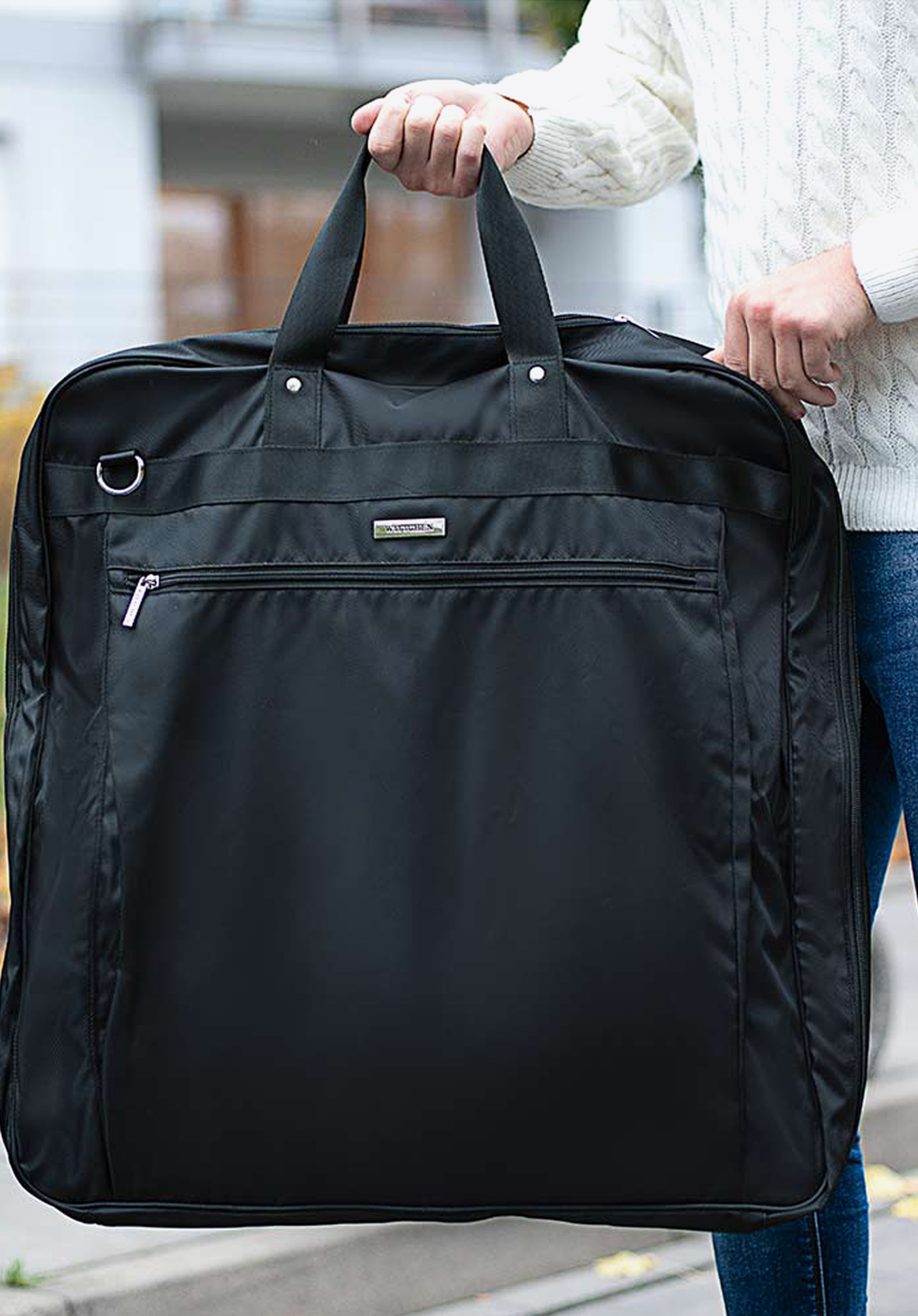 Aceastăgeantă cu rolul de husă vă va ajuta în multe situații. Va proteja costumul împotriva șifonării și va oferi spațiu pentru lucruri personale înbuzunarele încăpătoare. De aceea, poate fi chiar singura geantă, pe care o luați într-o călătorie scurtă, de exemplu, la o conferință sau la o ocazie în familie. Este cusută dintr-o țesătură rezistentă la murdărie și ușor de curățat. Geanta pentru costum este, de asemenea,o idee excelentă de cadou pentru bărbații, care călătoresc în interes de afaceri.