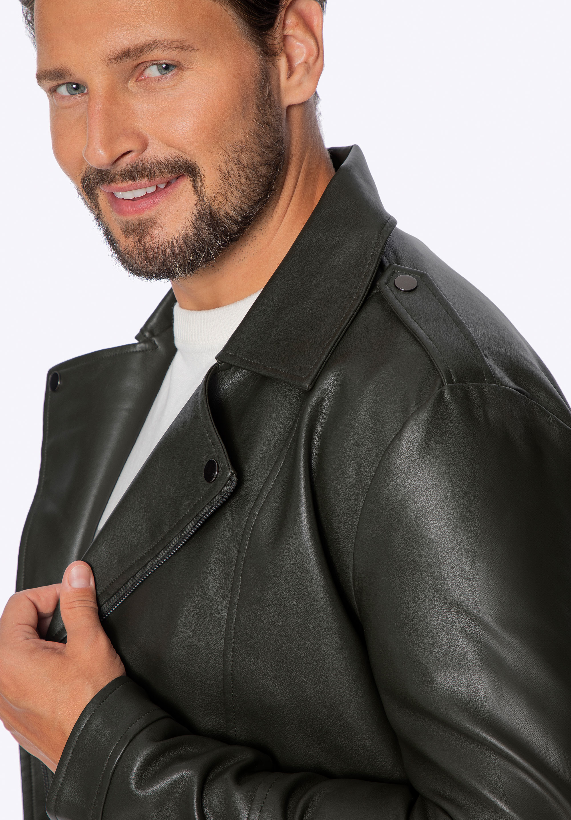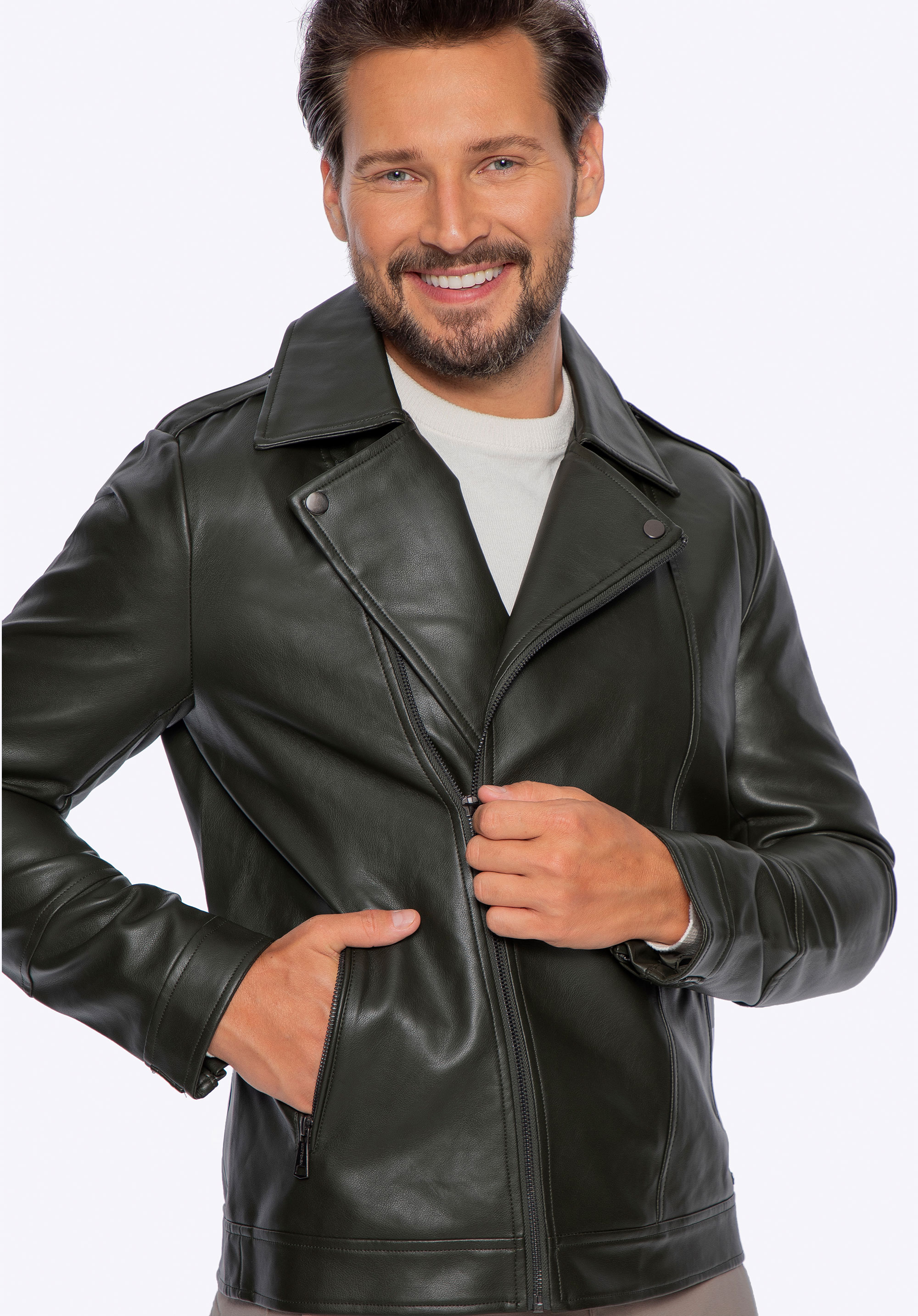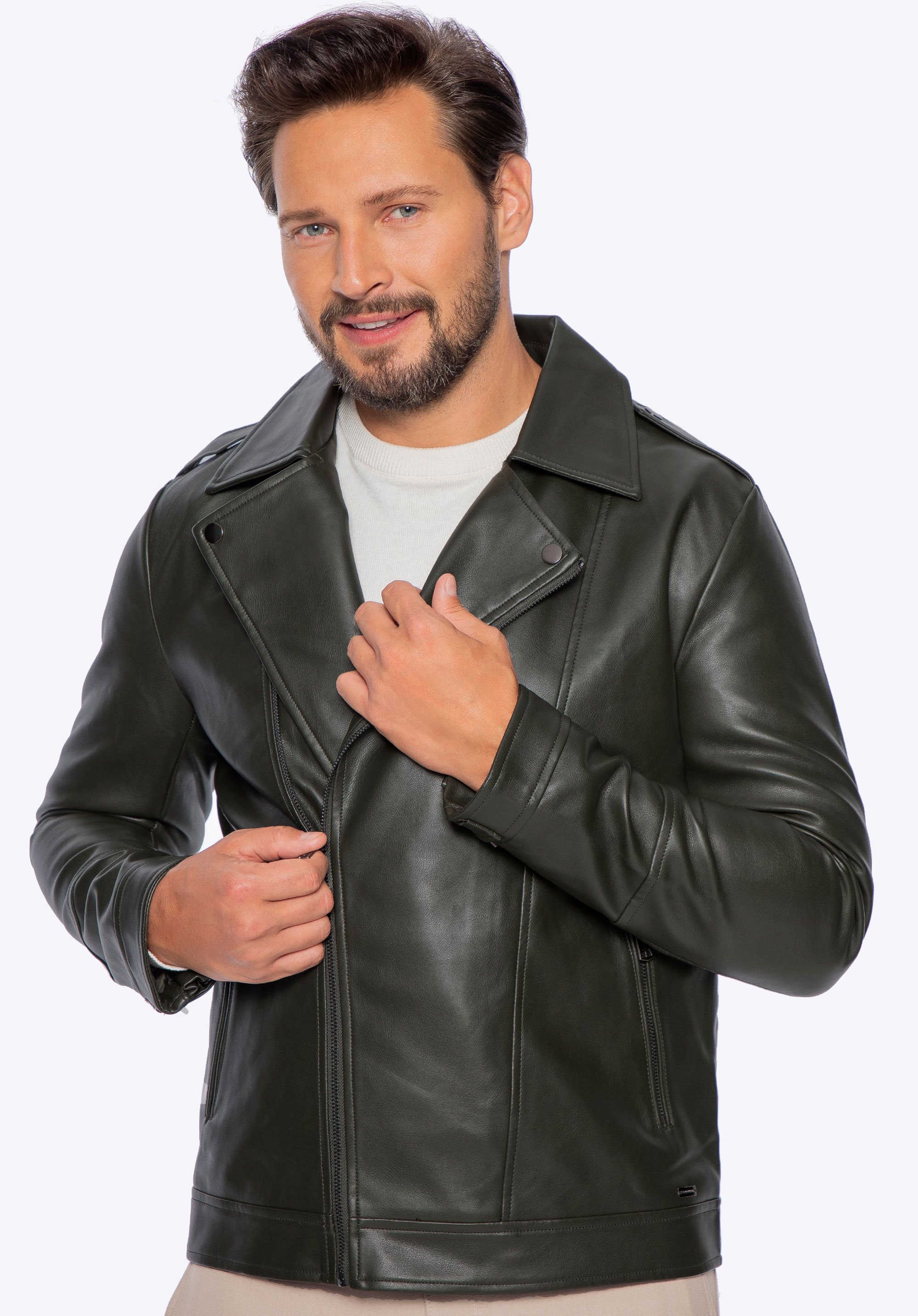 Această jachetă de motociclist pentru bărbați va actualiza cu stil garderoba modernă a unui bărbat. Această jachetă din piele artificială de calitate superioară este concepută cu un stil incredibil de la modă, un guler rabatabil și două buzunare cu fermoar. Combinația dintre o croială confortabilă și o manoperă de calitate asigură o protecție excelentă în zilele mai reci. Se asortează perfect cu blugi și un pulover. Această jachetă din piele artificială pentru bărbați este un accesoriu atemporal pentru garderoba oricărui bărbat elegant.