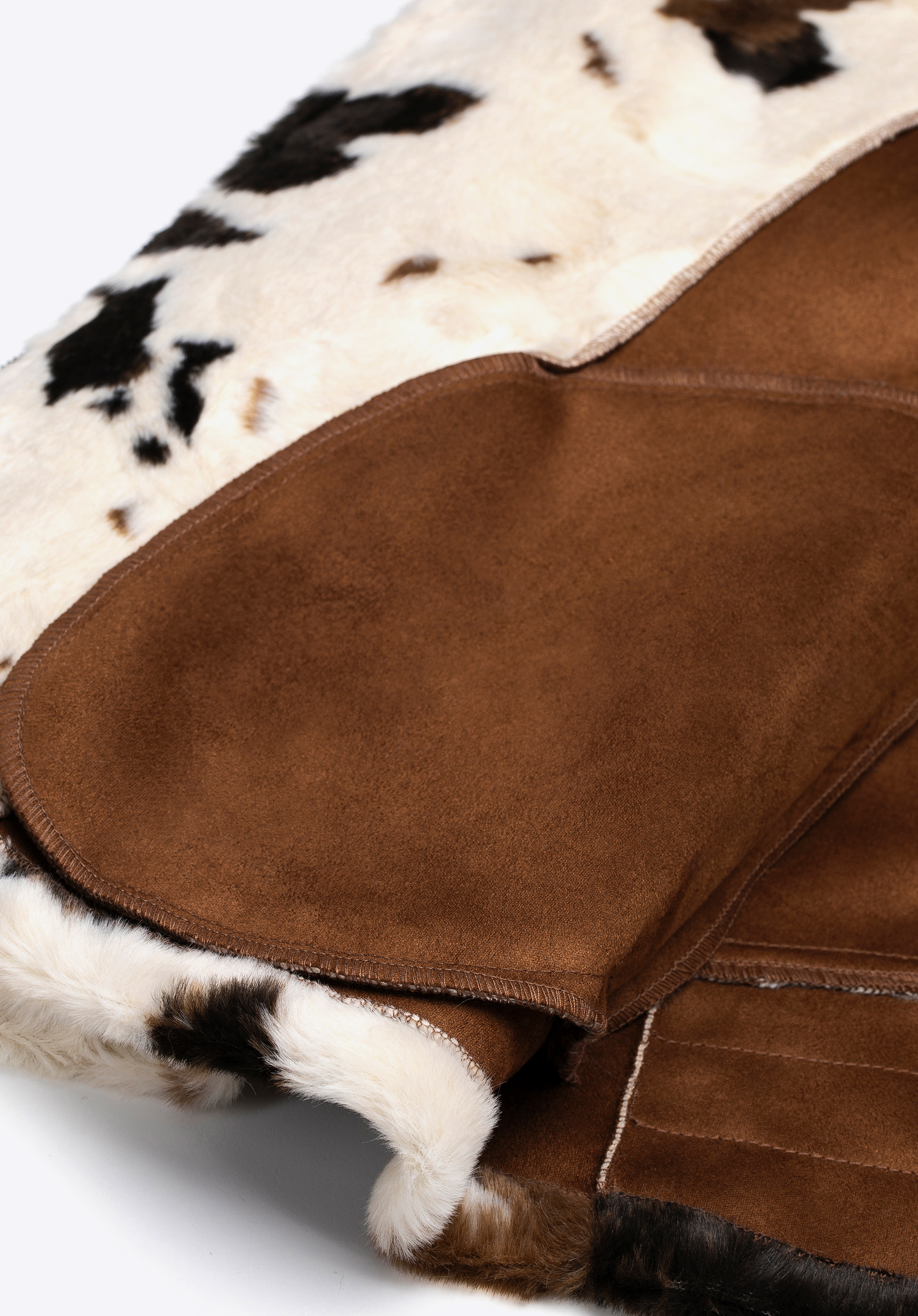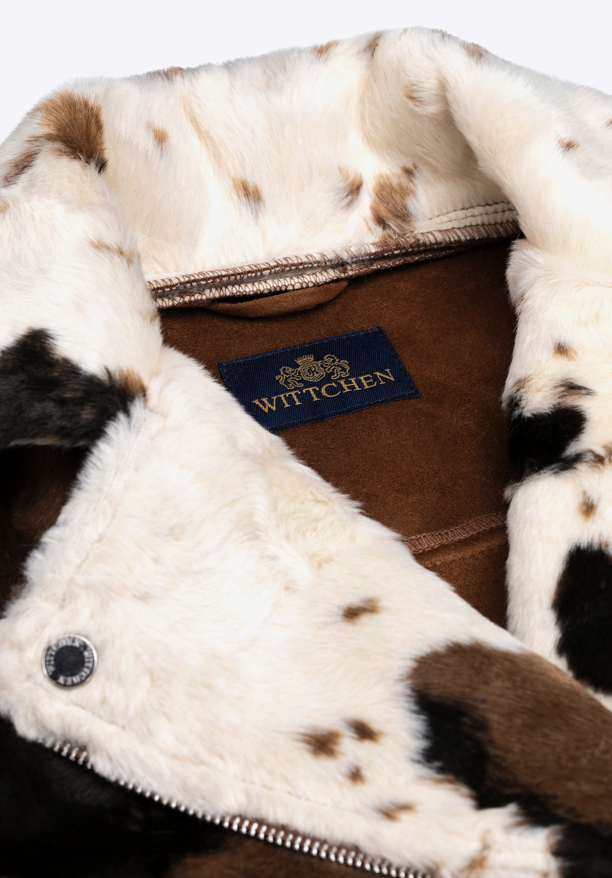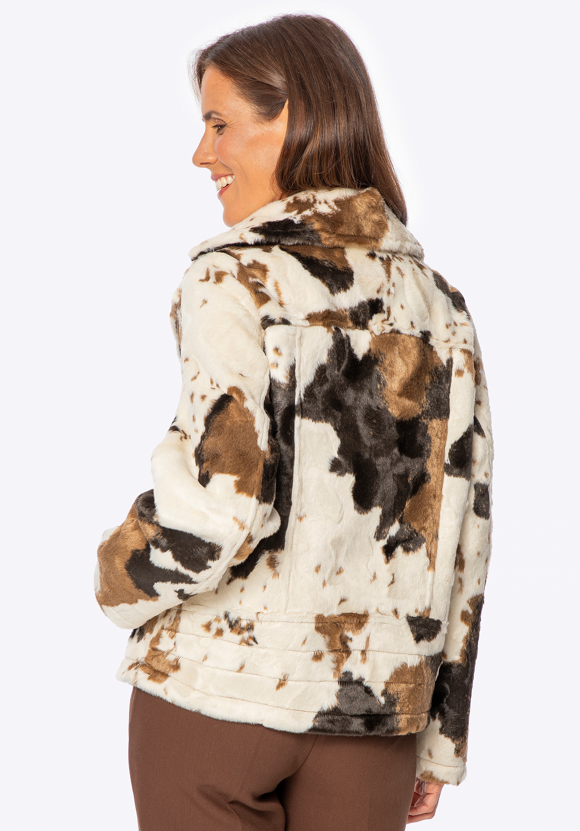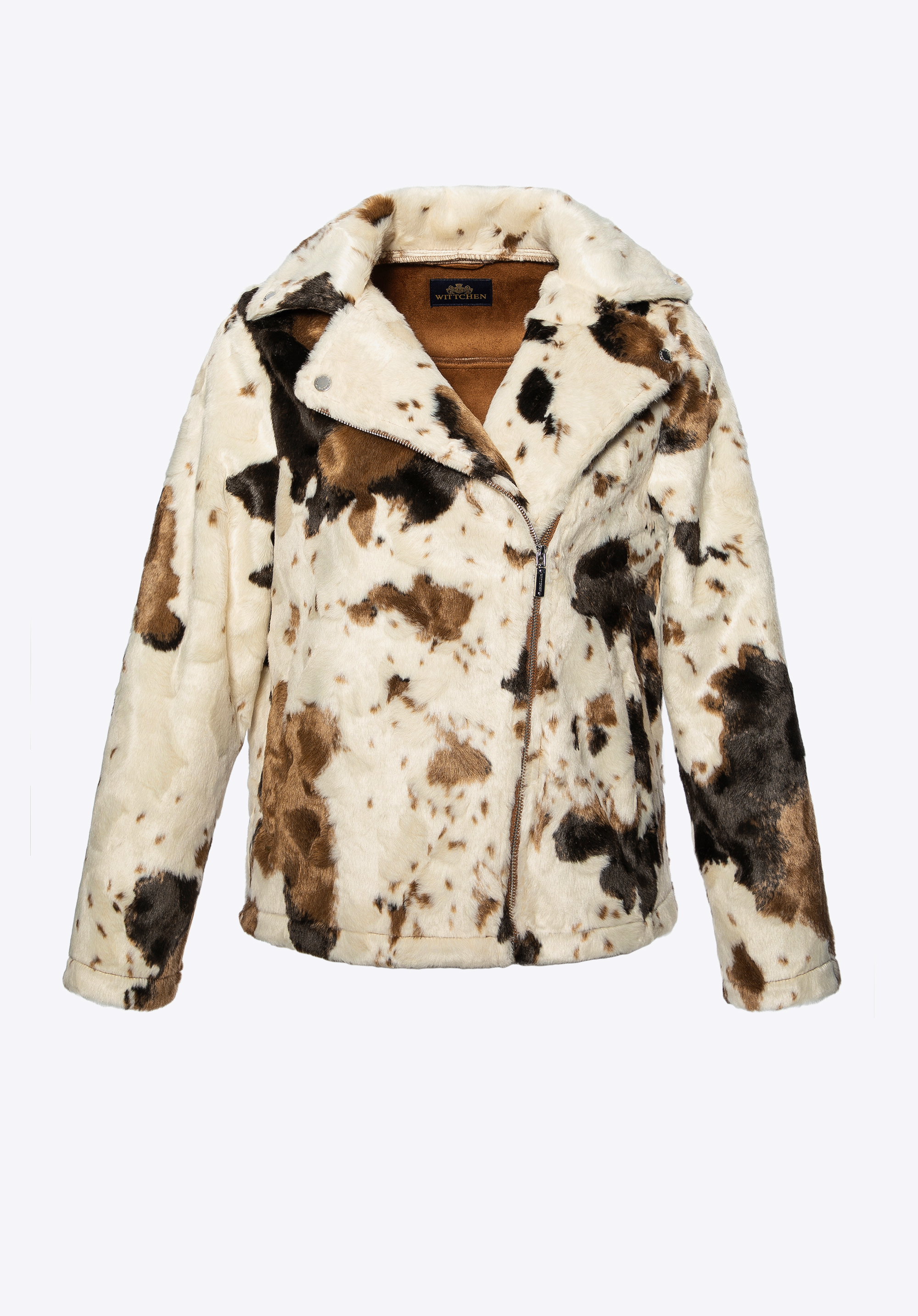 Alege un stil care atrage cu adevărat atenția. Această jachetă supradimensionată pentru femei, confecționată din blană artificială moale, cu un model inspirat din piele de vacă, este o combinație originală de confort și modă. Croiul lejer asigură libertate de mișcare și un aspect urban natural, în timp ce închiderea simplă cu fermoar frontal evidențiază designul minimalist. Gulerul a fost conceput cu grijă pentru a completa silueta generală, adăugând un caracter distinctiv oricărei ținute.