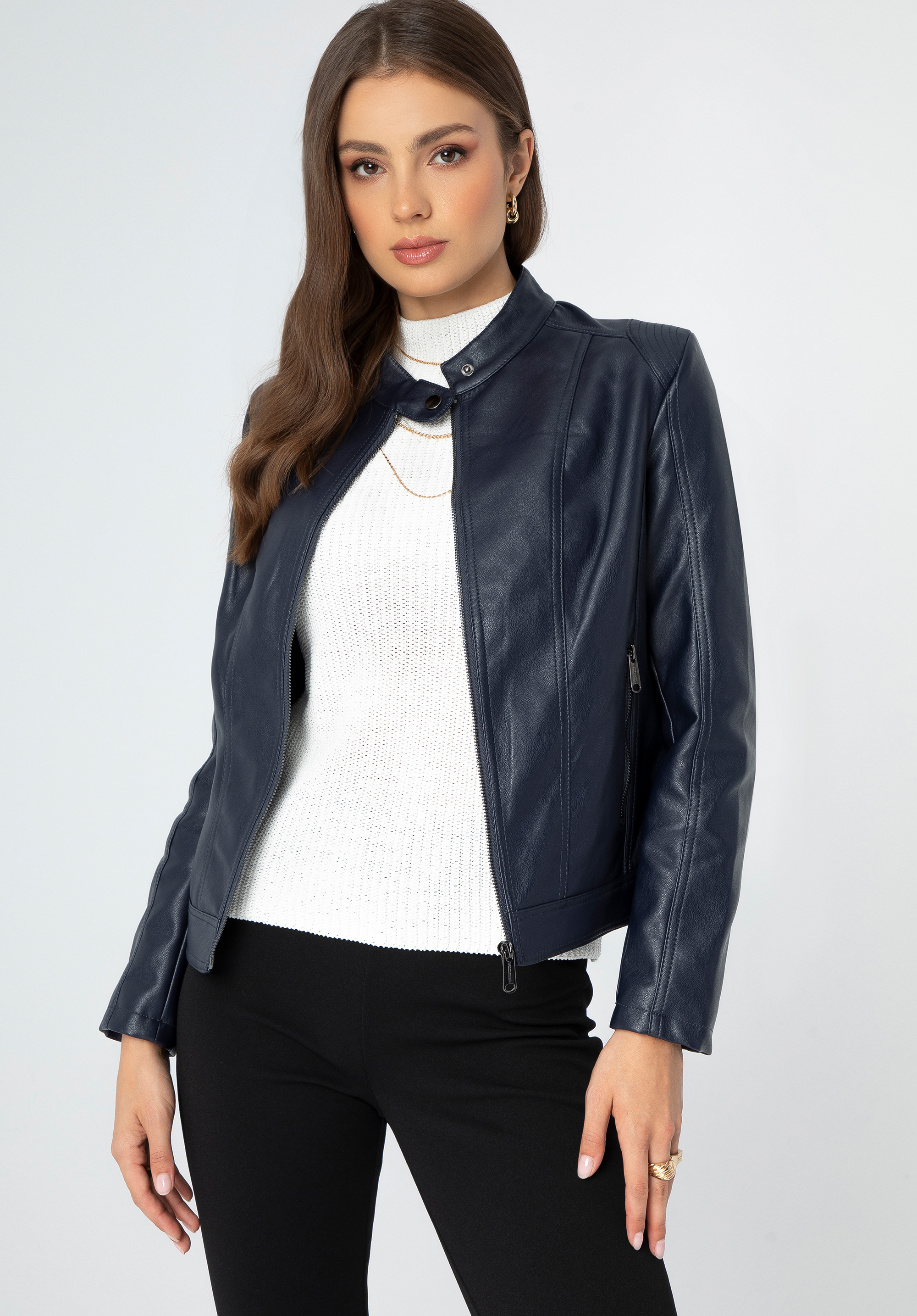 Redescoperă-ți eleganța și confortul cu jacheta noastră din piele ecologică - o piesă cheie pentru orice garderobă elegantă!
