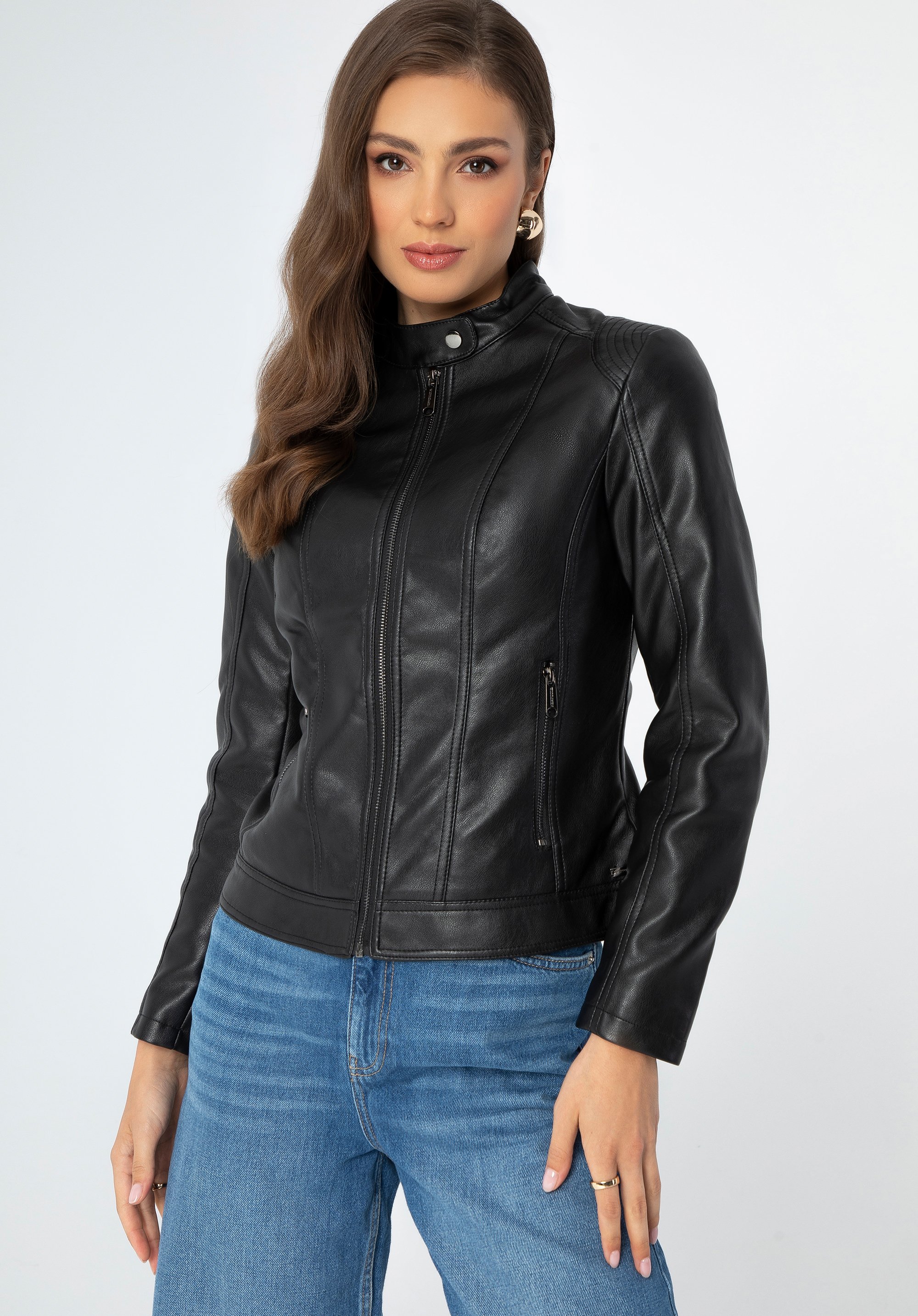 Redescoperă-ți eleganța și confortul cu jacheta noastră din piele ecologică - o piesă cheie pentru orice garderobă elegantă!