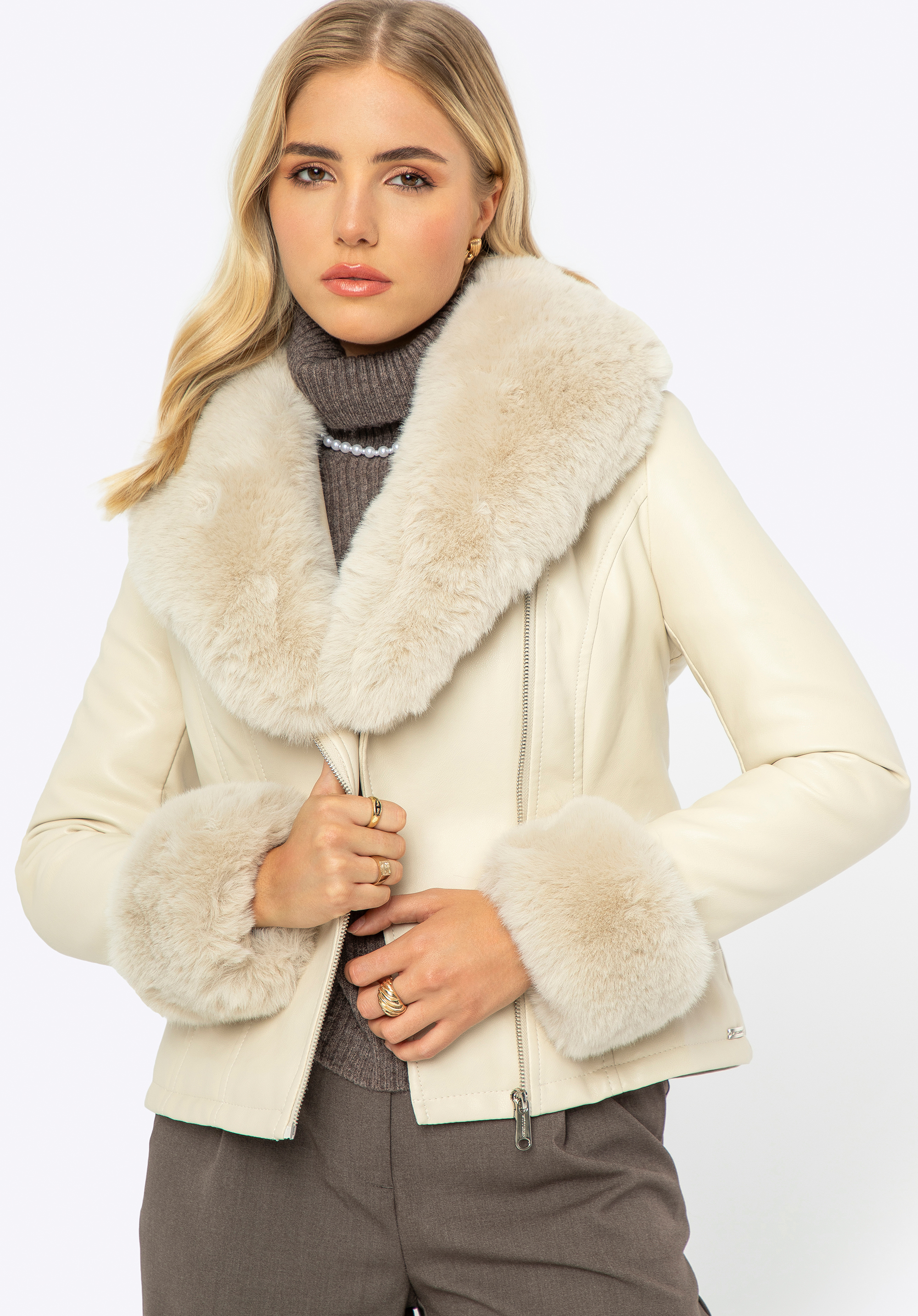 Eleganța se întâlnește cu confortul în jacheta noastră pentru femei din imitație de piele . Cu designul său modern și detaliile atent alese, fiecare femeie se va simți elegantă și excepțională. Fermoarul robust asigură încărcarea și scoaterea cu ușurință, în timp ce buzunarele practice cu capsă țin în siguranță articolele esențiale. Gulerul și manșetele de blană conferă jachetei un caracter luxos, iar opțiunea de detașare a gulerului îți permite să-i adaptezi aspectul pentru diverse ocazii.