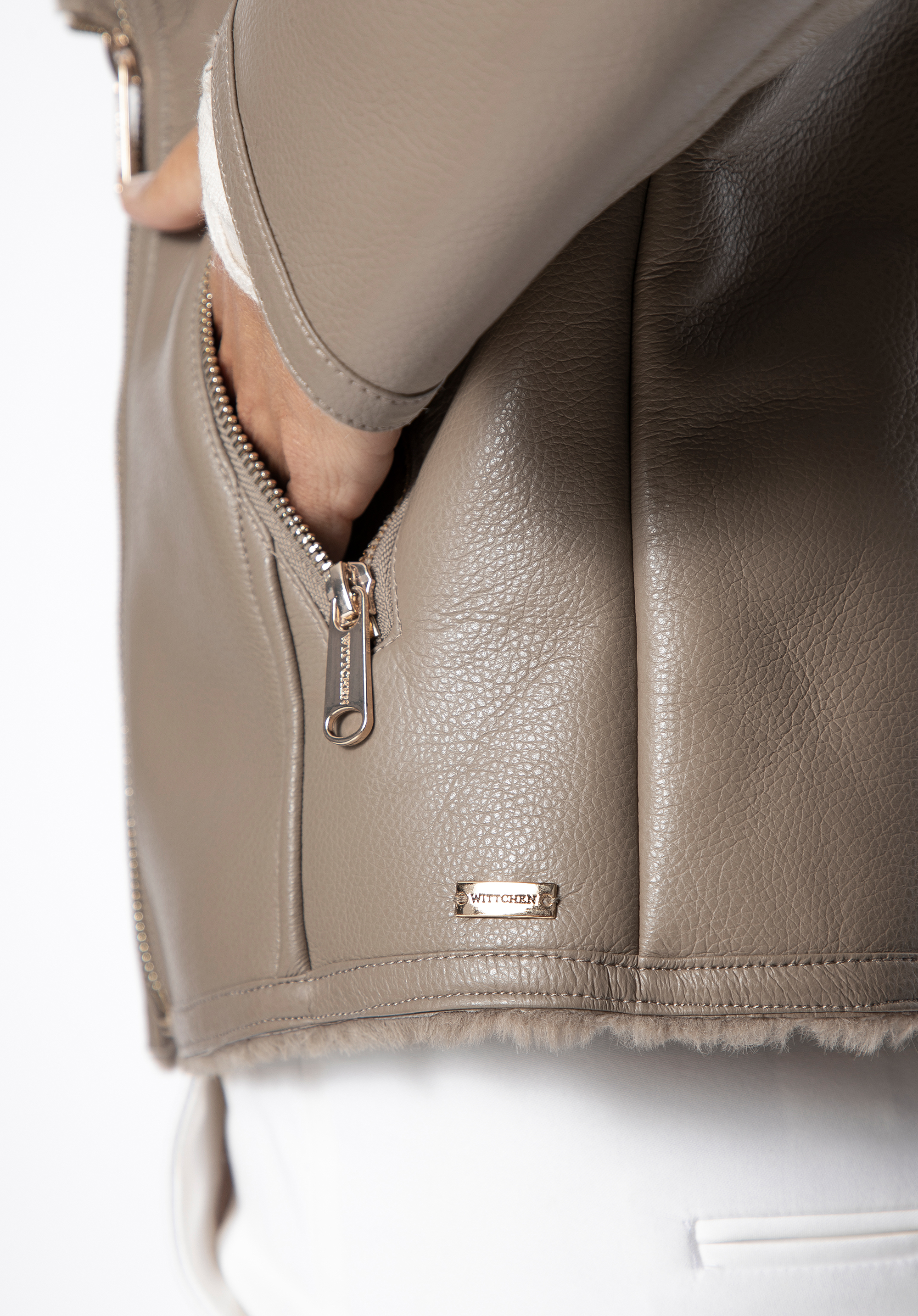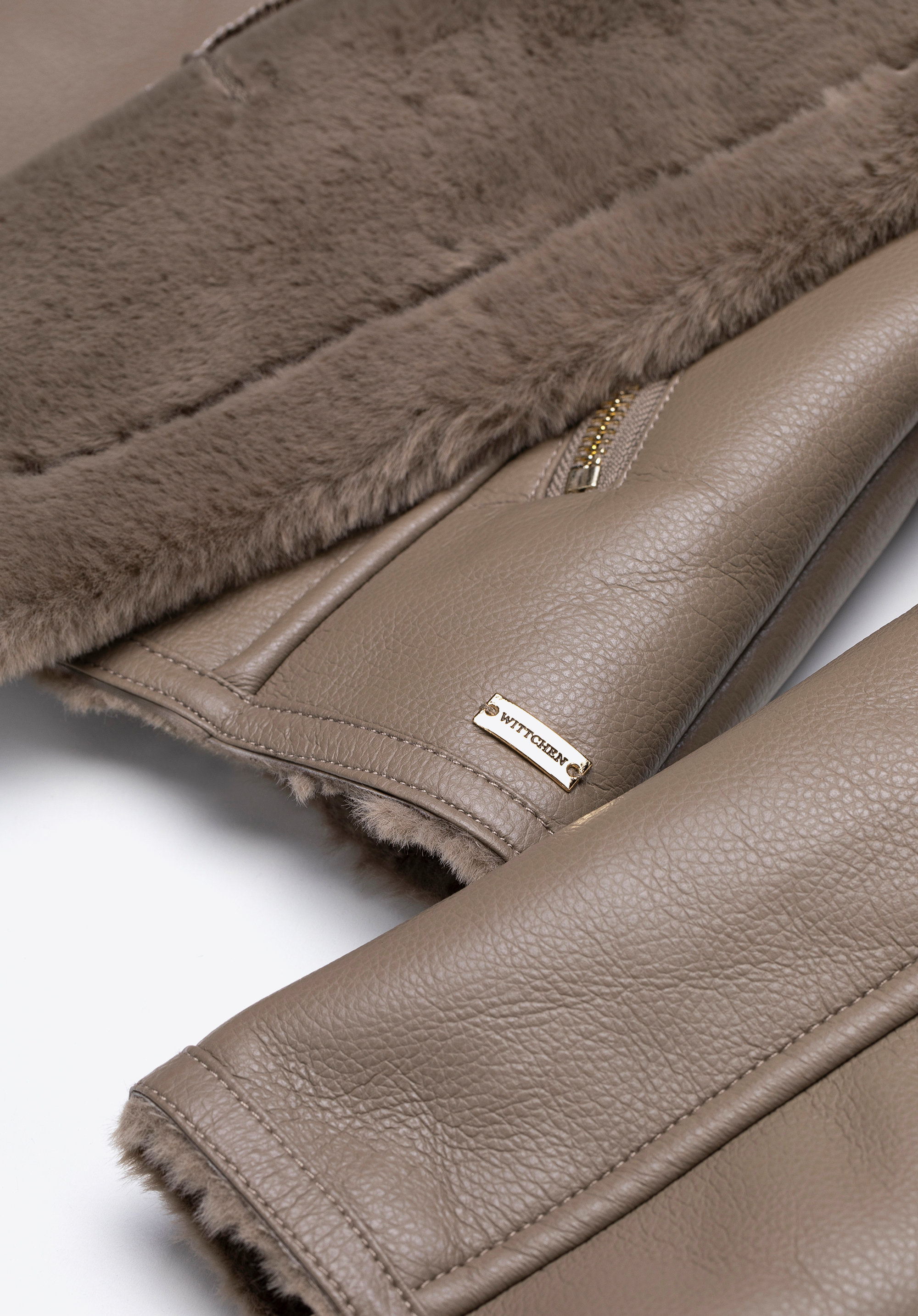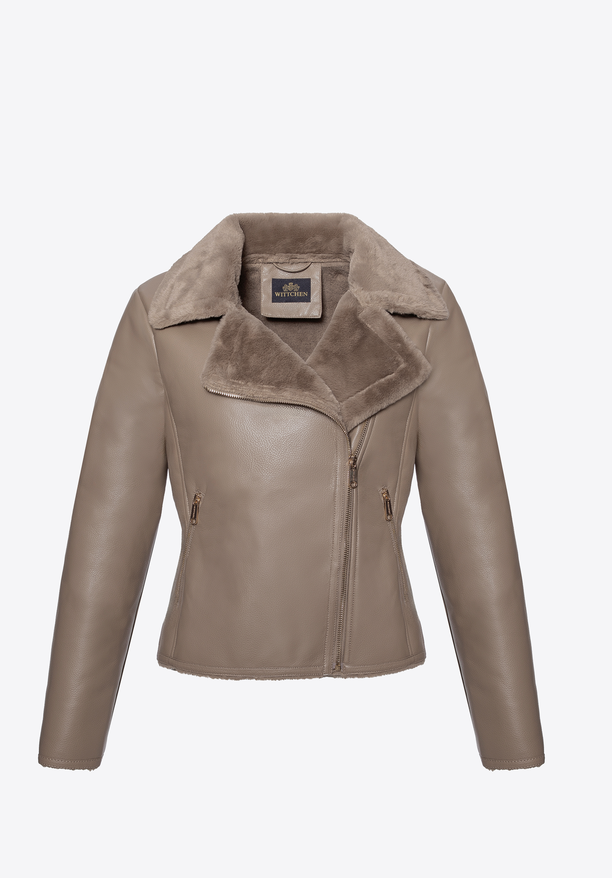 Jachetă de motociclist cu căptușeală și guler din blană artificială
