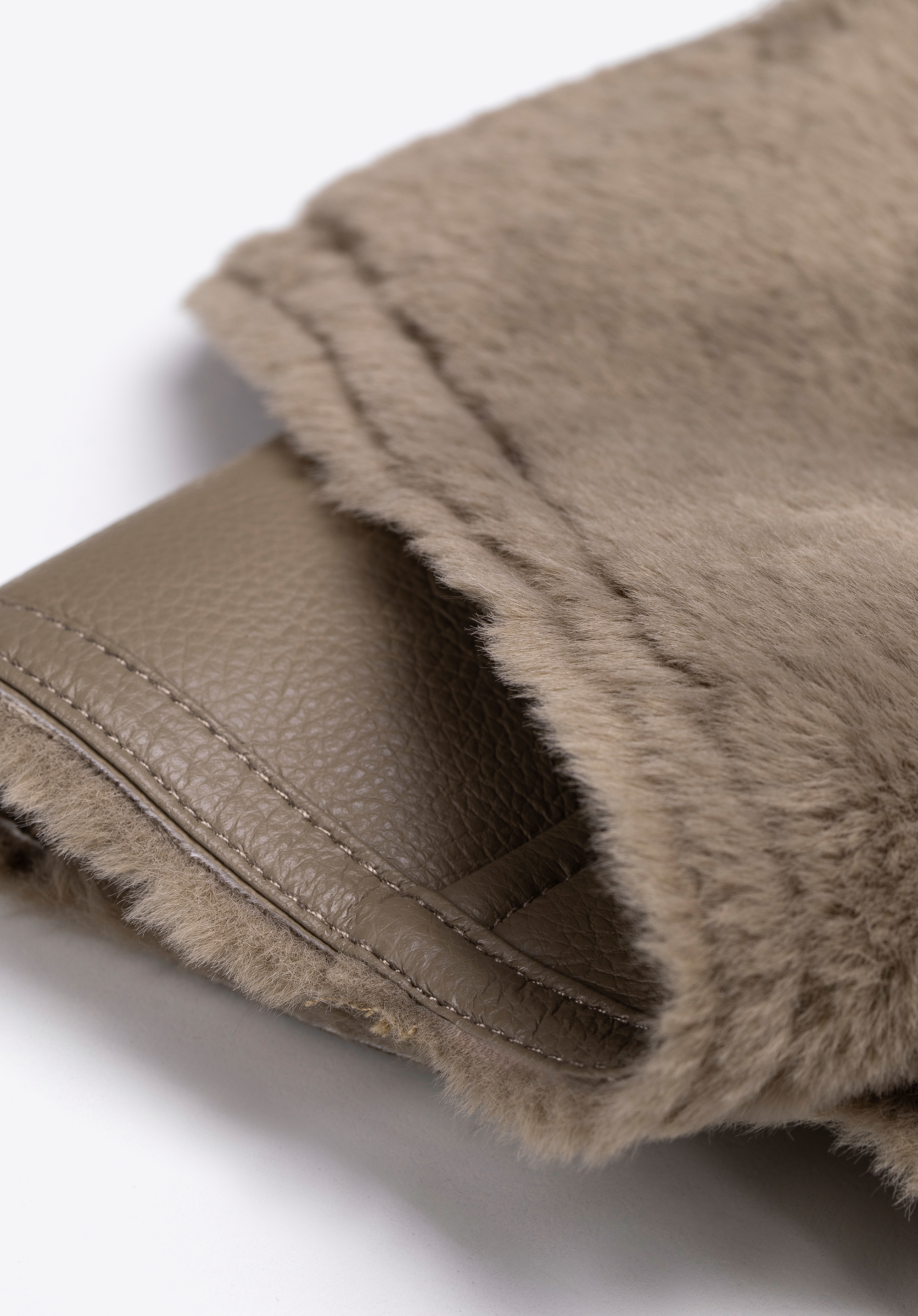 - Compoziție : Material exterior : 100% piele ecologică; căptușeală : 100% poliester; blană ecologică : 100% poliester.