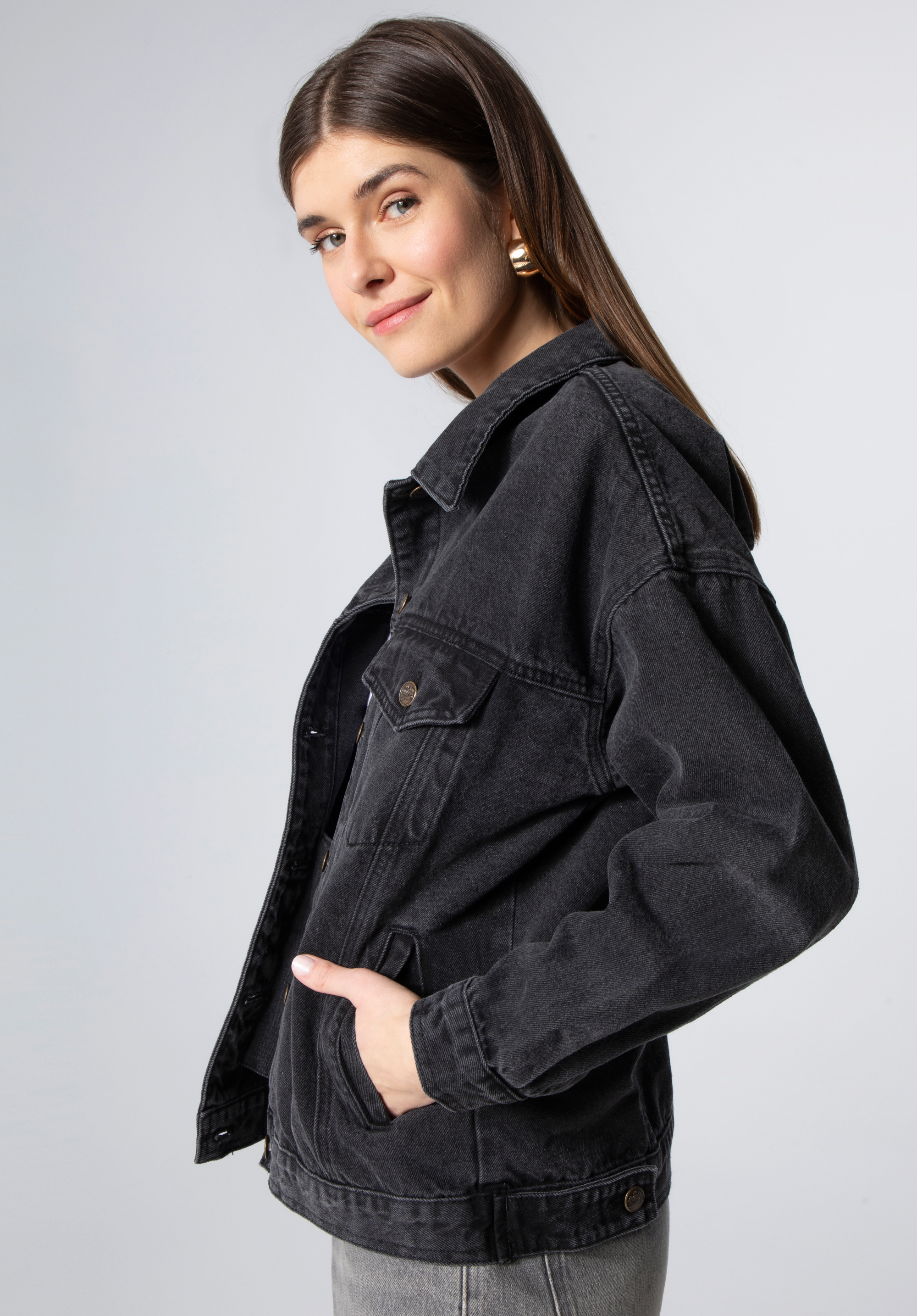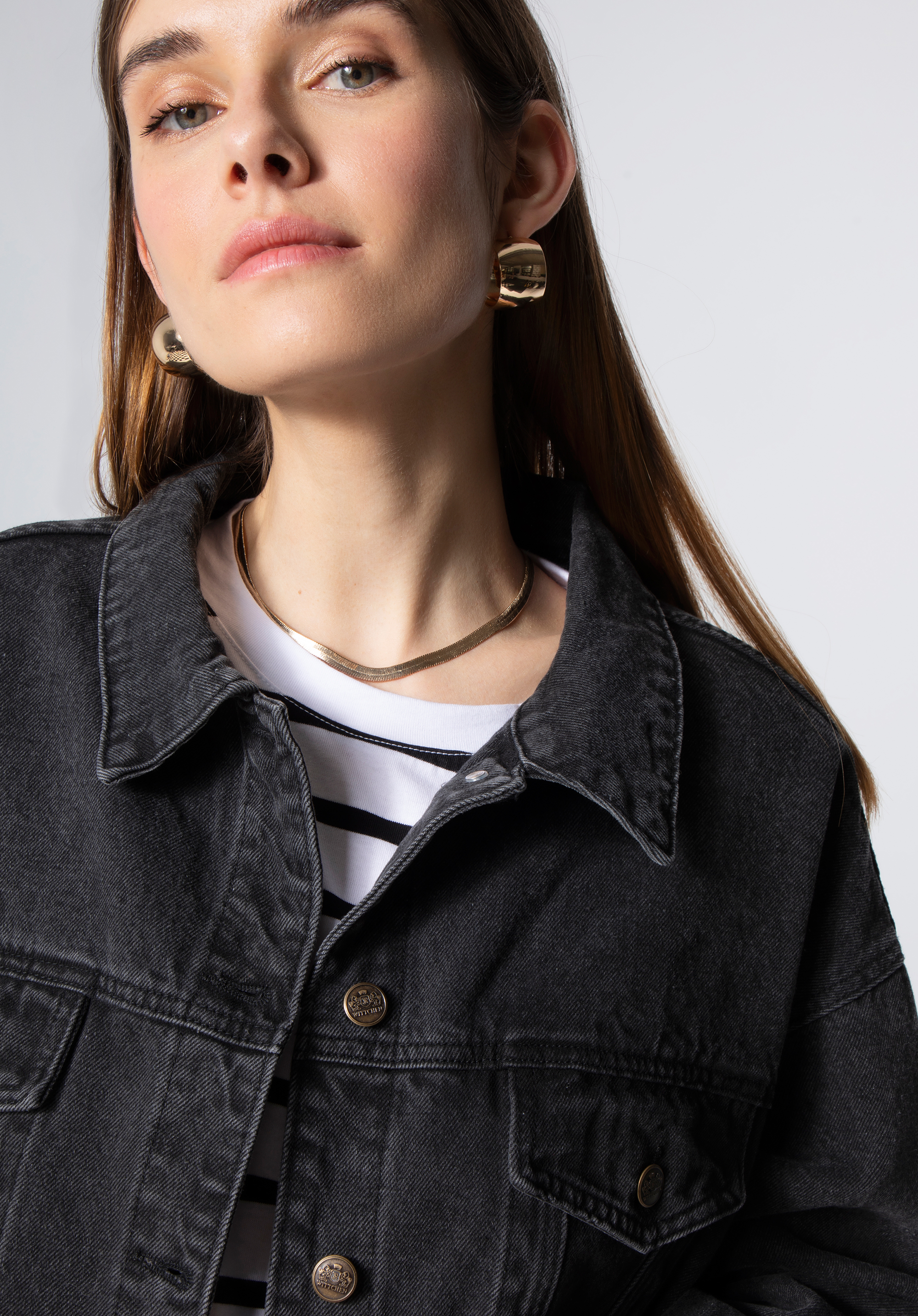 Jacheta de denim confortabilă și versatilă este un must-have pentru orice garderobă modernă . Această jachetă oversize oferă o senzație spectaculoasă. Proiectat cu o potrivire supradimensionată și umerii căzuți, creând o estetică casual modernă. Actualizați-vă colecția cu această jachetă. Asortați-vă cu o rochie de primăvară , cu flori și pantofi sport pentru un aspect de primăvară cauzal în timpul zilei, sau pentru lunile mai reci, stratul deasupra cu un pulover. În ambele cazuri, vei arăta foarte elegant și sofisticat.