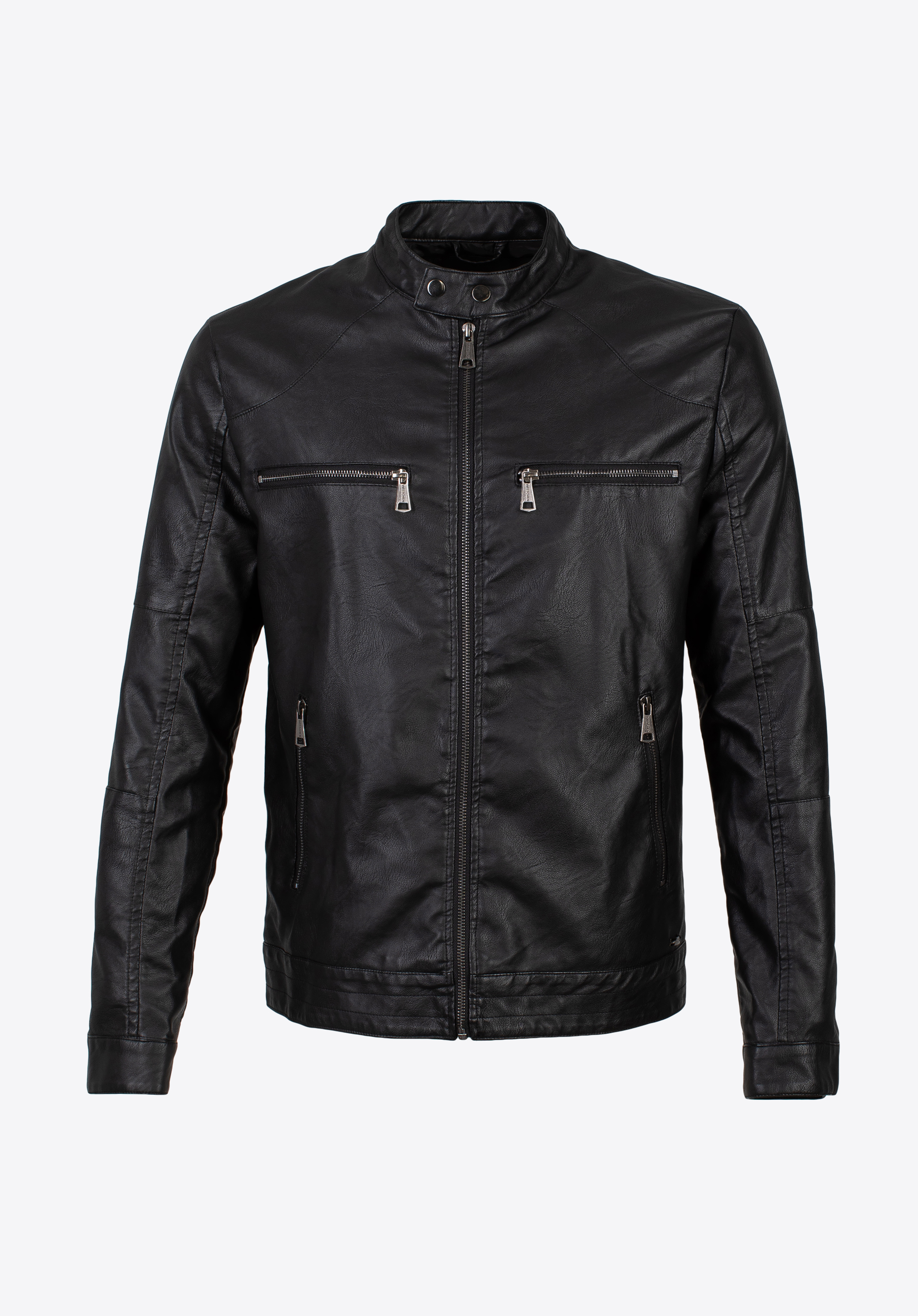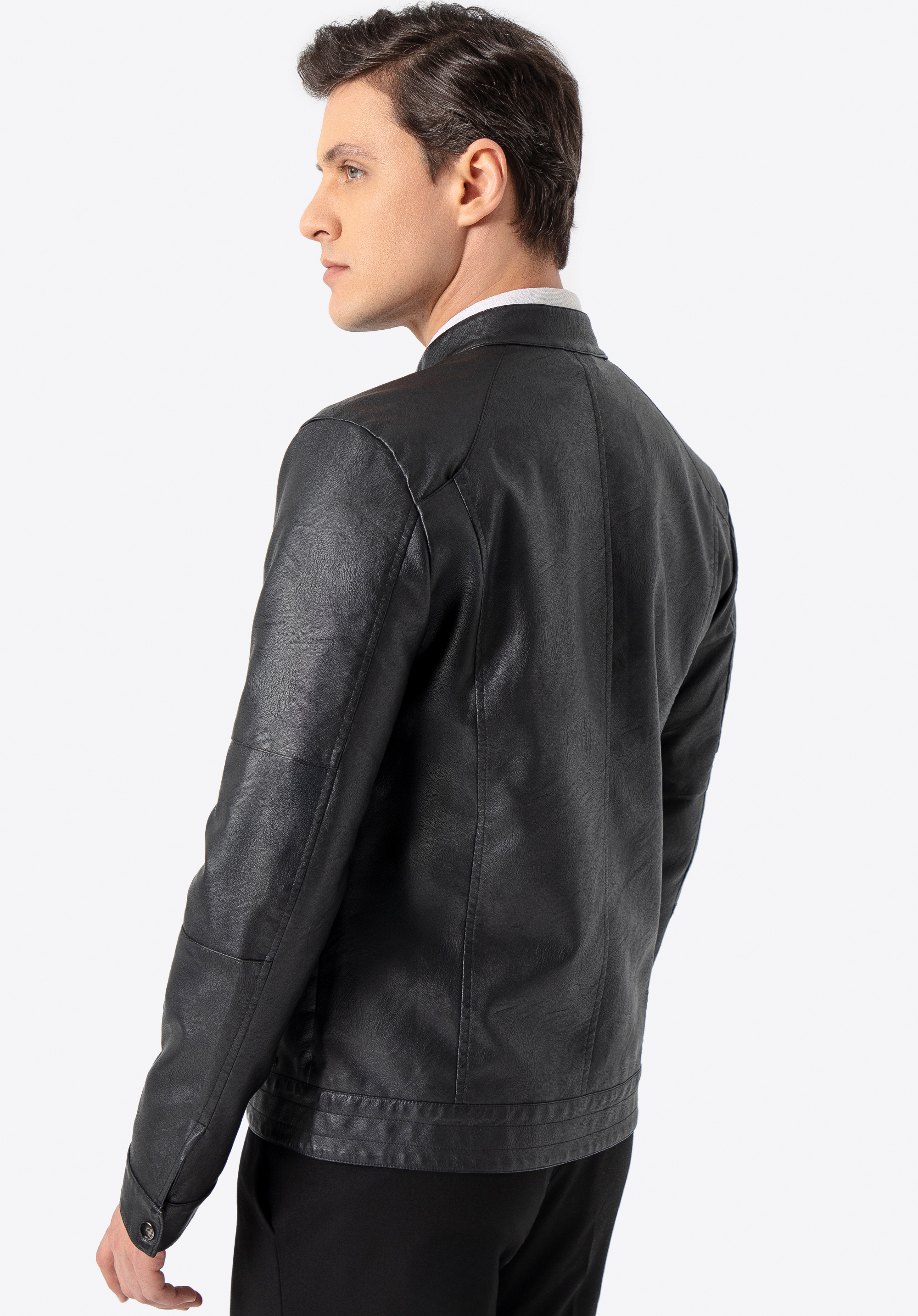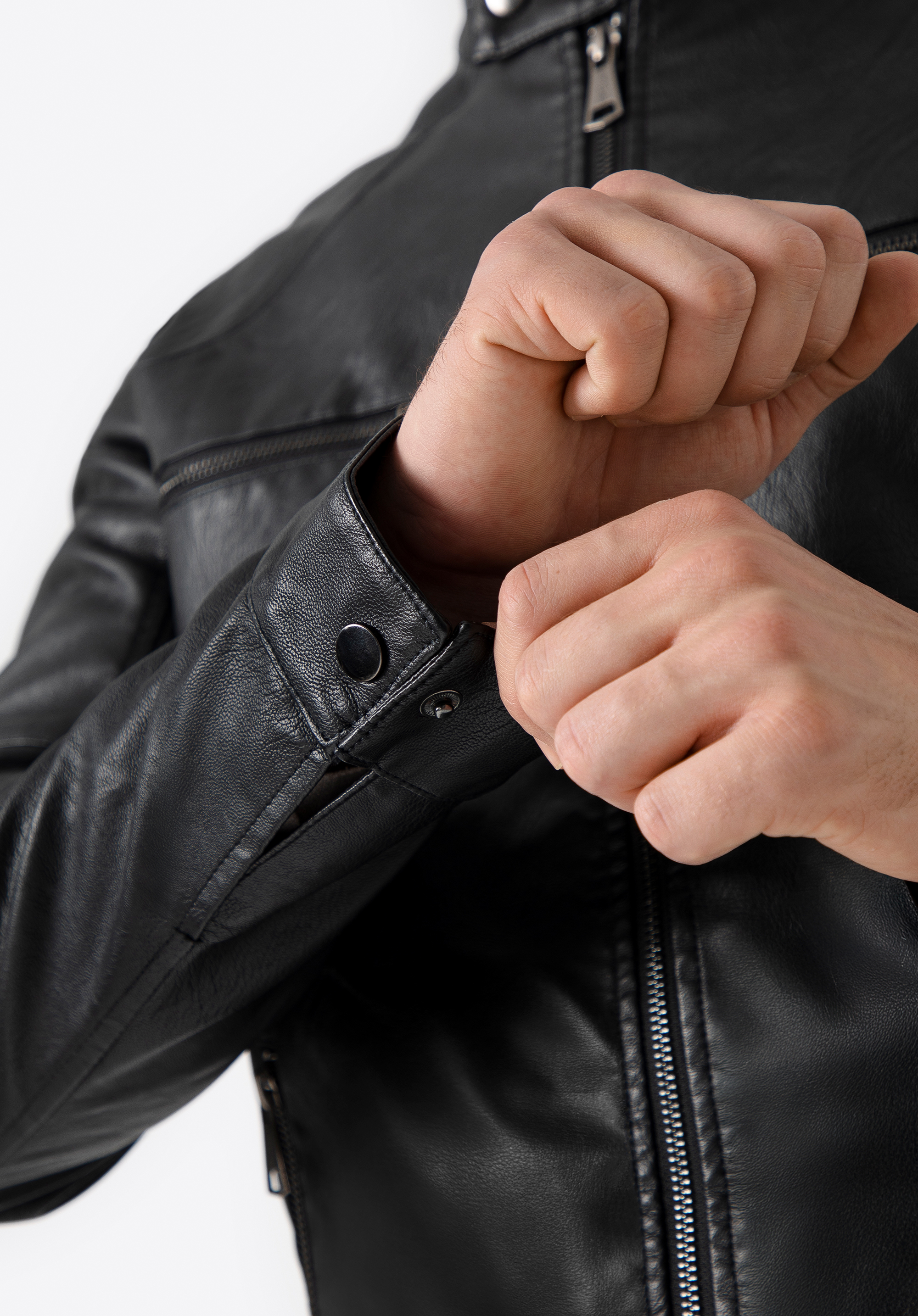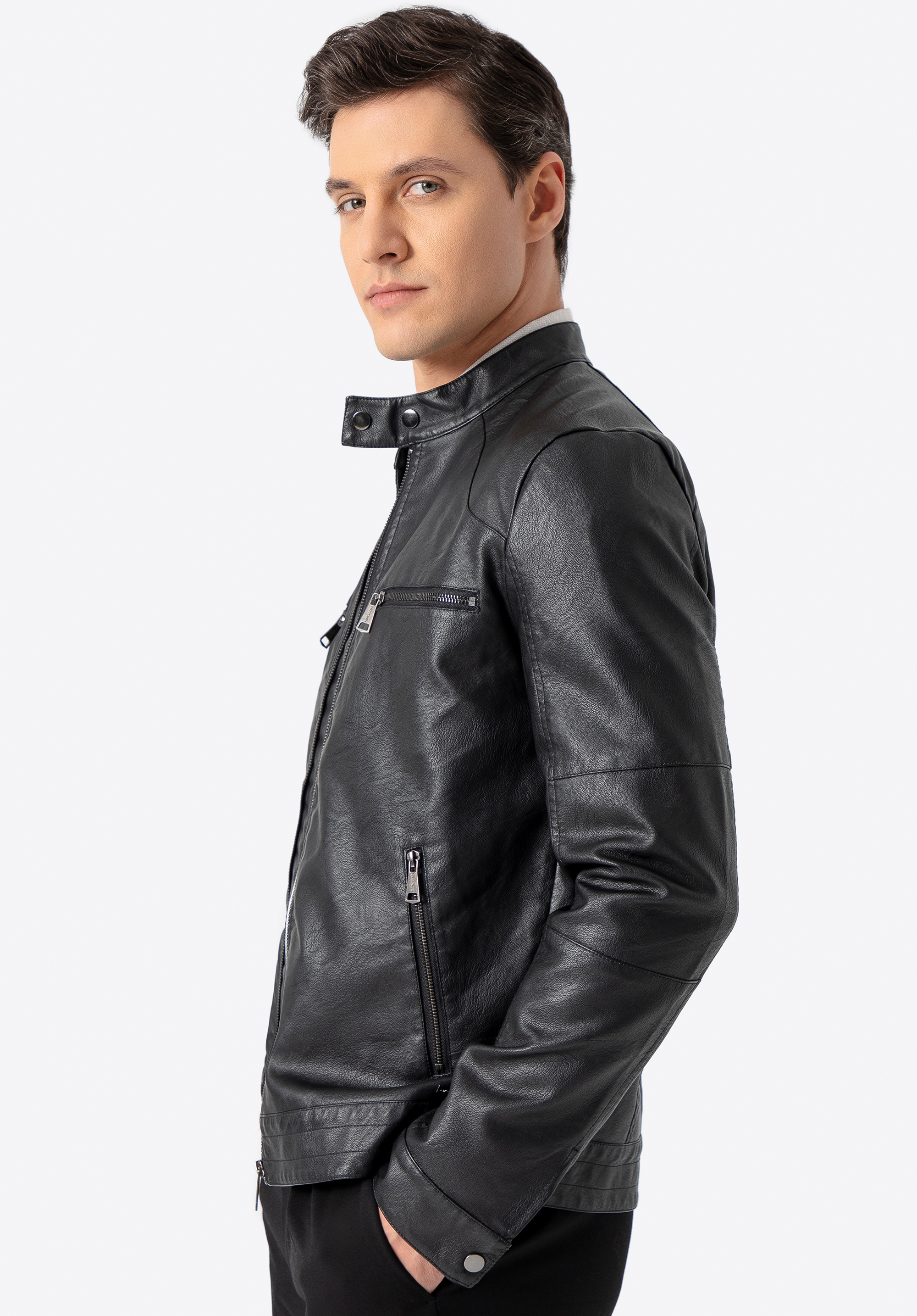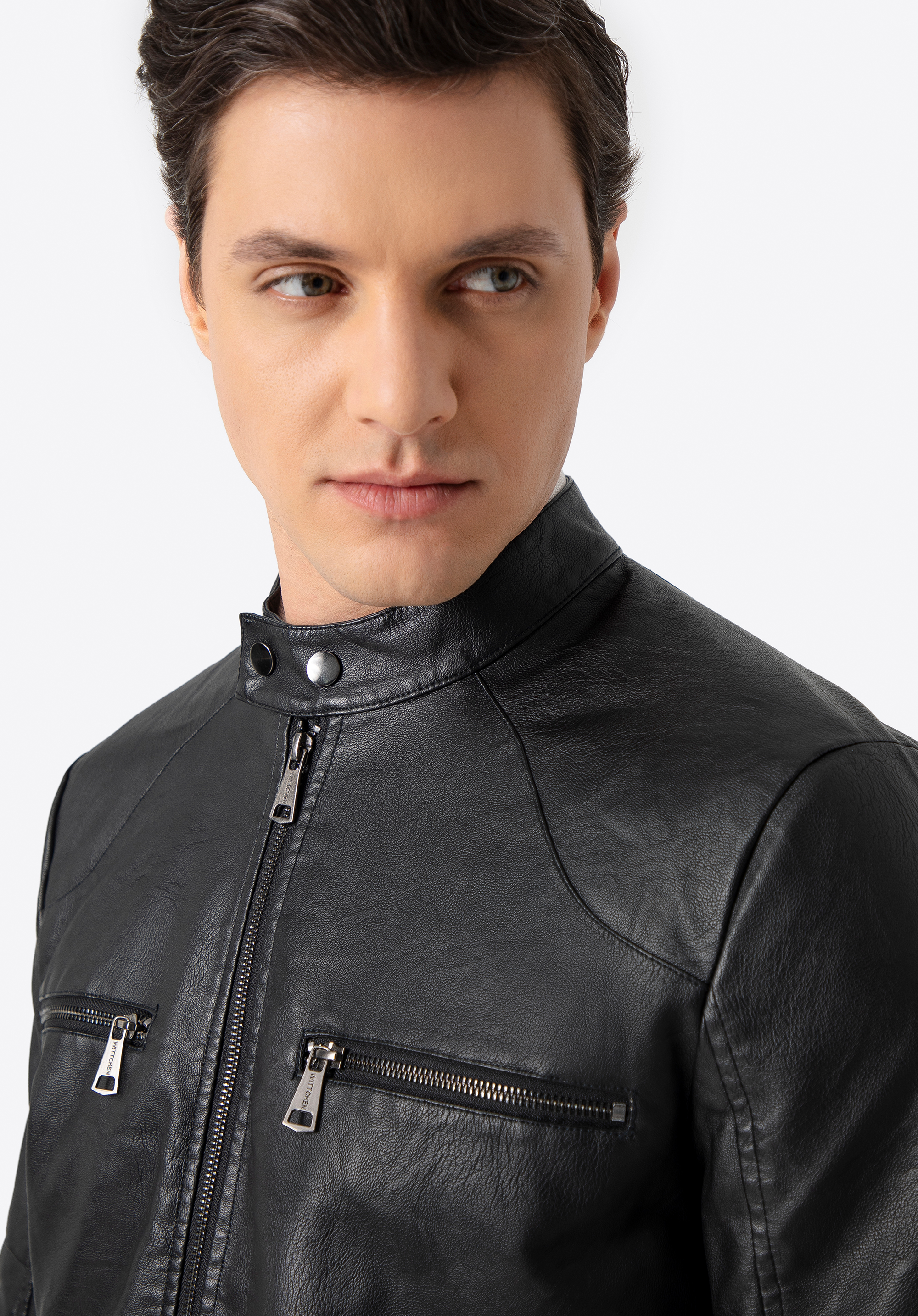 O jachetă clasică din piele ecologică este un accesoriu pe care îl poți purta în fiecare zi. Designul simplu este completat de un guler ridicat prins sub gât cu dublă capsă. Buzunarele cu fermoar adaugă caracter și poți ascunde articole mici în ele. Poartă-l cu blugi si un pulover in fiecare zi sau combină-l cu pantaloni chino si o cămașă - vei arata chic în orice situatie. Geaca de bărbați din piele ecologică cu guler ridicat este un model practic și stilat pe care îl poți purta atât la serviciu, cât si după.