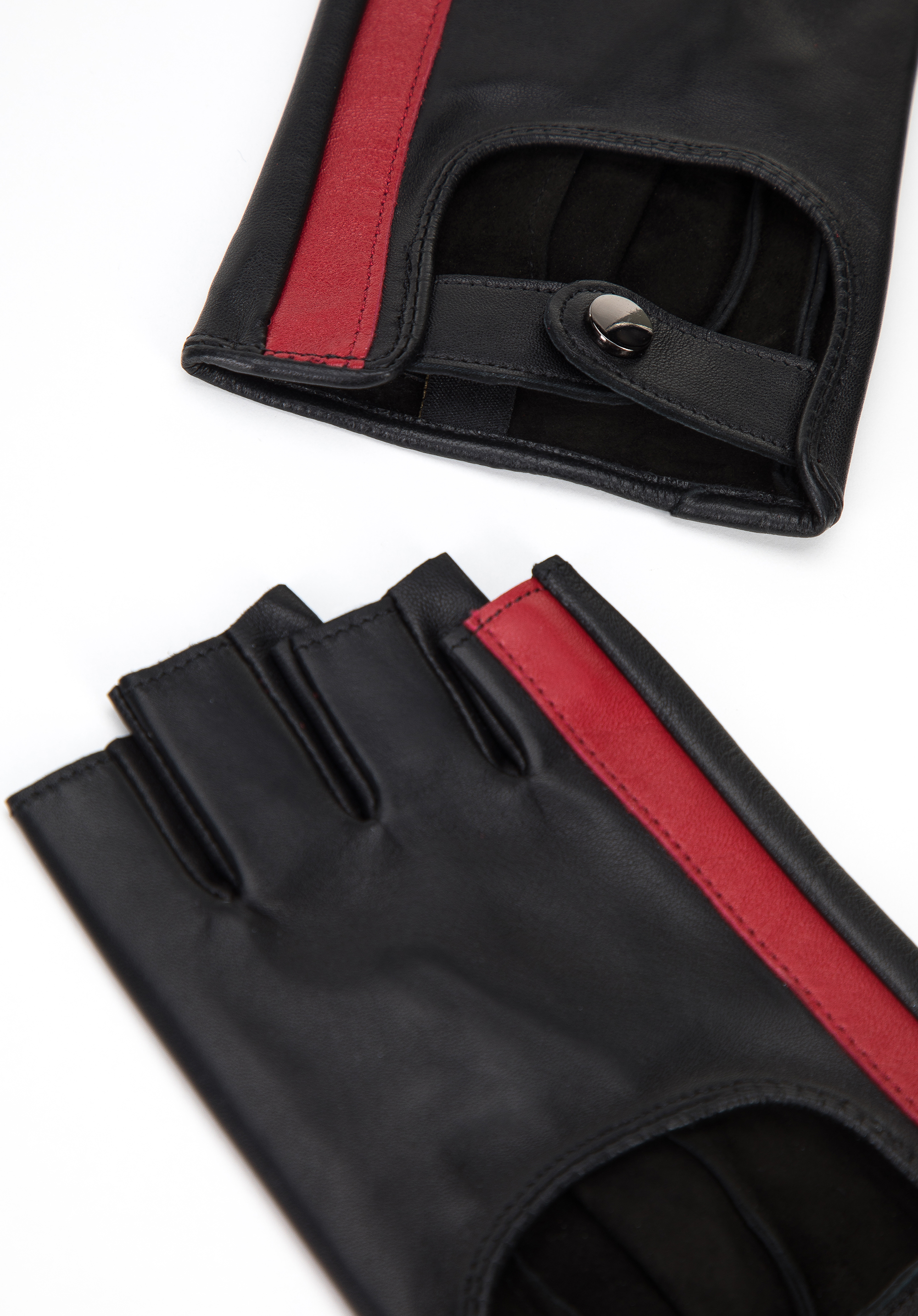 Aceste mănuși originale sunt o alegere excelentă pentru iubitorii de accesorii la modă. Designul fără degete este atât confortabil, cât și foarte elegant. Acest model din piele naturală placută este decorat cu o dungă verticală într-o culoare contrastantă, care subtiază în plus mana. În plus, închiderea cu clic le face mai ușor de pus. Mănușile pentru femei fără degete din piele, cu o curea decorativă, vor adăuga o notă de eleganță multor stiluri ale tale.