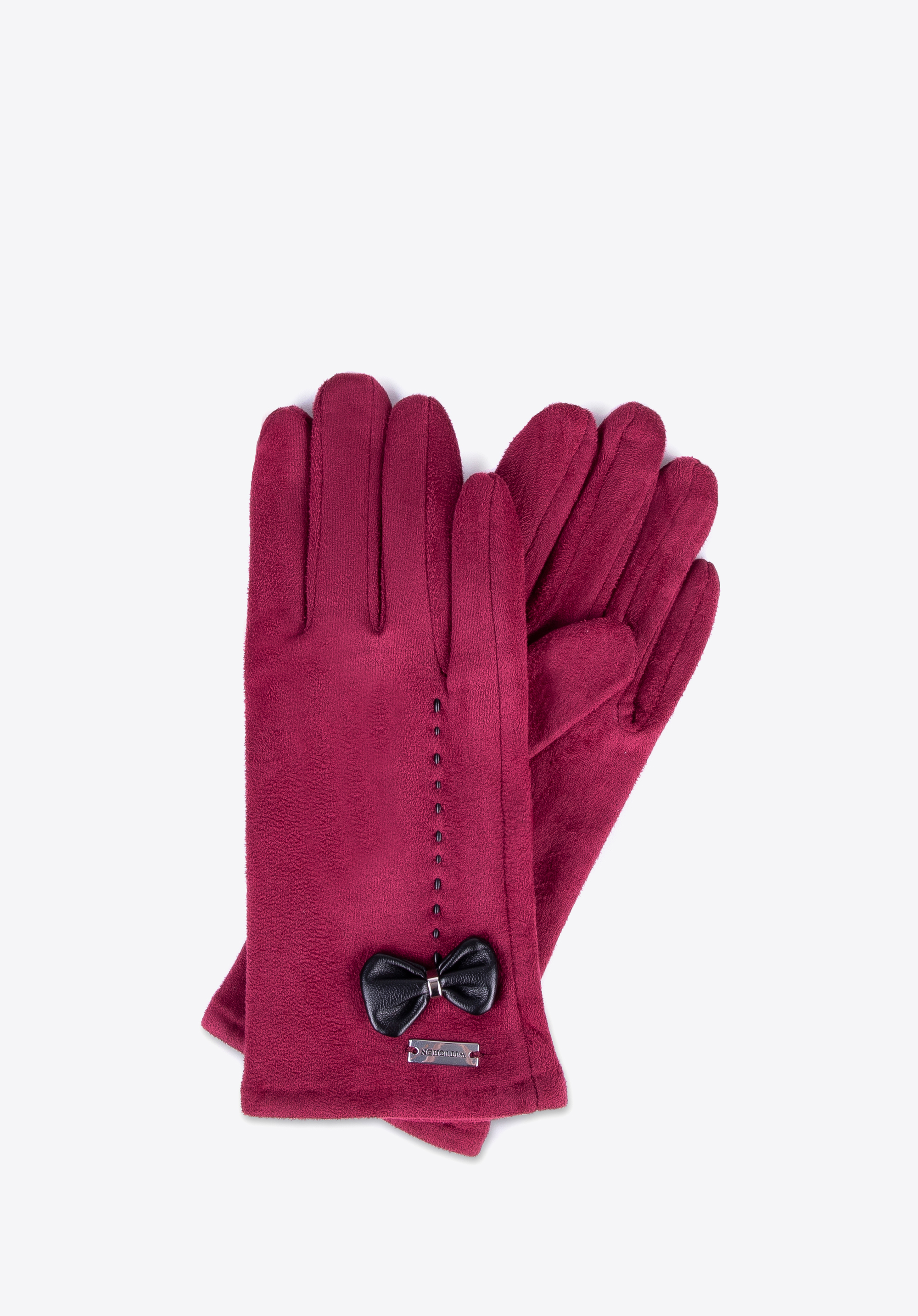 Mănuși de damă cu detalii cu fundă grena