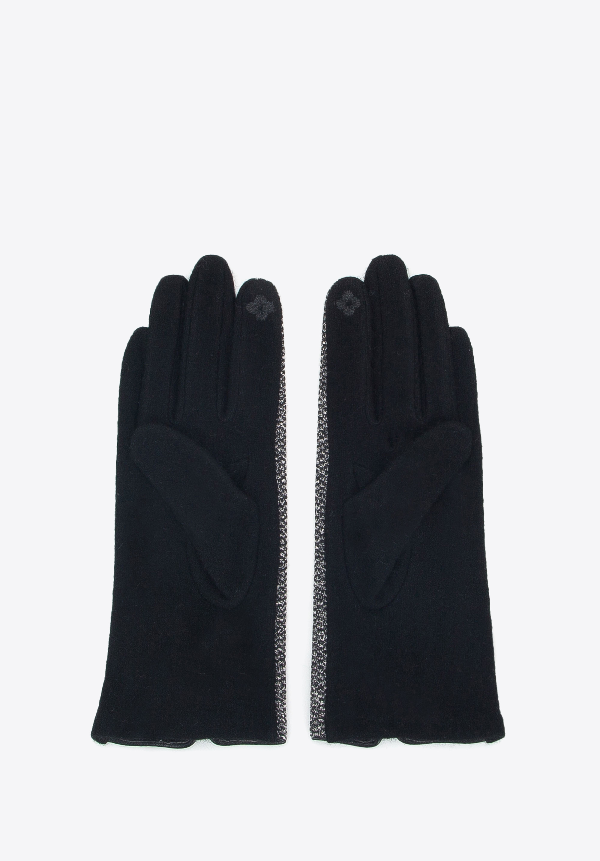 În aceste mănuși elegante veți arăta special în orice situație. Sunt confecționate din 70% lână, așa că vă vor ține mâinile calde. Un model mélange le împodobește, în timp ce o mică fundă din piele ecologică și o decupaj completează elegant aspectul. Au o broderie specială sub degetul arătător, astfel încât să puteți folosi telefonul fără a fi nevoie să scoateți mănușa. Vor arăta grozav cu o haină simplă și vor adăuga o notă elegantă unei jachete matlasate. Mănușile pentru femei cu model melange sunt un accesoriu elegant pentru orice femeie șic.
