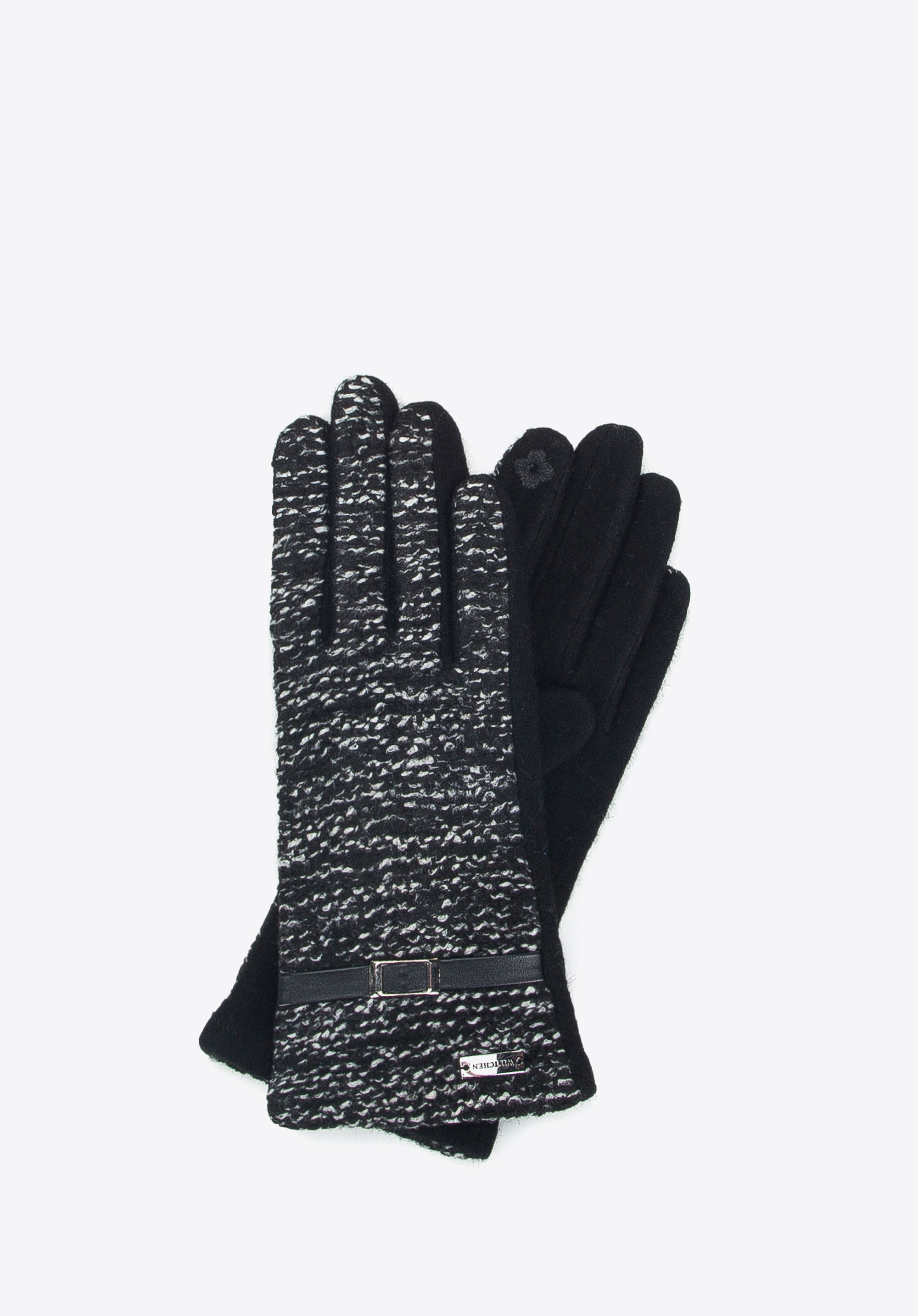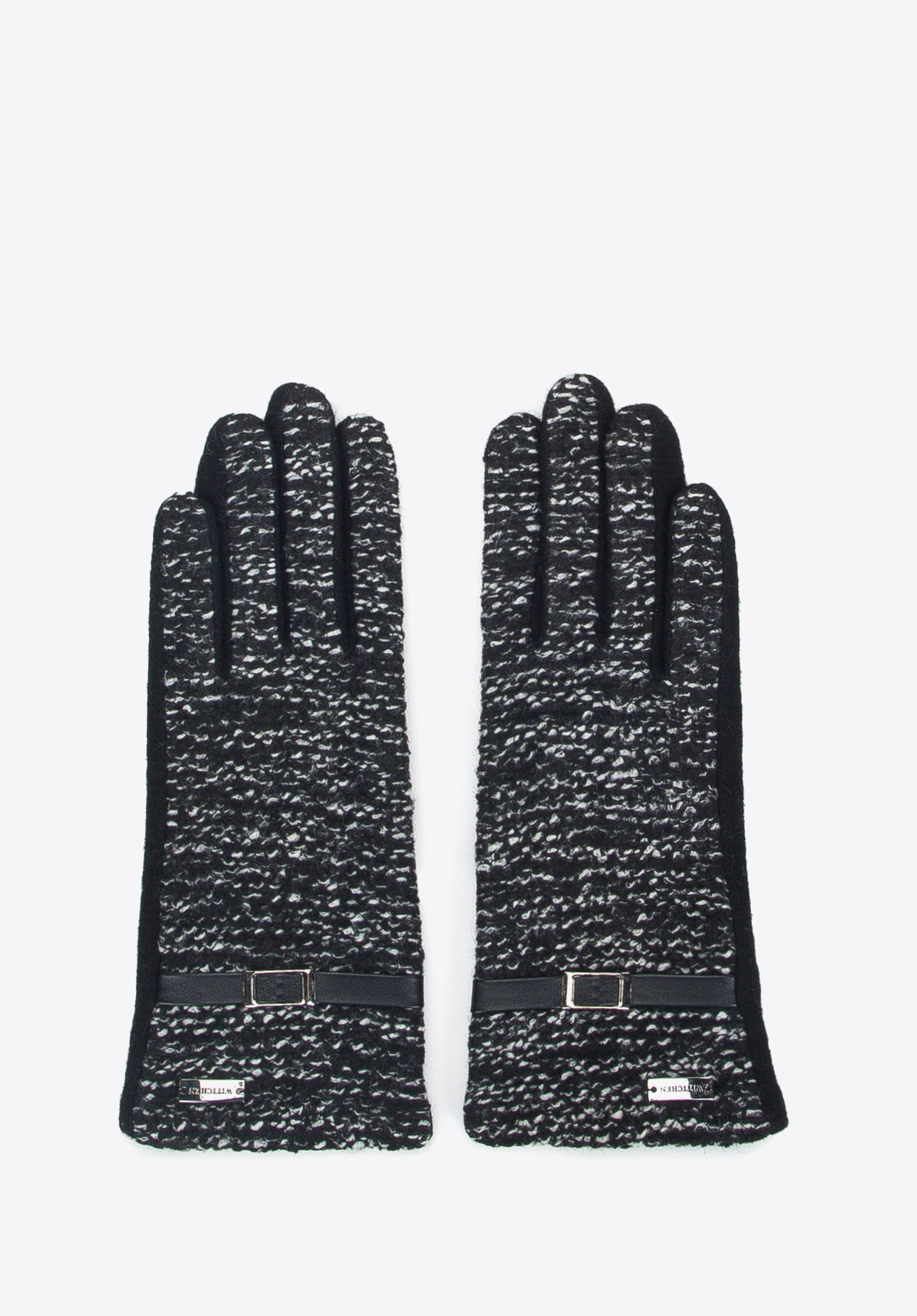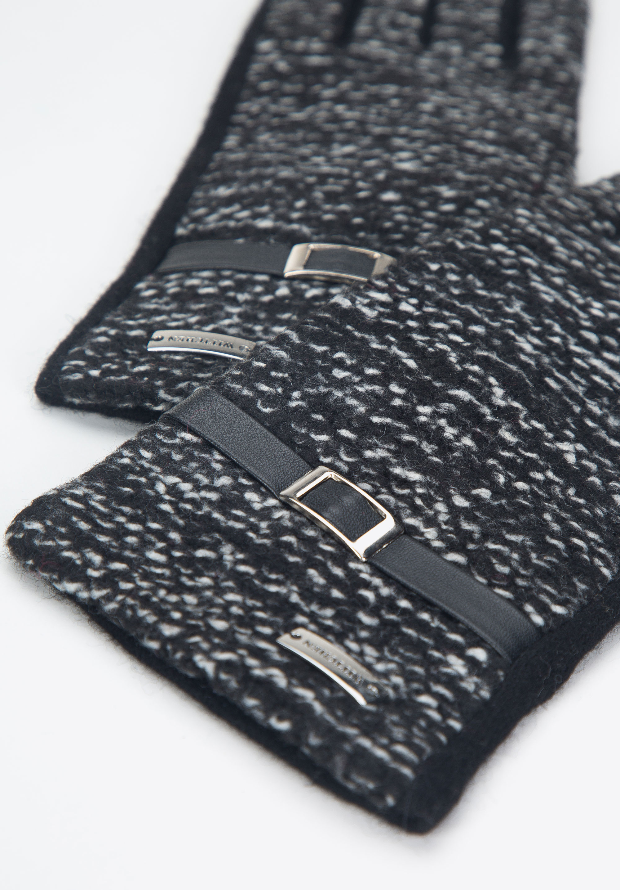 Aceste mănuși pentru femei vor completa cu eleganță orice stil al tău. Sunt confecționate din 70% lână și au partea superioară mai groasă, astfel încât vă vor ține mâinile calde. Un model care amintește de țesătura boucle și o cataramă decorativă pe cureaua din piele ecologică adaugă caracter. Purtați-i cu paltoane elegante și călduroase sau cu o jachetă de piele - veți arăta elegant în orice situație. Mănușile au o broderie specială sub degetul arătător, astfel încât să puteți folosi telefonul fără a fi nevoită să le dați jos. Mănușile din țesătură boucle pentru femei sunt un accesoriu original și o idee de cadou excelentă pentru orice femeie.