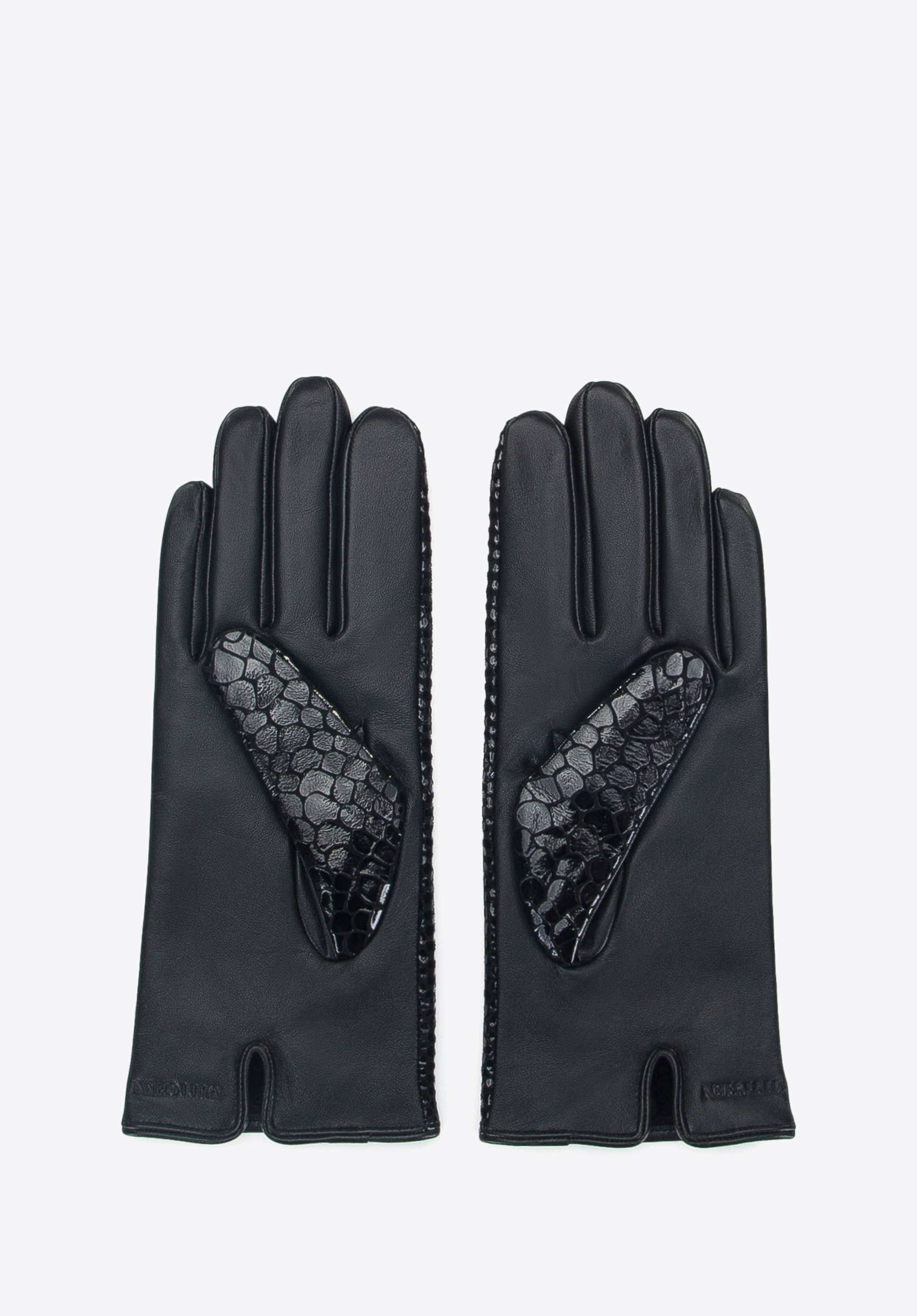 Aceste mănuși originale vor aduce un nou stil în garderoba ta. Partea din față este confecționată din piele lucioasă cu textură de crocodil, în timp ce spatele este finisat cu piele naturală netedă. Căptușeala moale vă va ține de cald în zilele mai reci. Decupajul suplimentar din interior va face ca aceste mănuși să fie ușor de îmbrăcat. Acest model va adăuga varietate hainelor simple, clasice și va arăta foarte bine și cu o jachetă de puf. Mănușile pentru femei din piele de crocodil sunt o alegere excelentă pentru iubitorii de accesorii originale.
