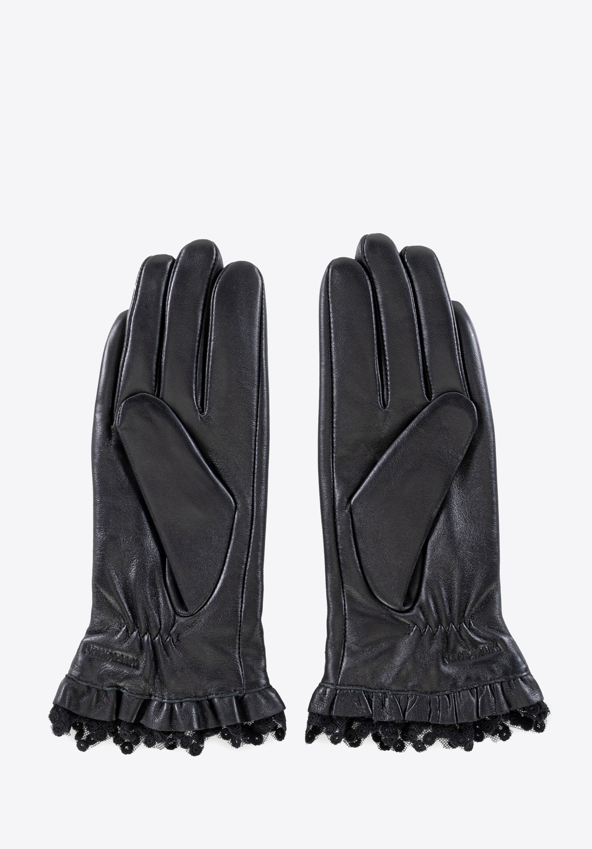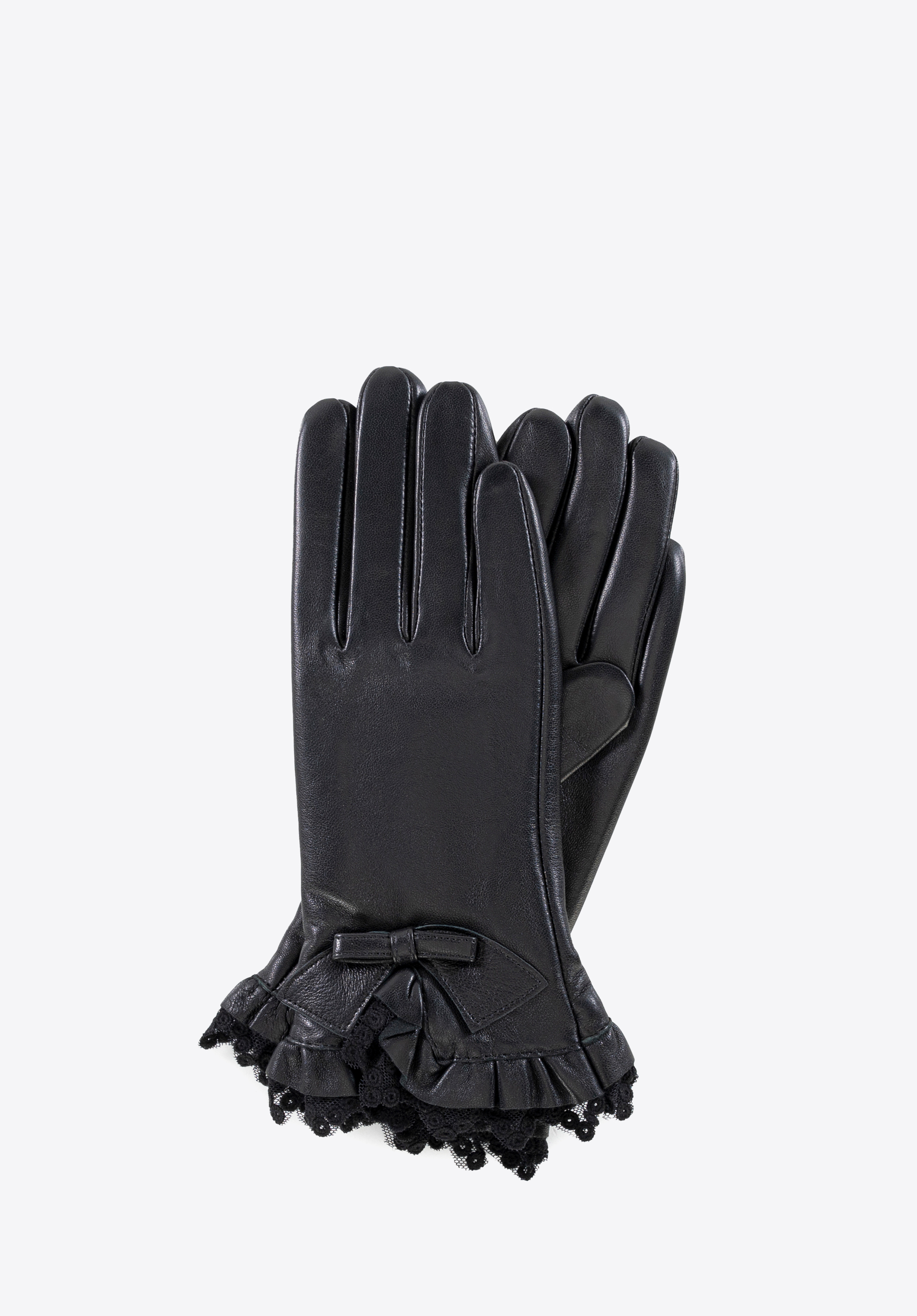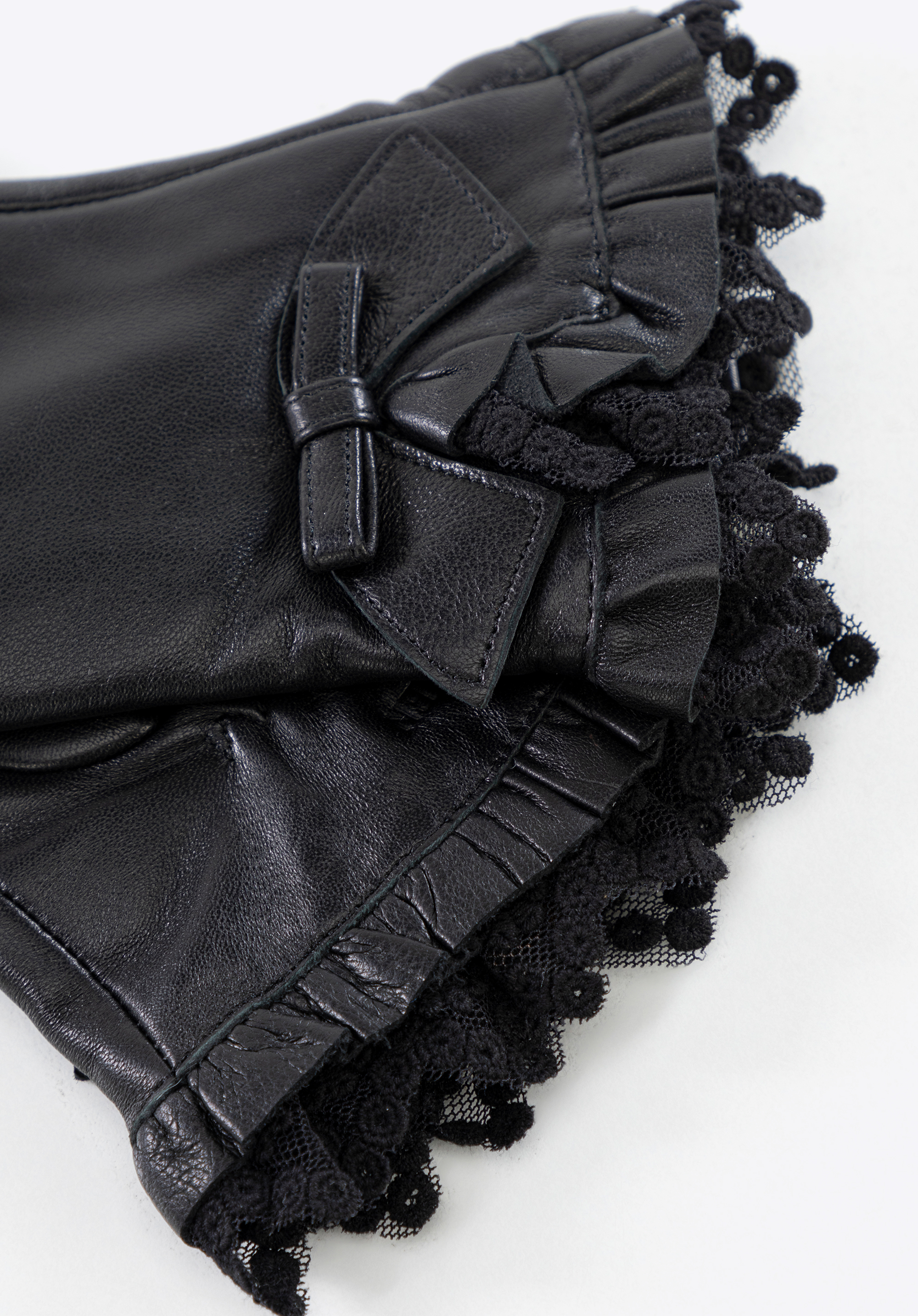 Mănuși elegante din piele cu dantelă și fundă - căldură și stil la un loc