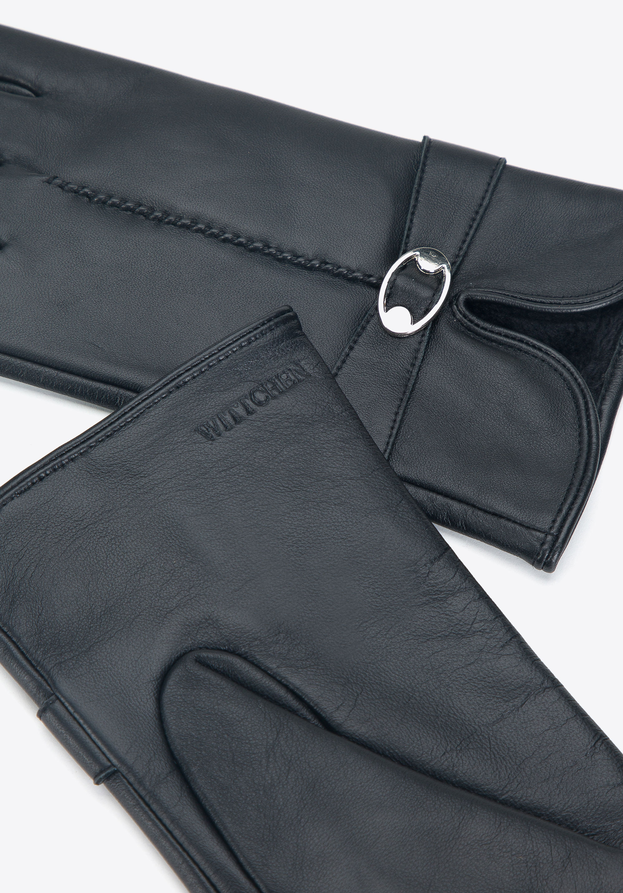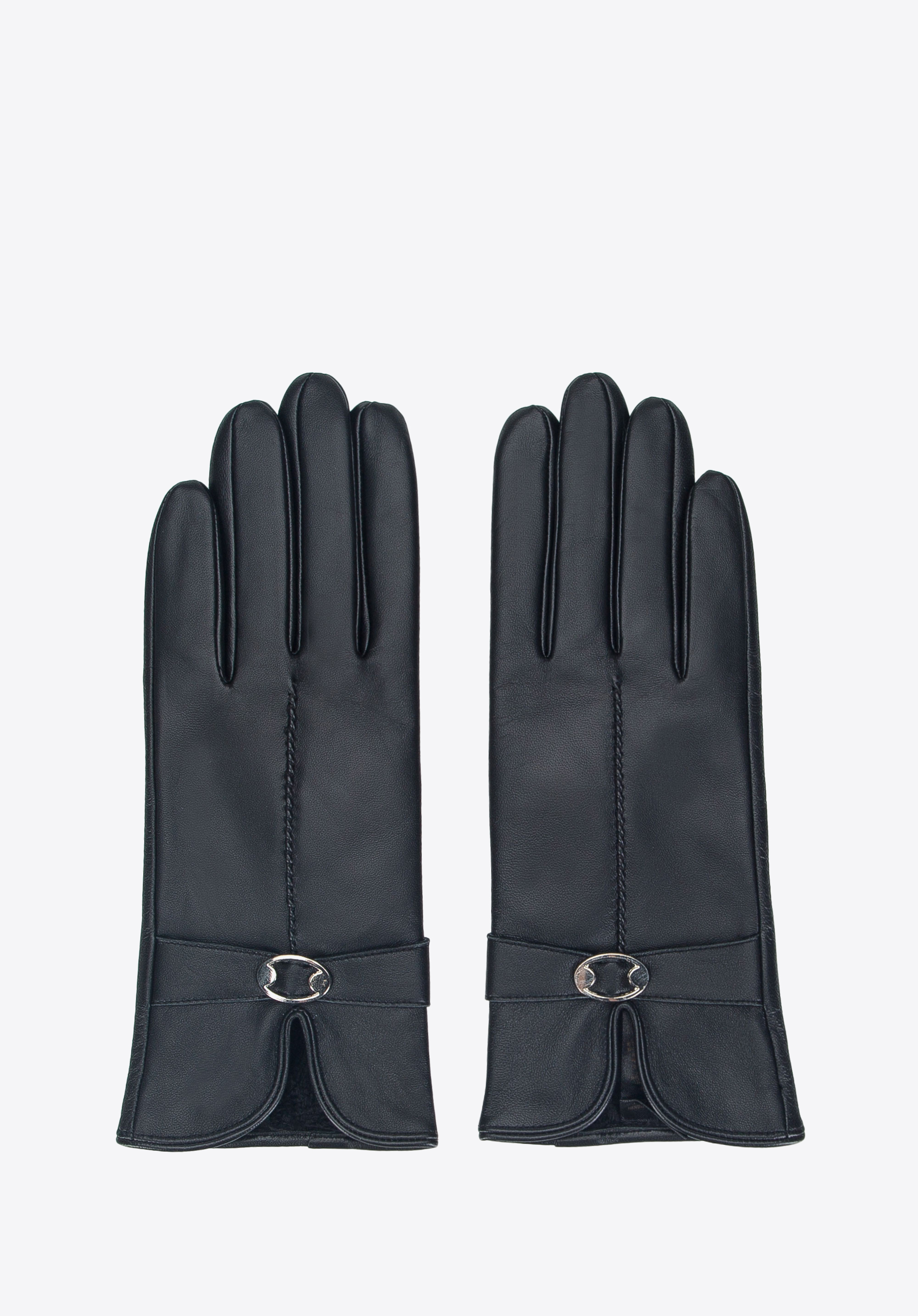 Mănuși de damă din piele cu decupaj și cataramă negru