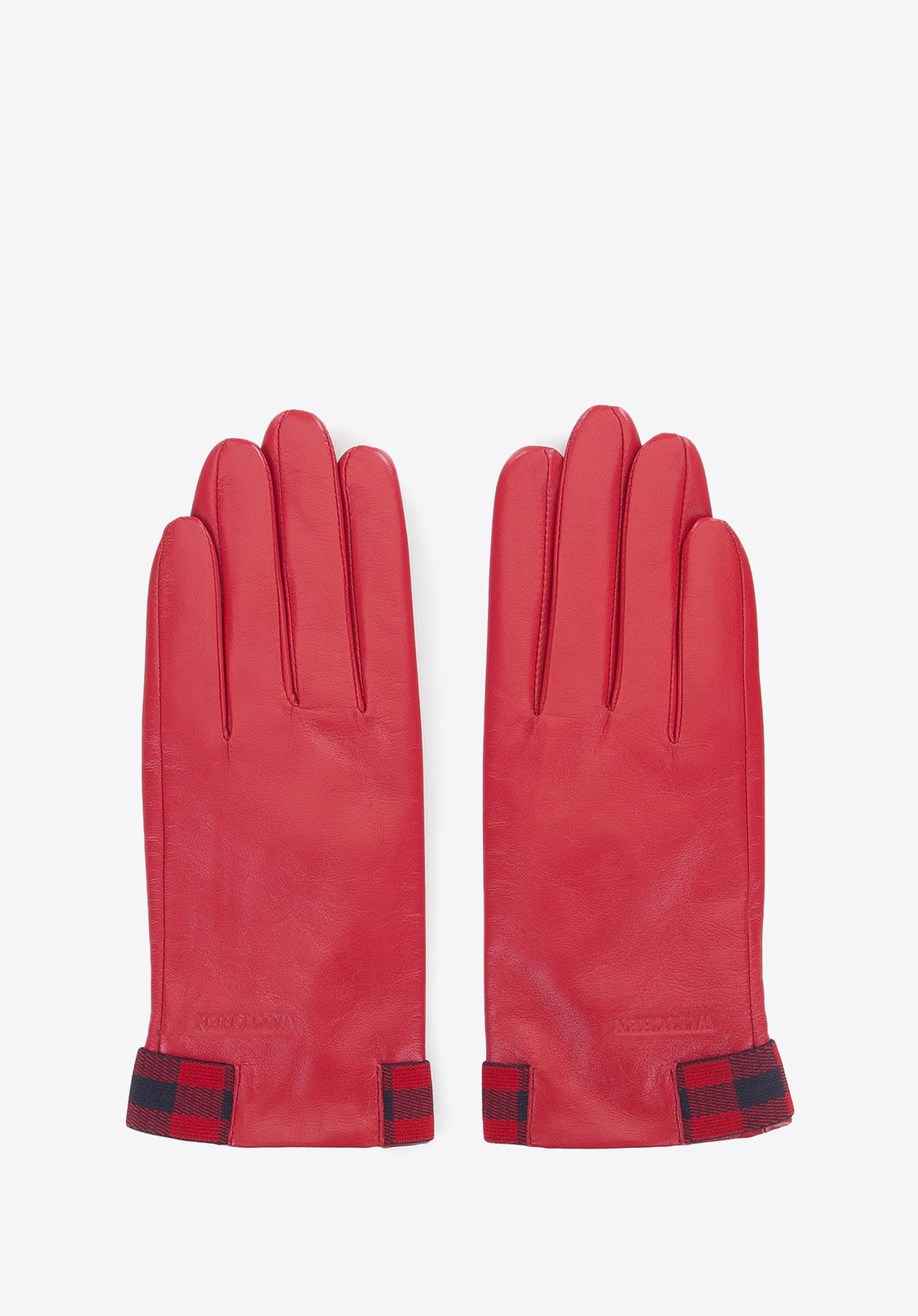 Mănuși elegante din piele naturală de înaltă calitate.La încheietura mâinii, acestea sunt finisate cu o bandă elastică elegantă în carouri .Ea le dă caracter ușor rock .De asemenea, acordați atenție uzură bine ascunsă pe partea inferioară .Datorită acesteia, vei aluneca mănușa pe mână mai eficient și se va potrivi mai strâns.Acest lucru vă va oferi o garanție de căldură chiar și în zilele cele mai reci. Mănuși de damă din piele cu inserții în carouri este un accesoriu clasic, dar caracteristic de mulți ani.