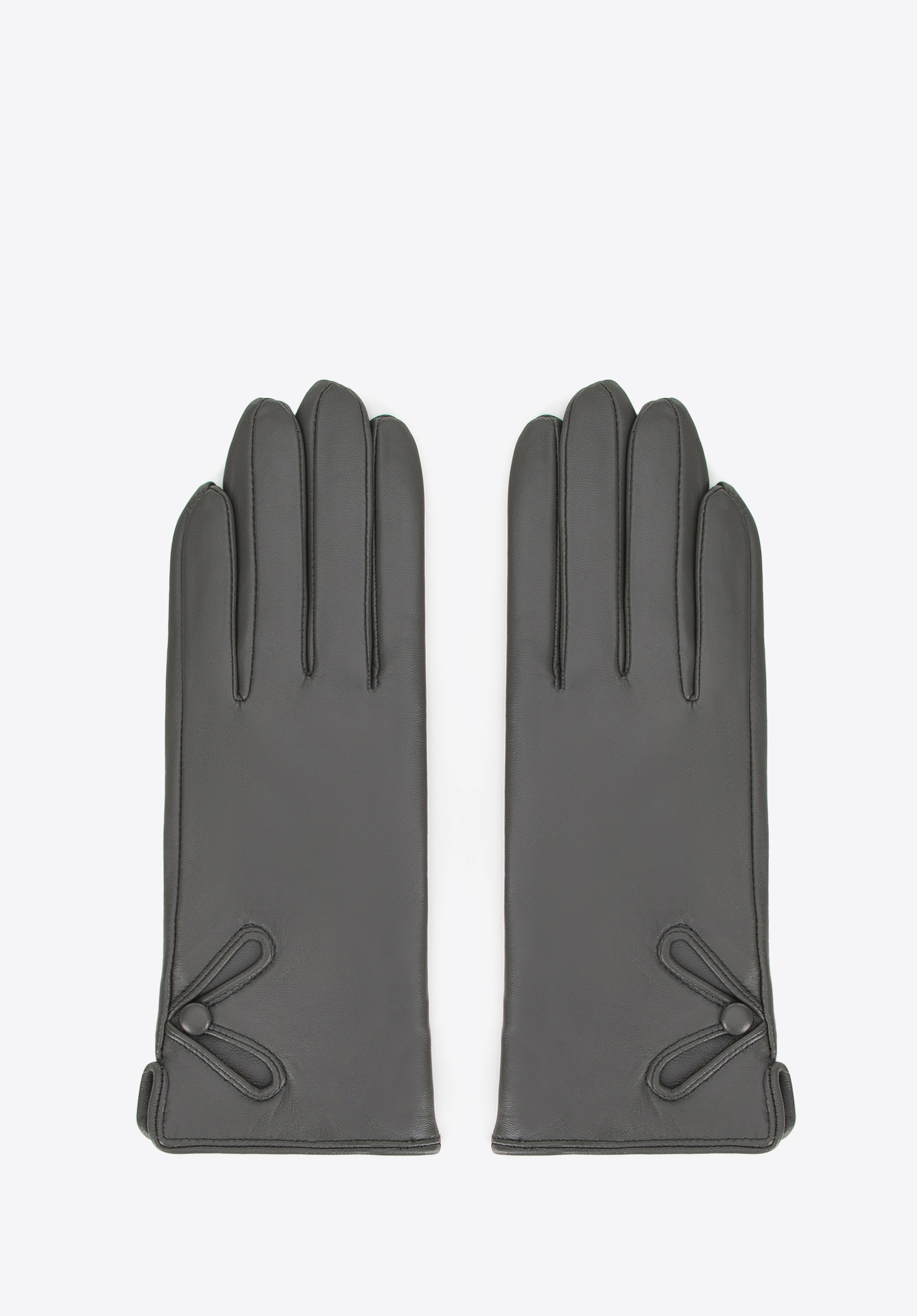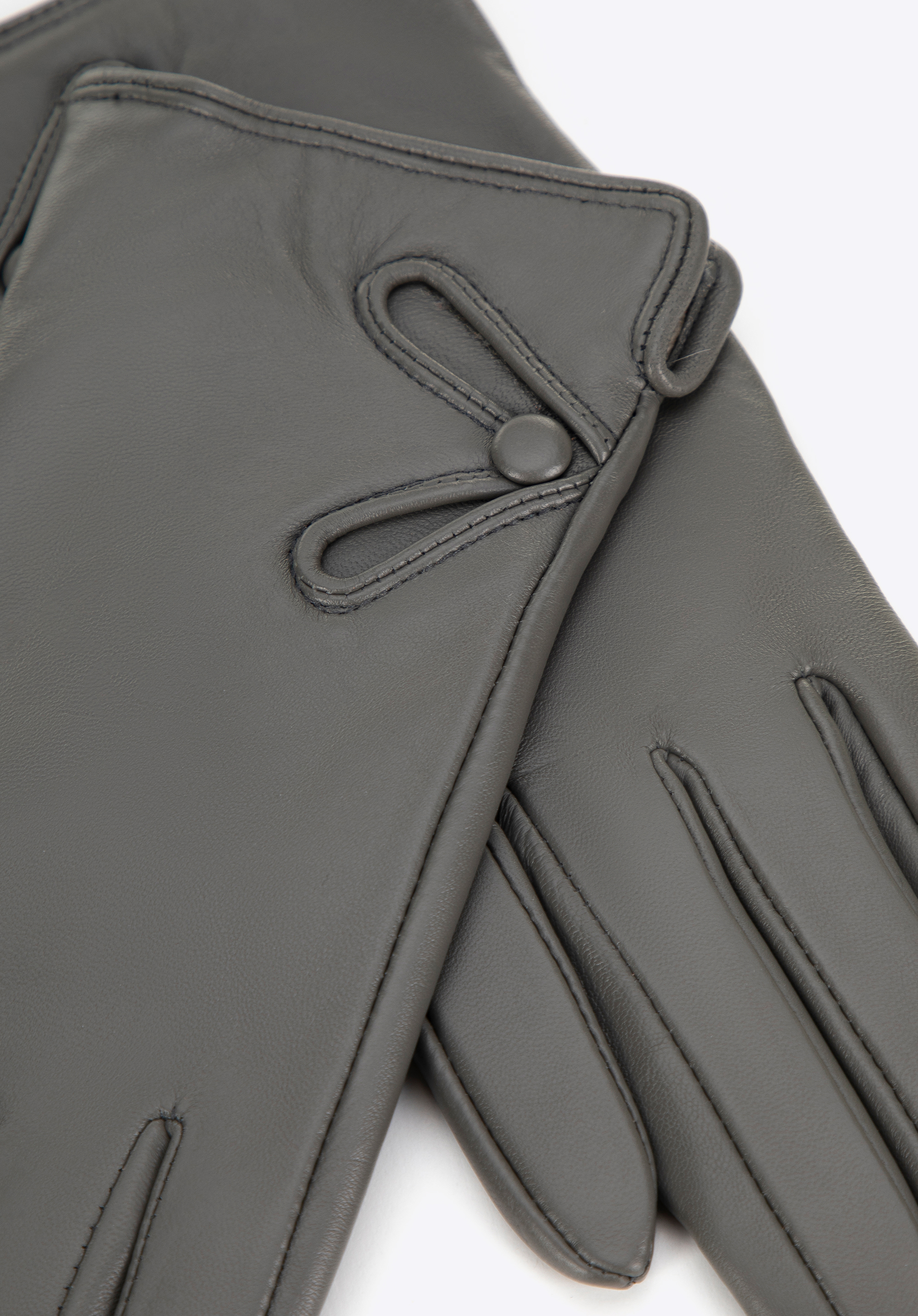 Descoperă eleganța și confortul mănușilor noastre de damă din piele naturală, care îmbină stilul clasic cu un finisaj modern. Acestea au un logo subtil, gravat, care adaugă o notă exclusivă, împreună cu cusături decorative și un buton elegant care le îmbunătățește designul elegant.