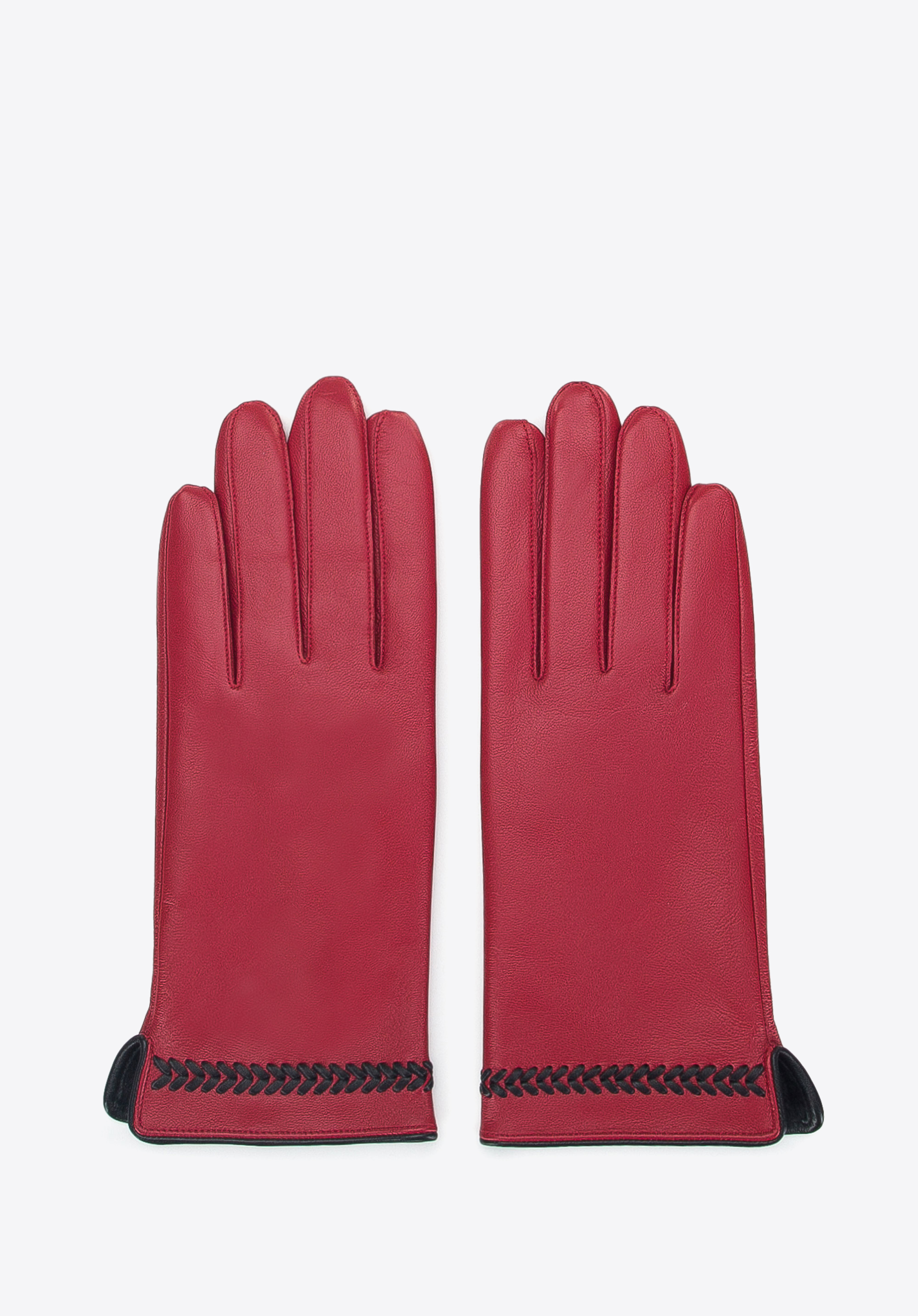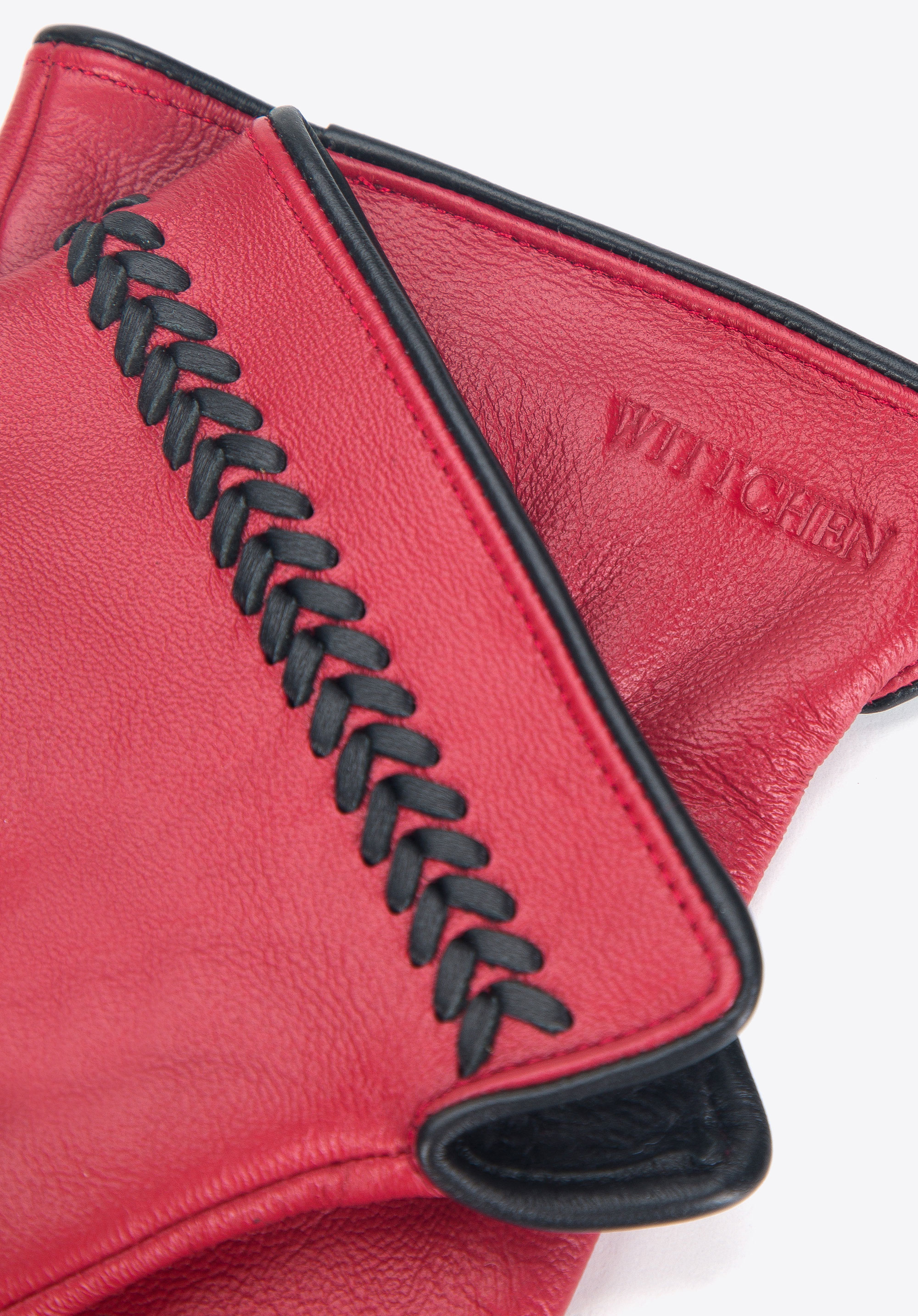 Vei arăta special în fiecare zi cu aceste mănuși elegante. Sunt confecționate din piele naturală de înaltă calitate. Sunt finisate în partea de jos cu un tiv în vârf și cu o bordură într-o culoare contrastantă pentru a adăuga caracter. Datorită căptușelii moi, vă vor ține de cald în zilele reci. Au o bandă elastică cusută pe dedesubt, astfel încât să se potrivească perfect și să fie ușor de îmbrăcat. Mănușile din piele pentru femei cu tivul în vârf sunt o alegere excelentă atât pentru o haină elegantă, cât și pentru o jachetă din piele.