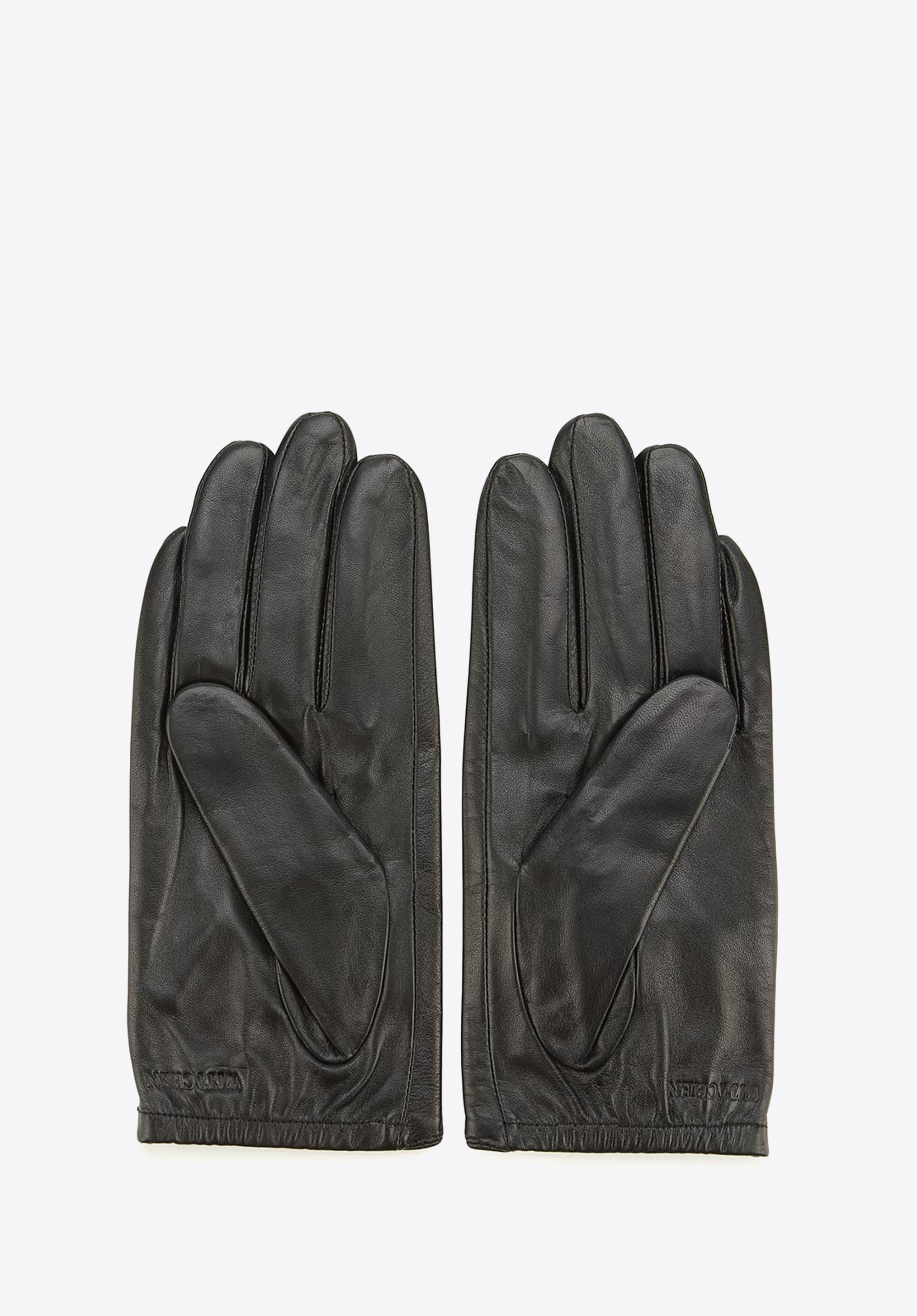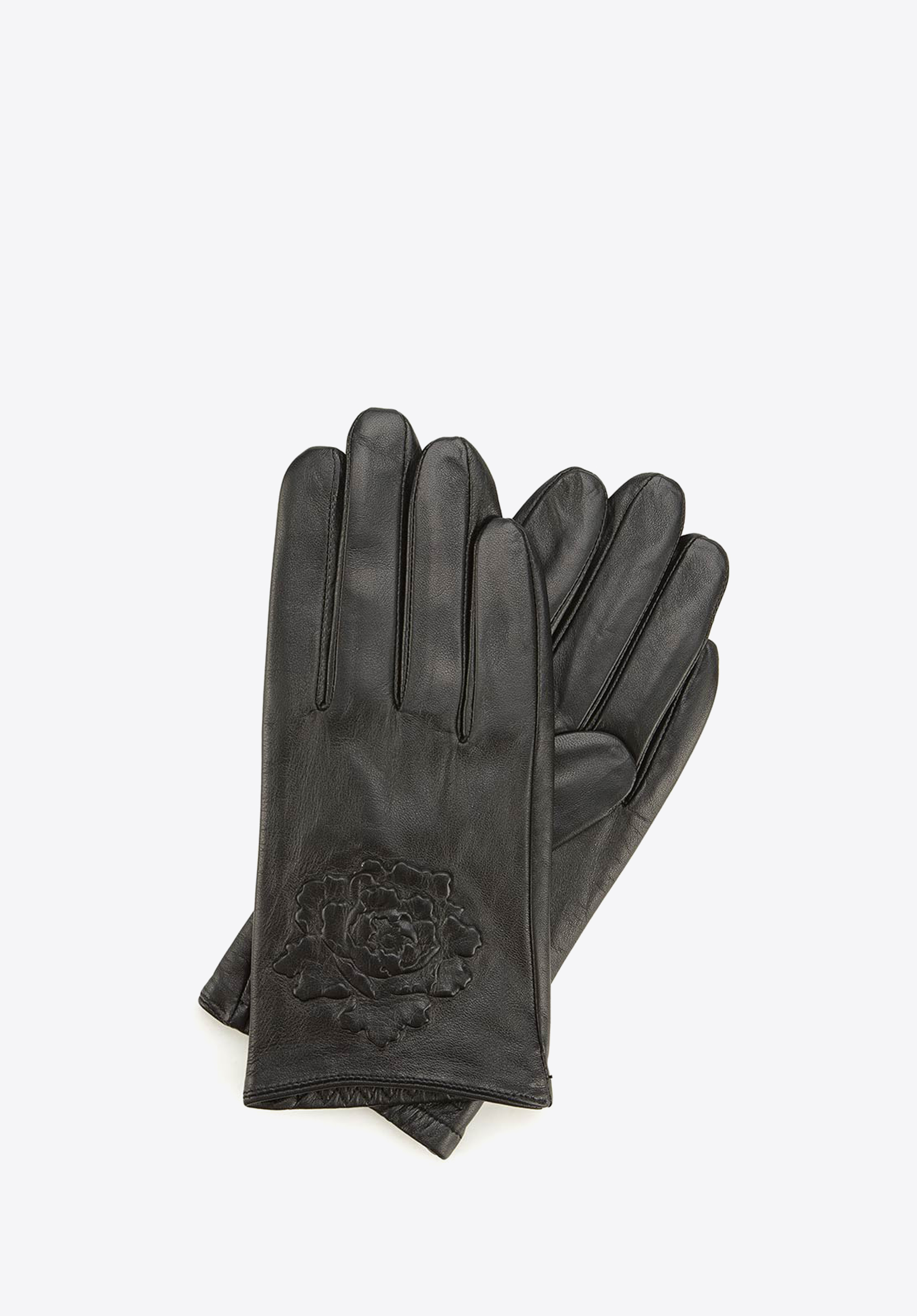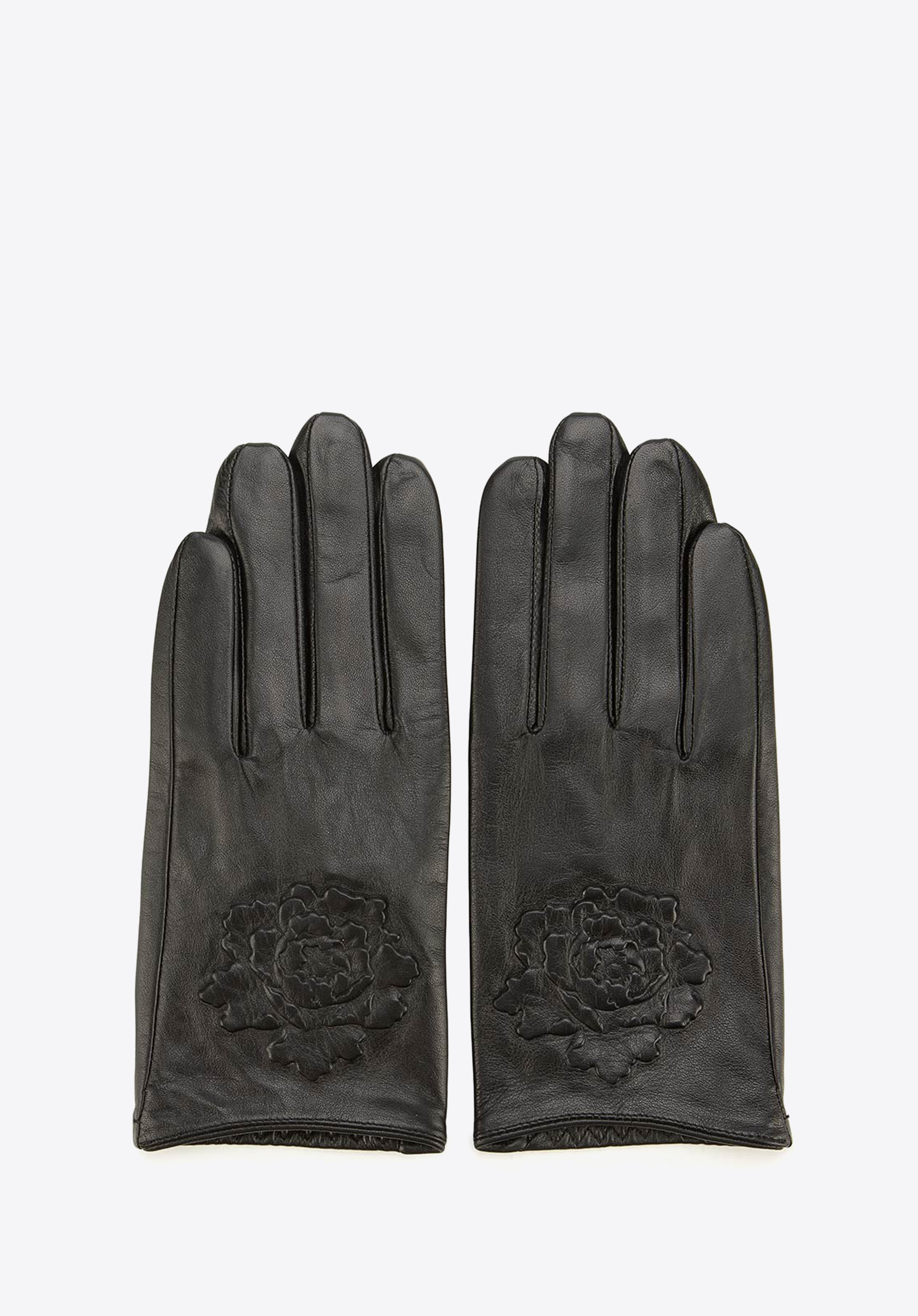 Mănuși de damă din piele cu un trandafir embosat negru