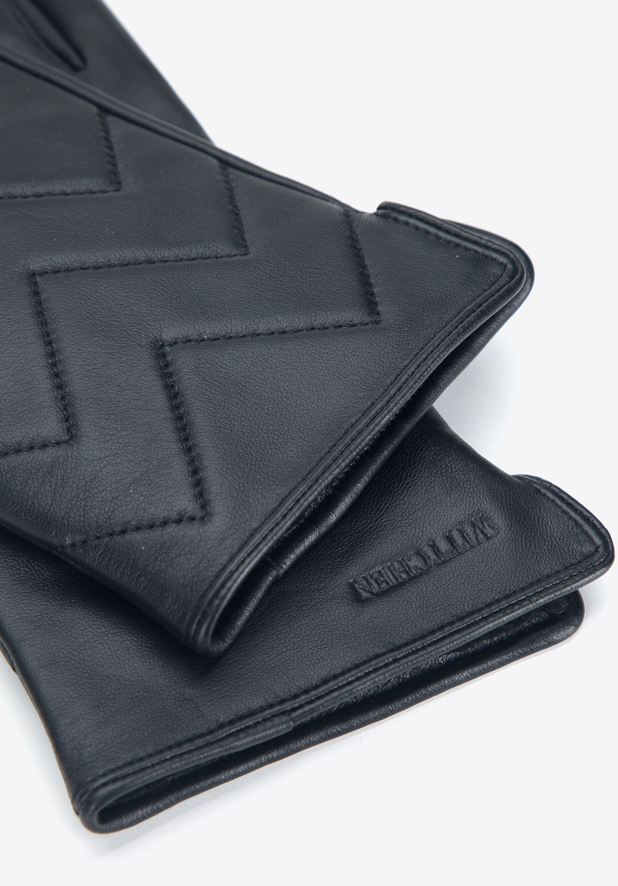 Aceste mănuși pentru femei sunt un accesoriu elegant pentru toamnă și iarnă. Au fost confecționate din piele naturală de calitate superioară. Matlasarea în zigzag le decorează și le face foarte plăcute la atingere. Datorită căptușelii moi, vor fi ușor de purtat și vă vor ține de cald în zilele mai reci. Sunt destul de versatili, vor arăta foarte bine atât cu un palton elegant, cât și cu o jachetă matlasată. Mănușile din piele matlasată în zigzag pentru femei sunt o alegere excelentă pentru orice femeie modernă.