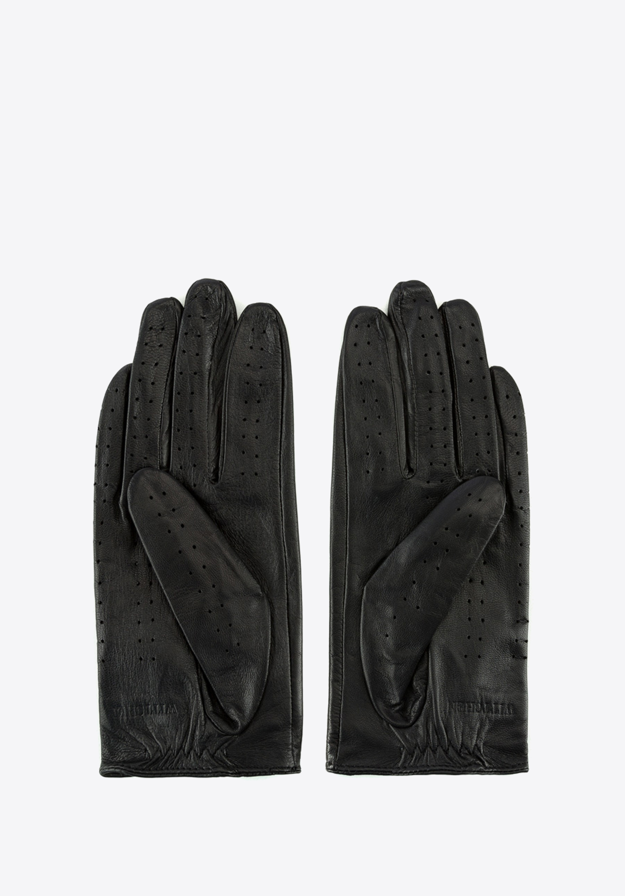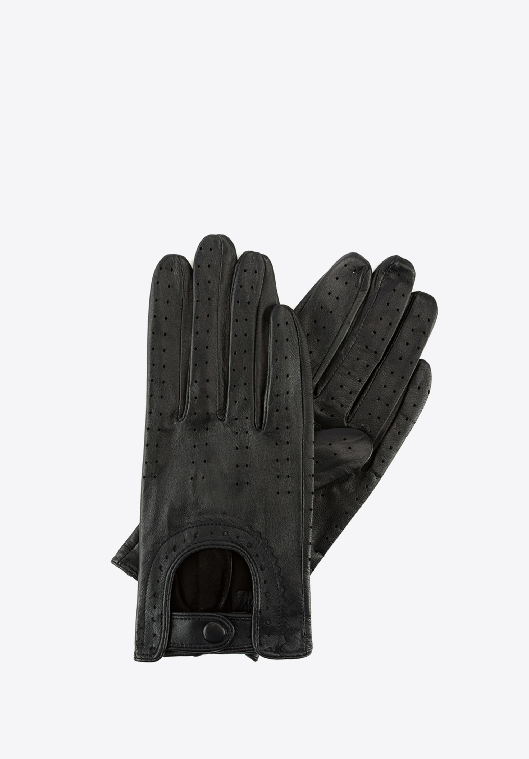 Mănuși de conducere pentru femei, decorate cu perforații originale, confecționate din piele de oaie de cea mai înaltă calitate, cu atenție la fiecare detaliu. Aceste mănuși elegante și practice au un sistem de închidere cu capse pentru a fi ușor de îmbrăcat și un aspect foarte feminin, ceea ce le face un accesoriu excelent pentru multe ținute feminine.