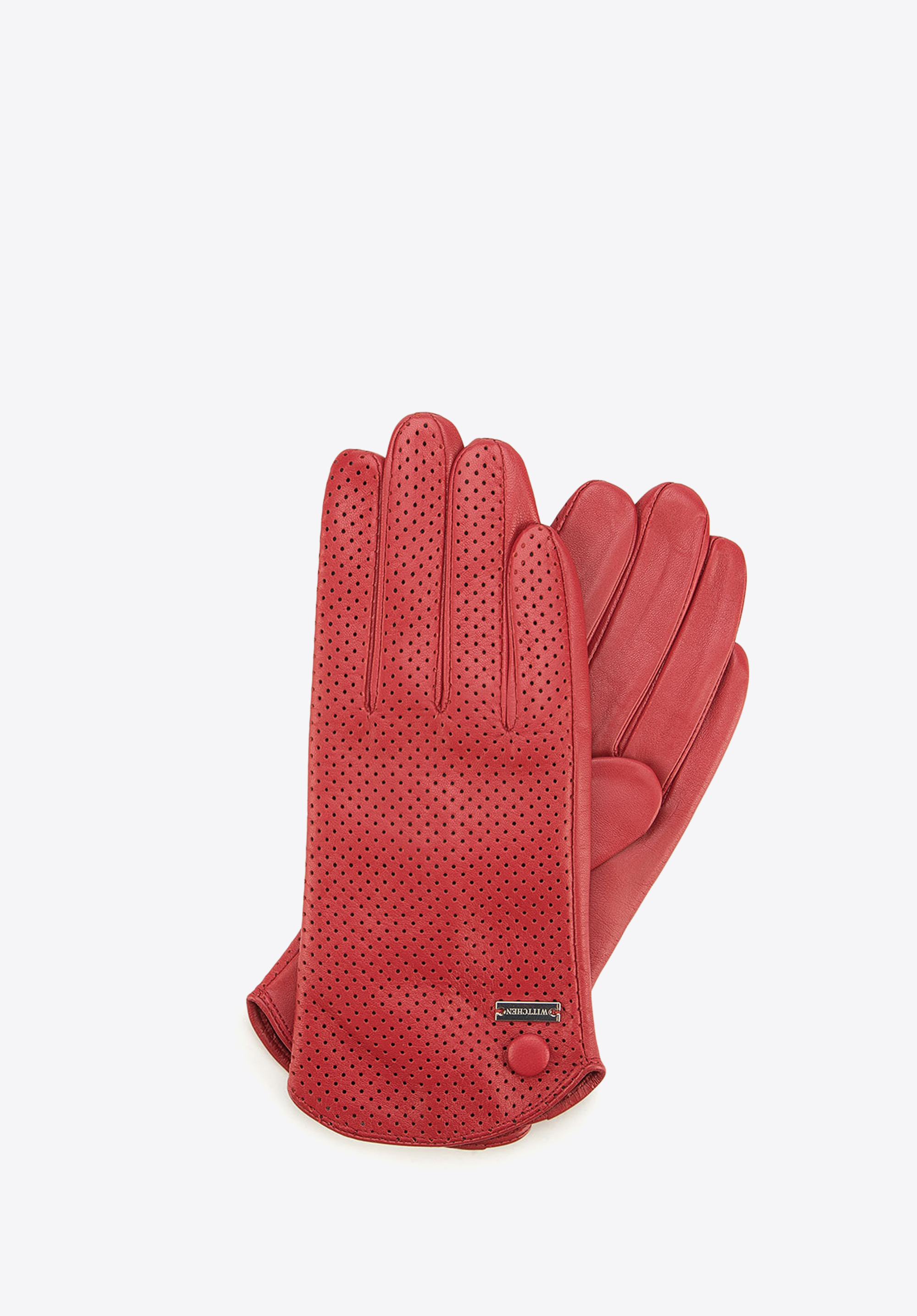 mănuși neizolante de damăconfectionat din piele de oaie de cea mai buna calitate.Detalii - un motiv ajurat și un nasture decorativ - arată foarte feminin.Mâinile vor arăta subțiri și atractive în aceste mănuși elegante.