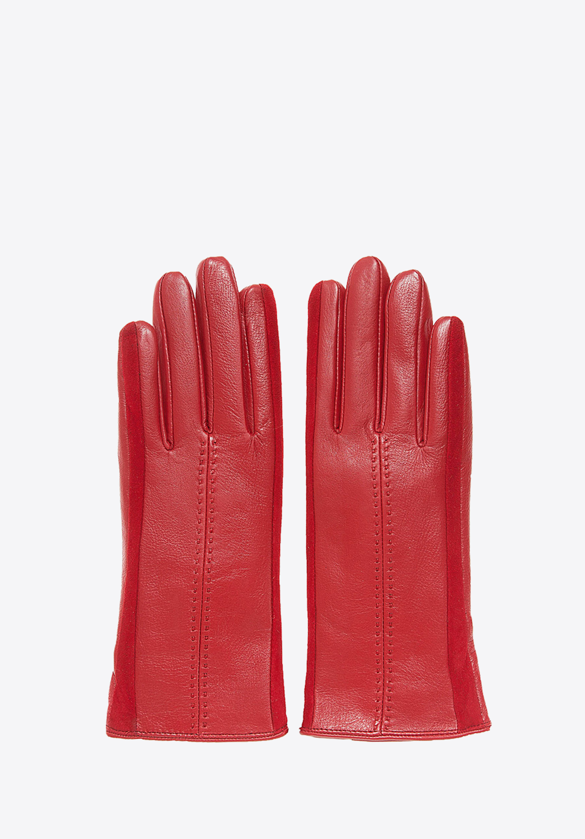 Mănuși calde de damă, din piele de oaie de cea mai bună calitate.Datorită cauciucului elastic cusut din partea interioară, mănușile se vor adapta la forma mâinii.Acest model este o combinație perfectă de clasic și eleganță.Mănușile cu două inserții de piele întoarsă pe laterale și o cusătură delicată în ax vor arăta deosebit de frumoase cu multe seturi clasice.