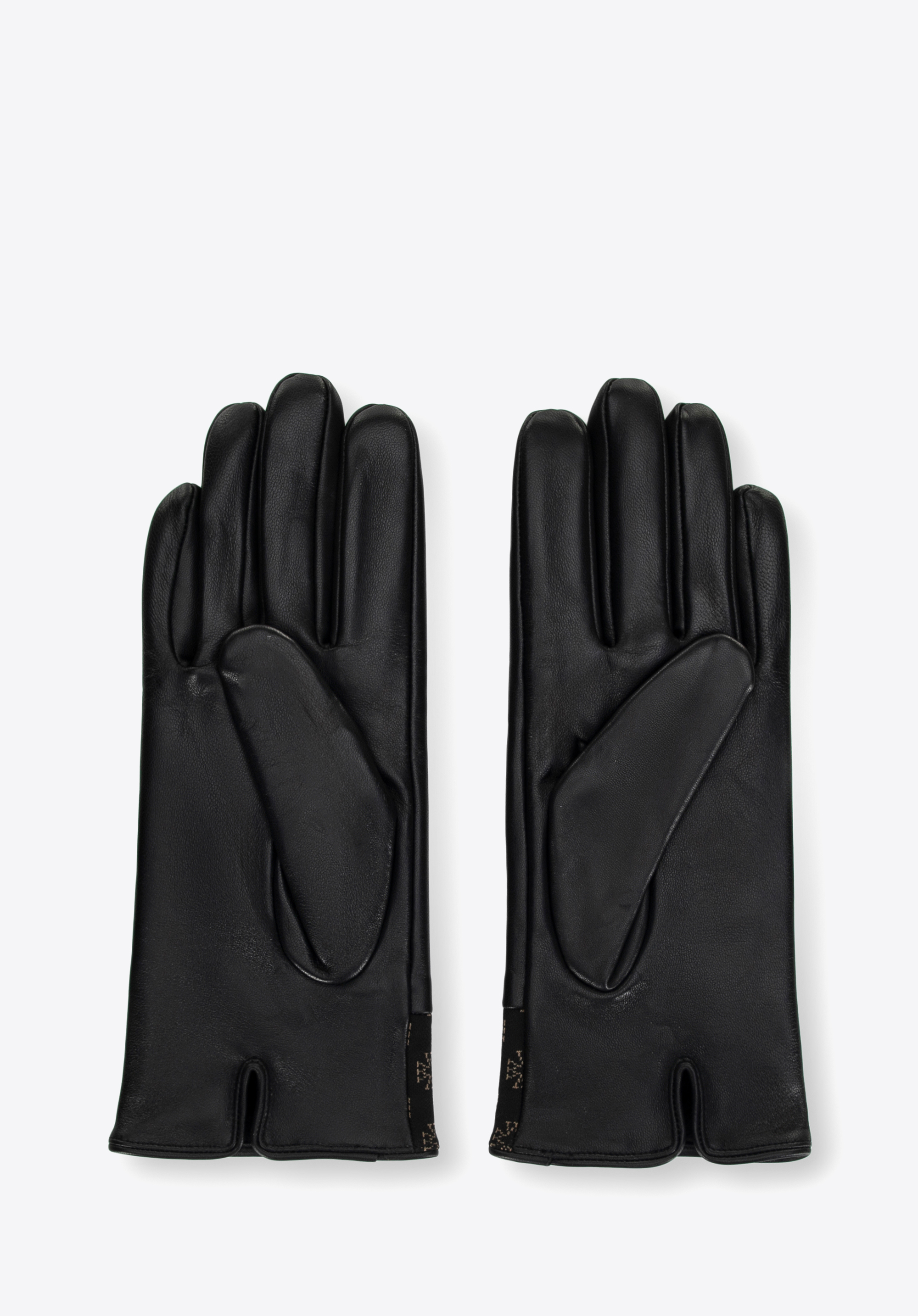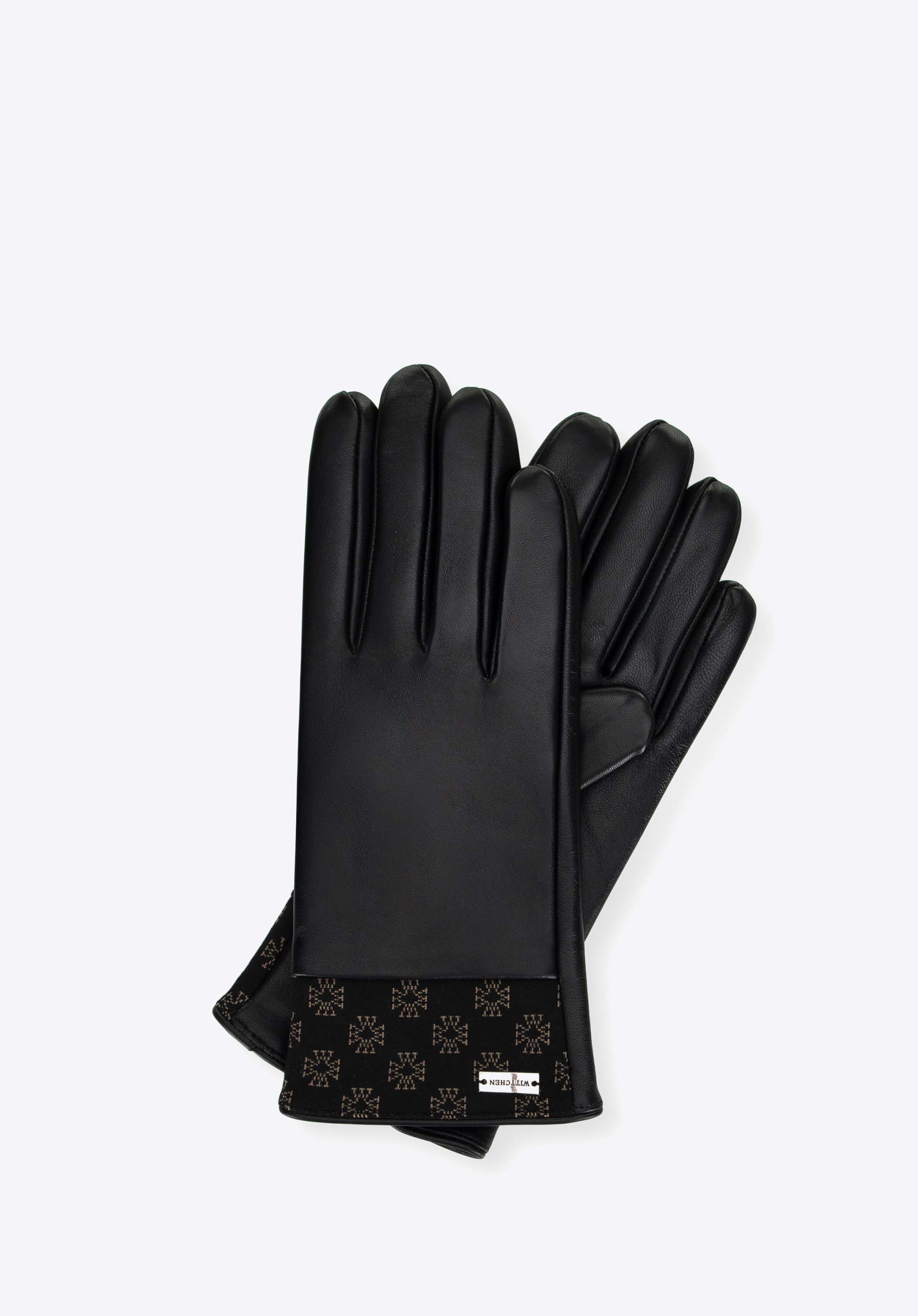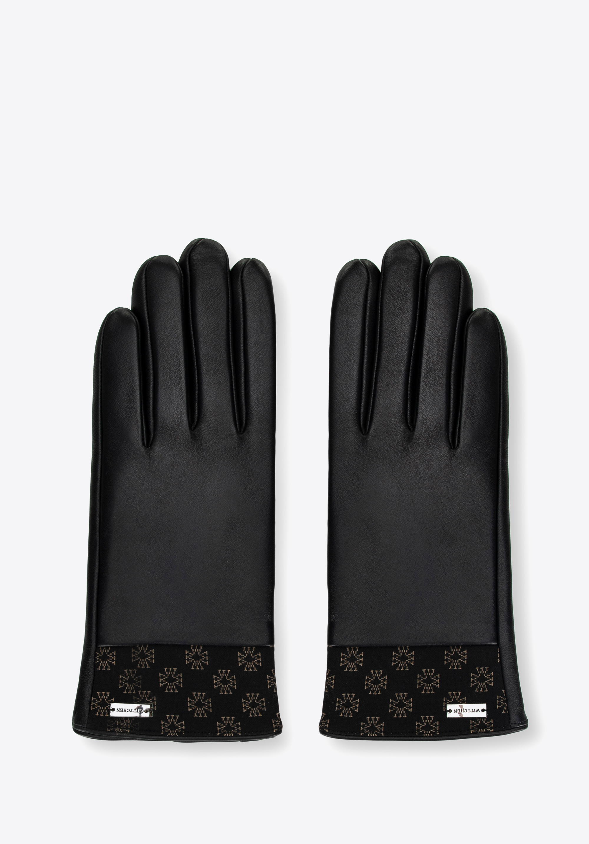 Mănuși de piele de damă cu ornamente cu monogramă Culoare: negru