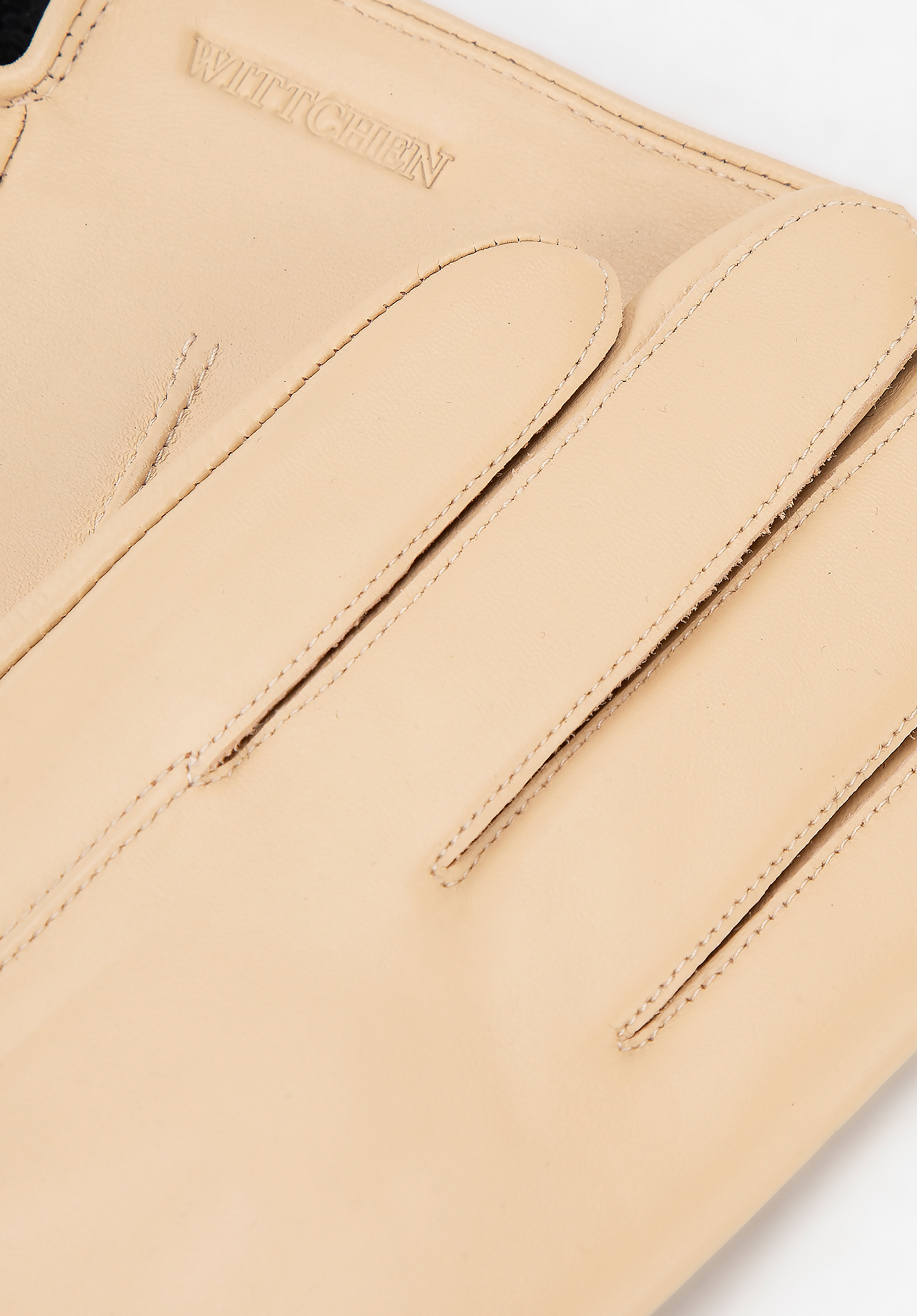 Aceste mănuși elegante de damă, realizate din piele de oaie de înaltă calitate, sunt alegerea perfectă pentru zilele reci. Pielea netedă nu numai că arată elegantă, ci și moale la atingere. Cu un interior izolat realizat cu grijă, aceste mănuși oferă confort și căldură excepționale, chiar și în zilele cele mai reci. Logo-ul subtil în relief adaugă o notă de lux discretă, dar vizibilă, evidențiind atenția la detalii și măiestria de calitate.