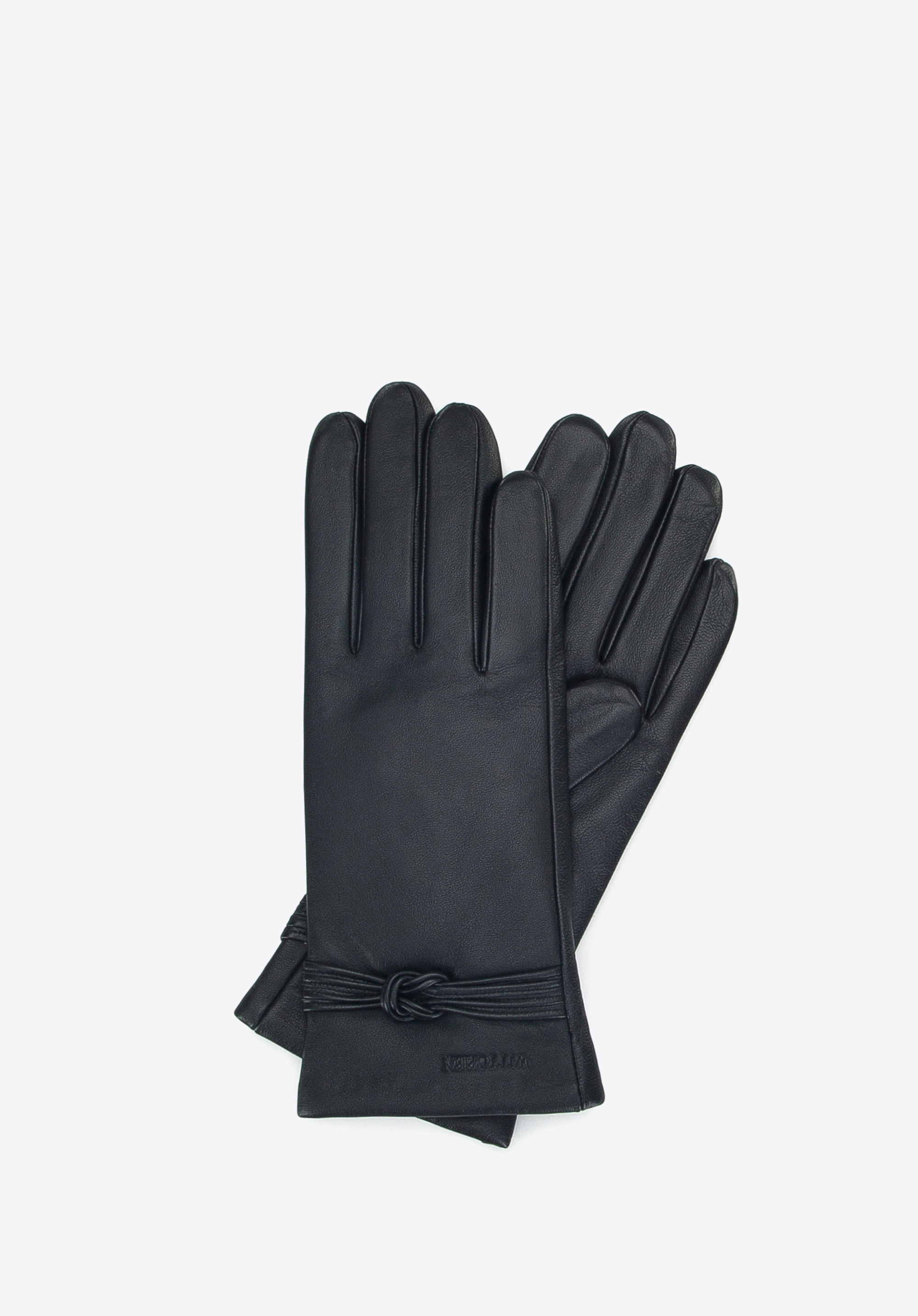 Mănuși de piele pentru femei cu nod Culoare: negru