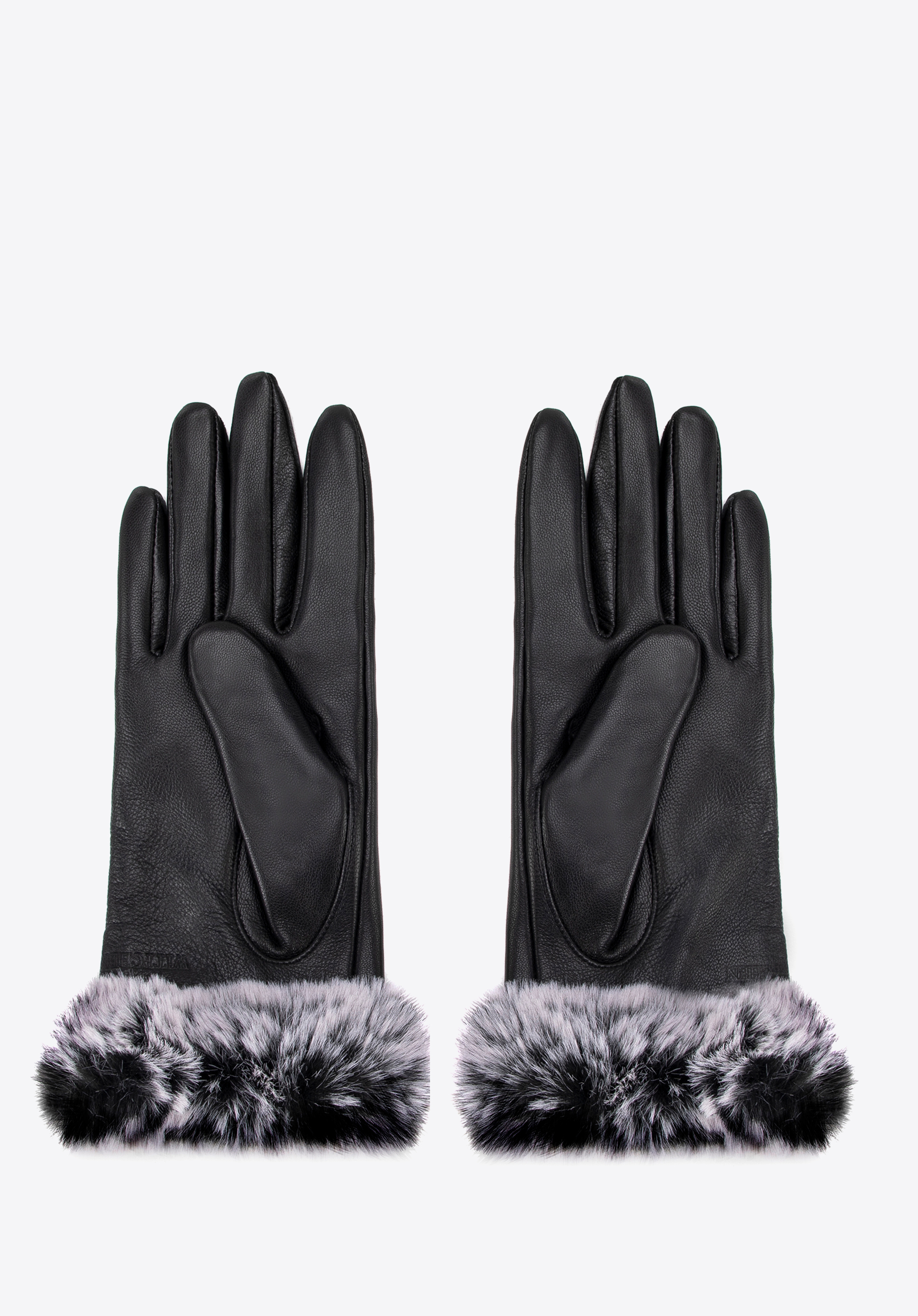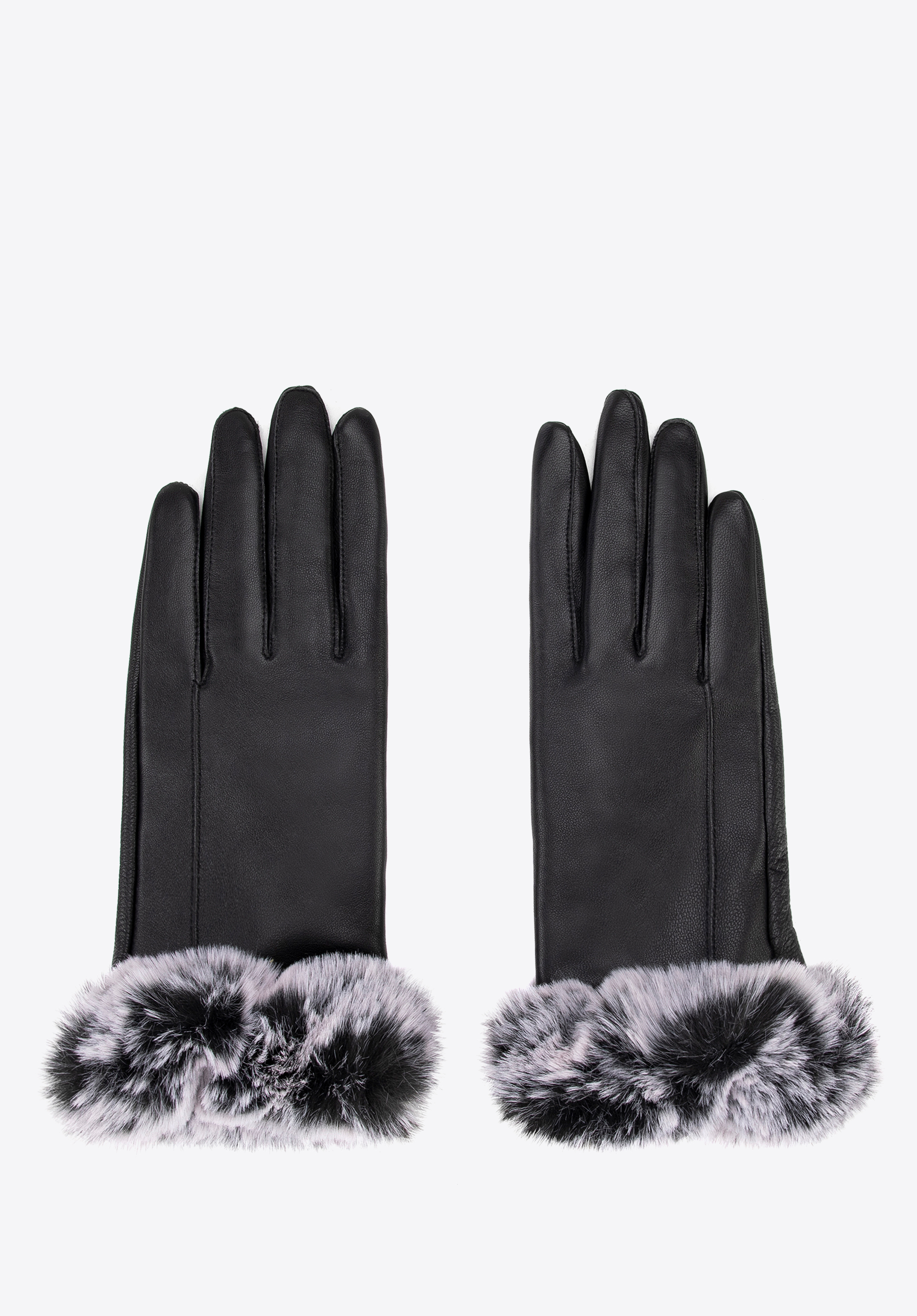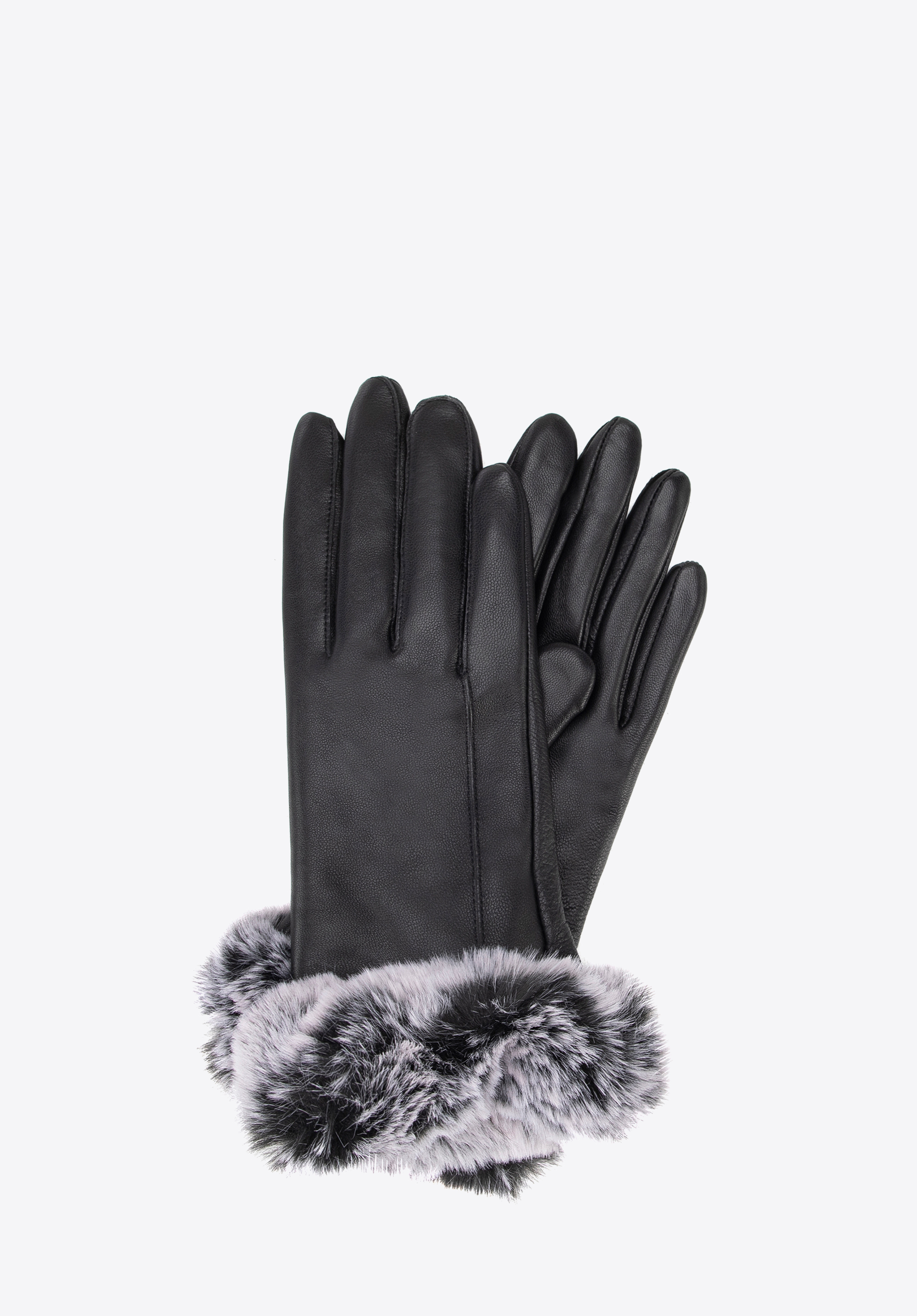 Mănuși din piele pentru femei cu blană artificială Culoare: negru