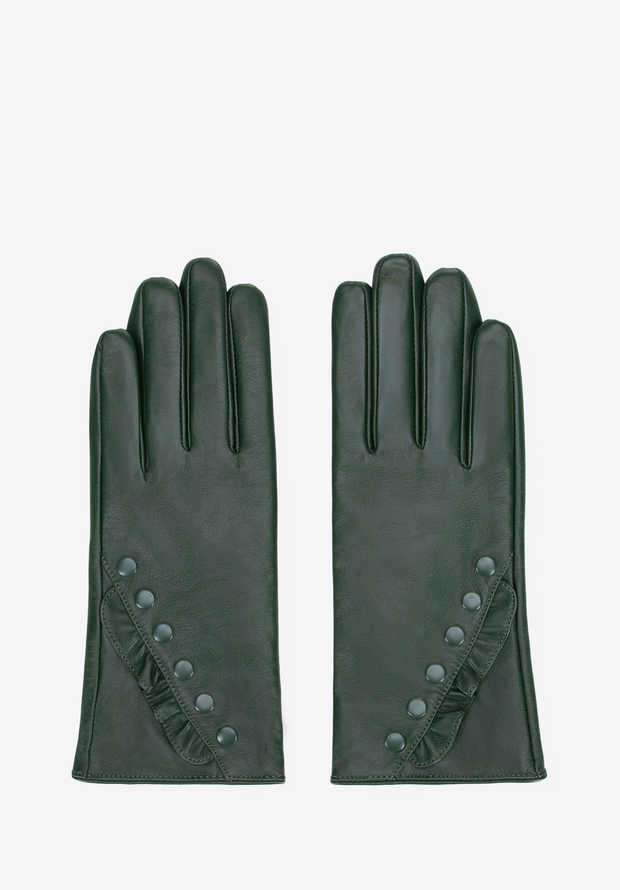 Mănuși din piele pentru femei cu detalii decorative Culoare: verde închis