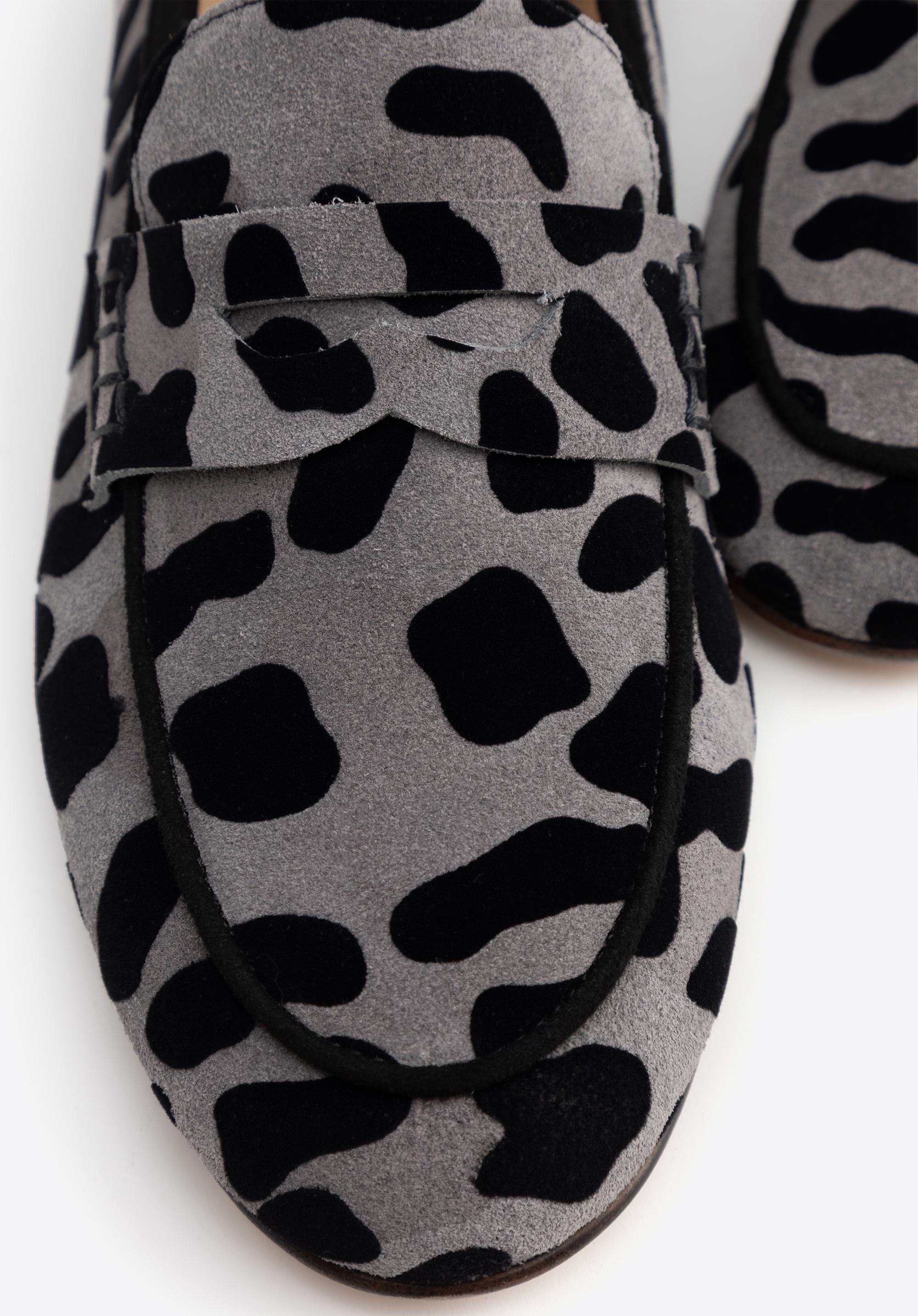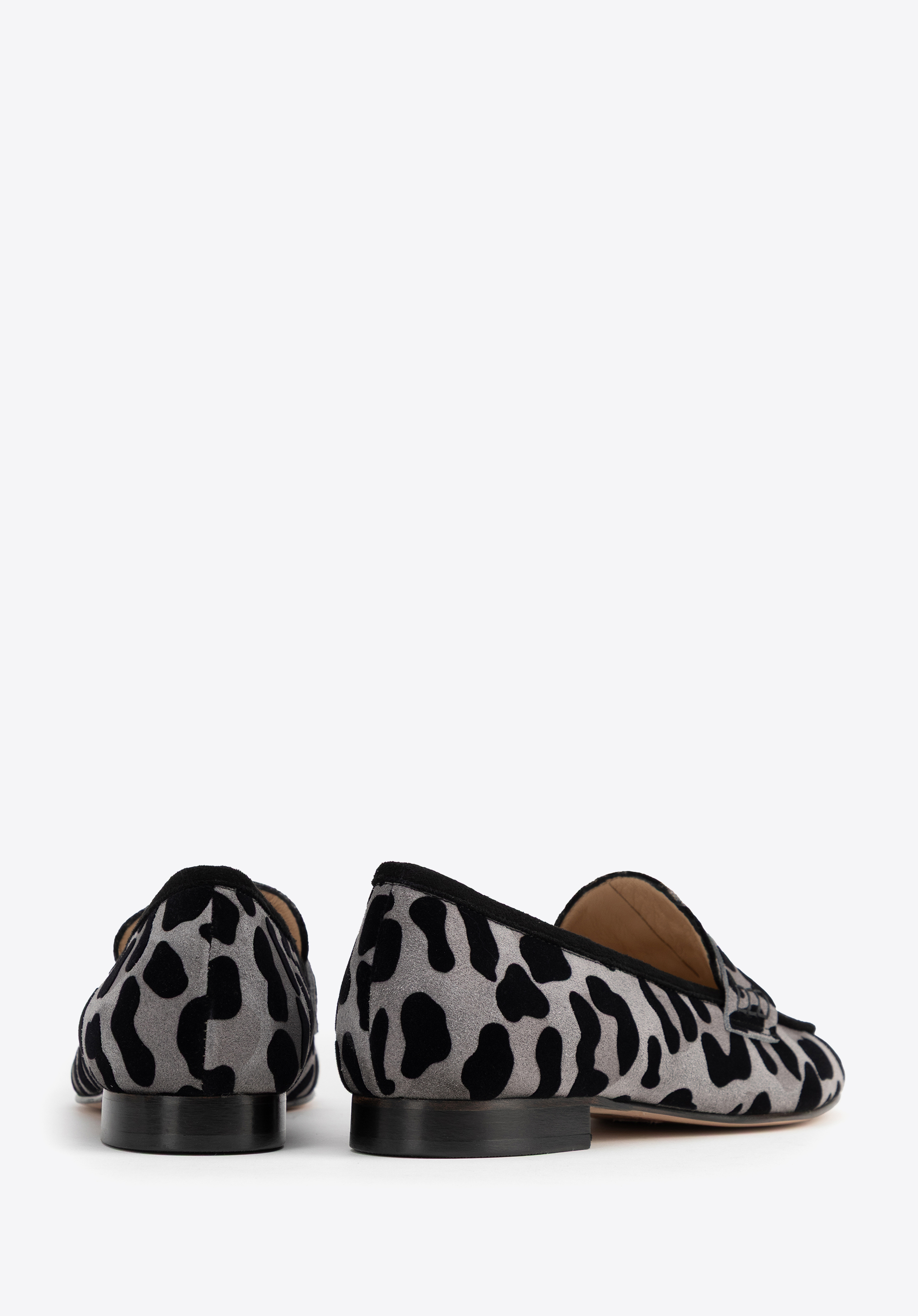 Mizează pe eleganța care nu se demodează niciodată! Acești mocasini îmbină imprimeul subtil de leopard în nuanțe de gri-negru cu un confort excepțional la purtare. Realizați din piele naturală, garantează durabilitate, iar datorită branțului și căptușelii din piele, fiecare moment petrecut în acești pantofi va fi o plăcere. Modelul lor atemporal și construcția perfect adaptată îi transformă într-un element indispensabil al multor ținute.
